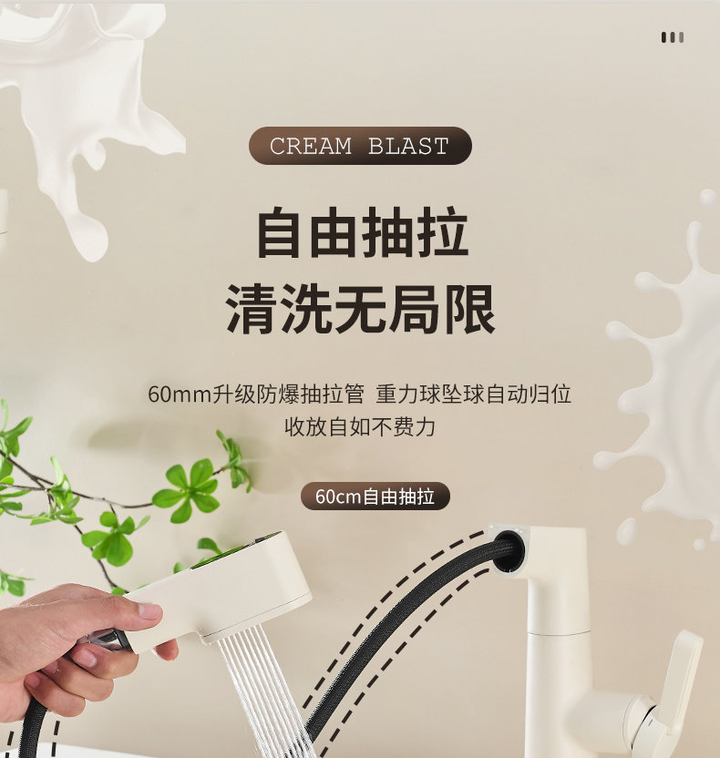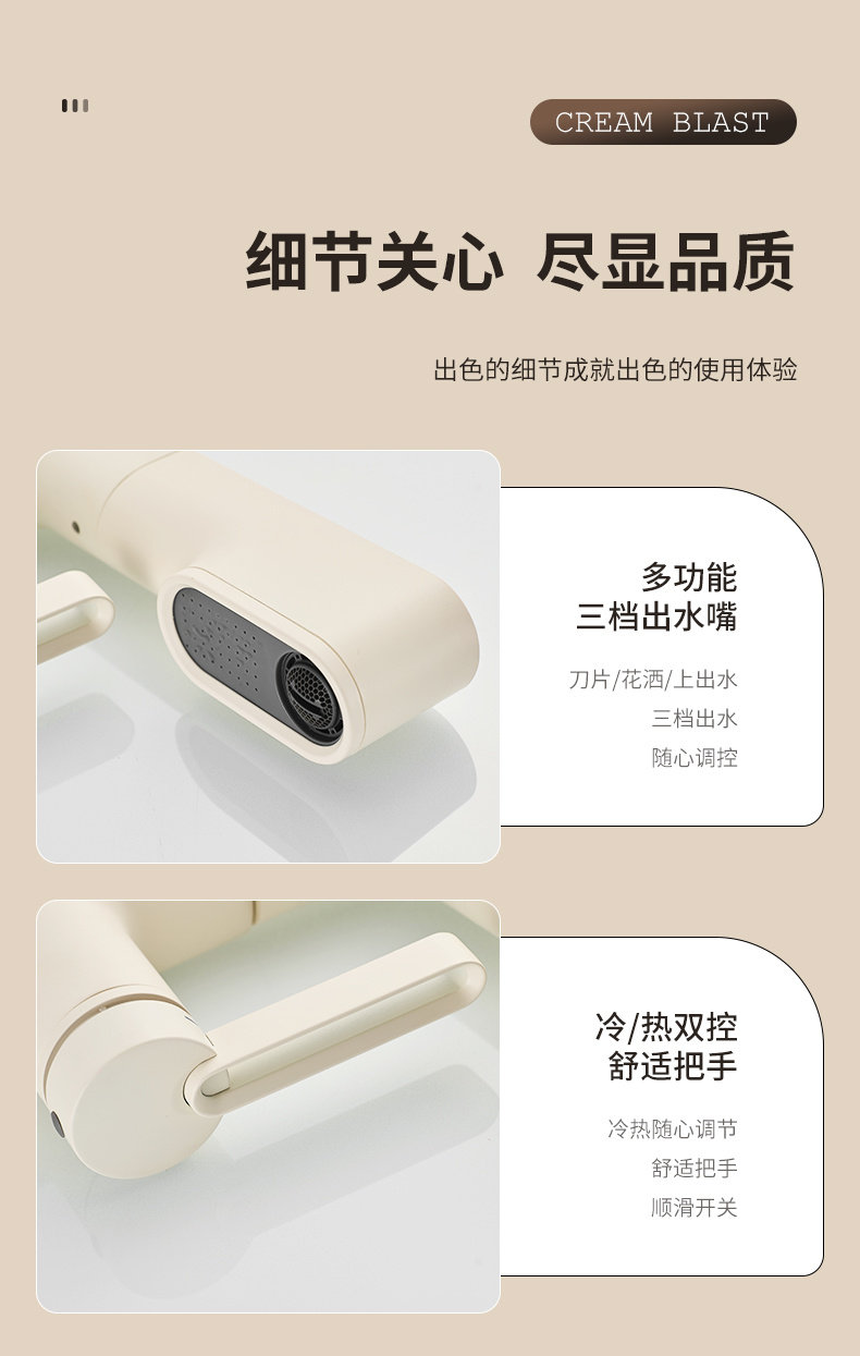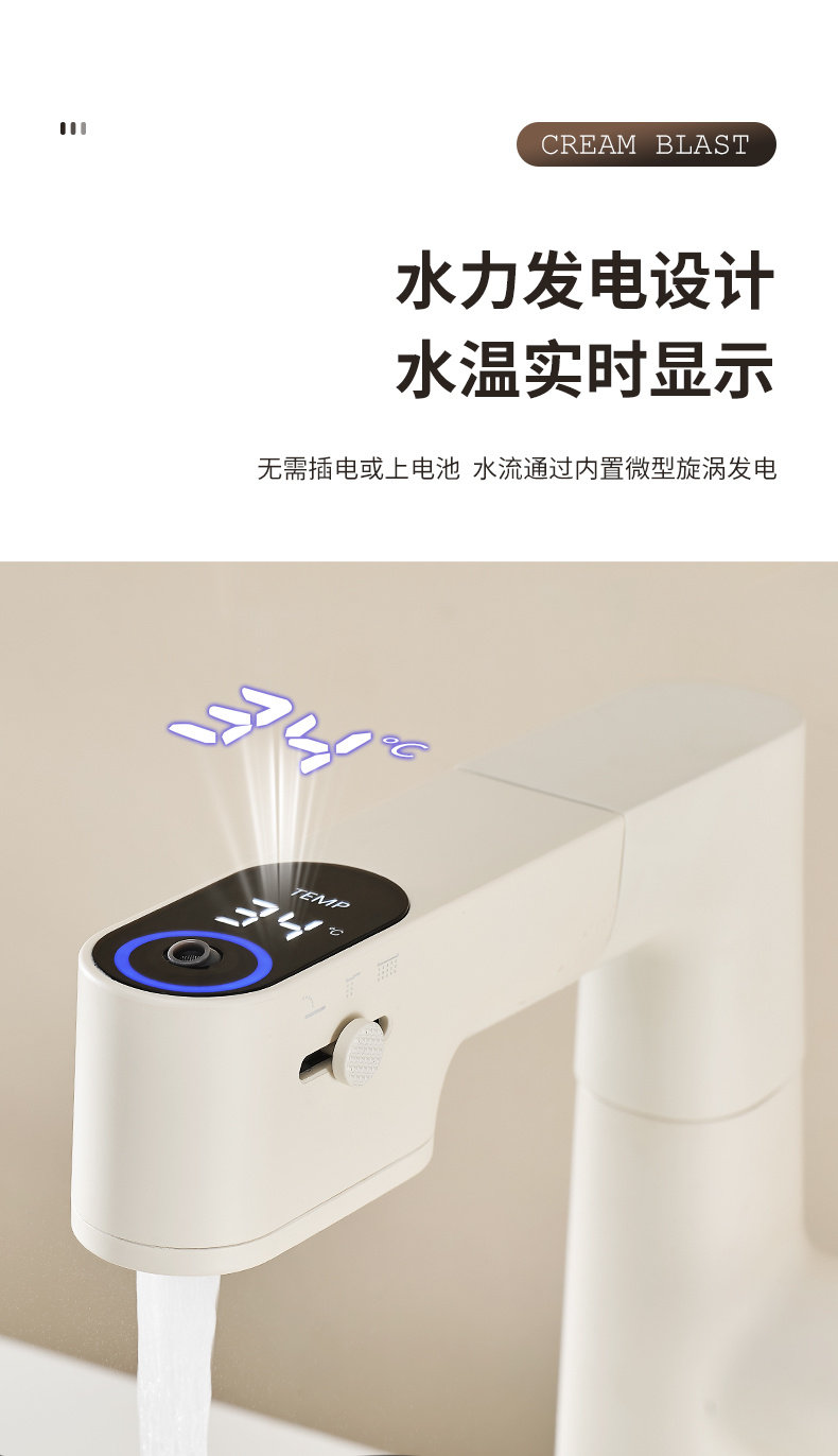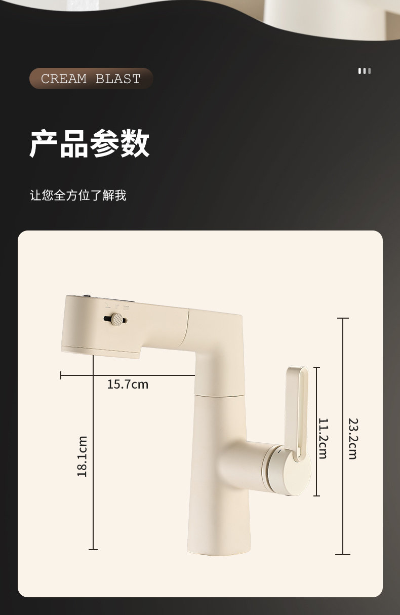 Italian Aisino All-Copper Cream-Colored Digital Display Pull-Out Faucet for Mouthwash, Hair Washing, Bathroom Sink