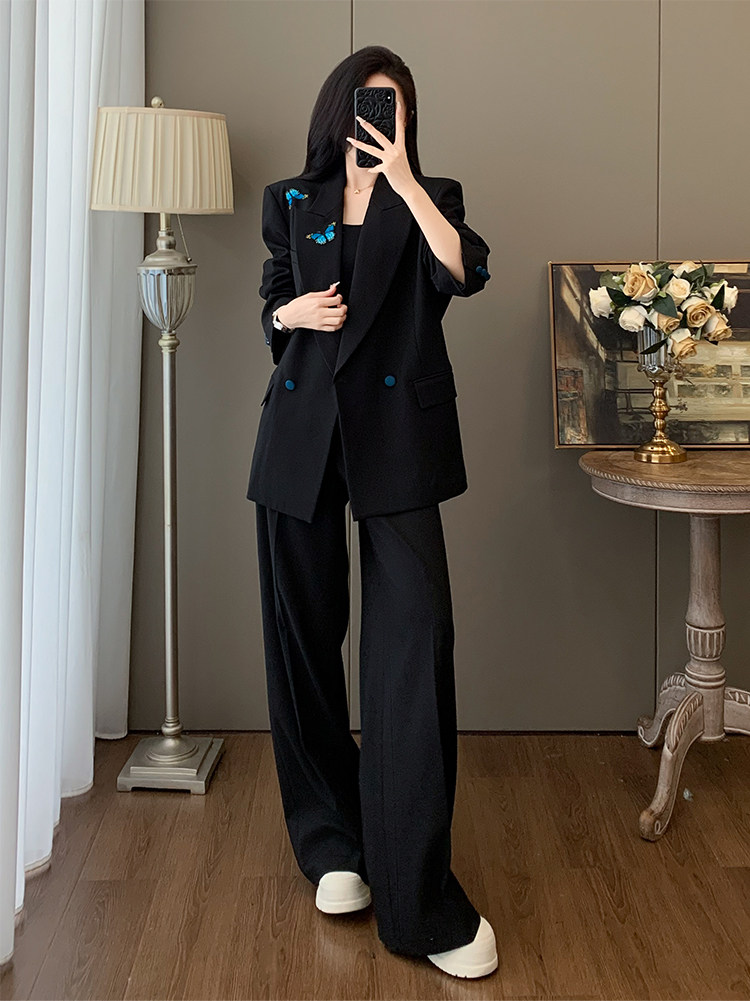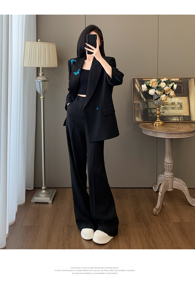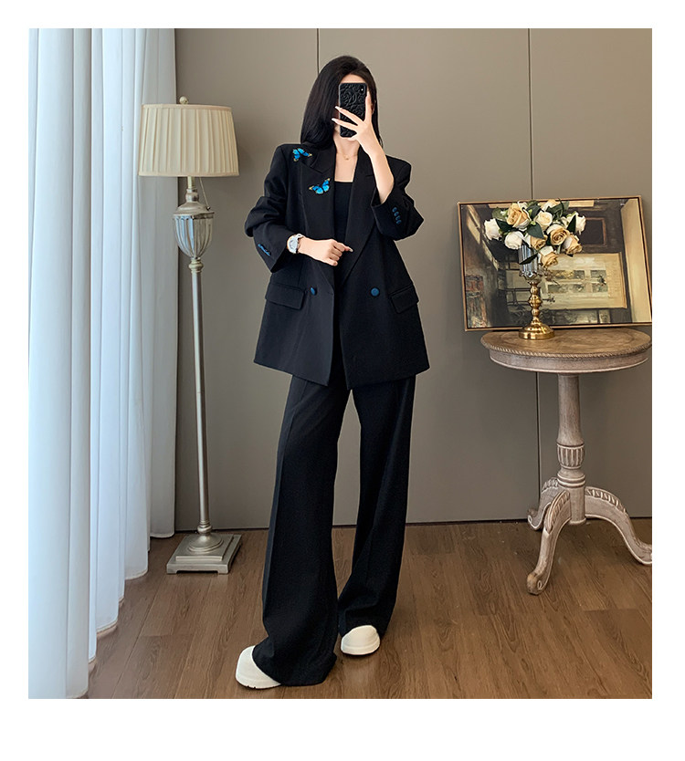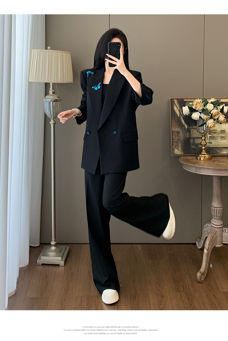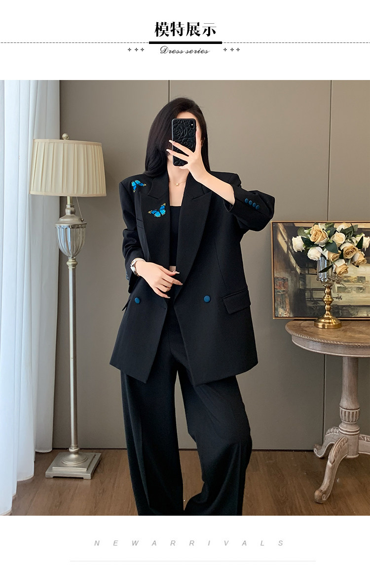 French-Style Long-Sleeved Fashionable Loose Casual Professional Blazer for Women with Butterfly Embroidery, Versatile and Stylish Small Suit