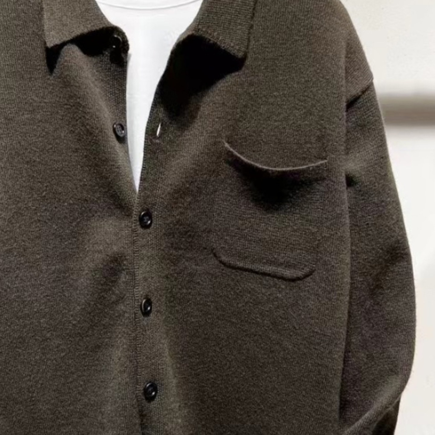 2025 Autumn Men's Long Sleeve Shirt Dark Brown Lapel Temperament Simple Versatile Casual Trendy Fashion Top