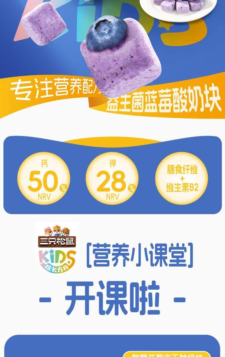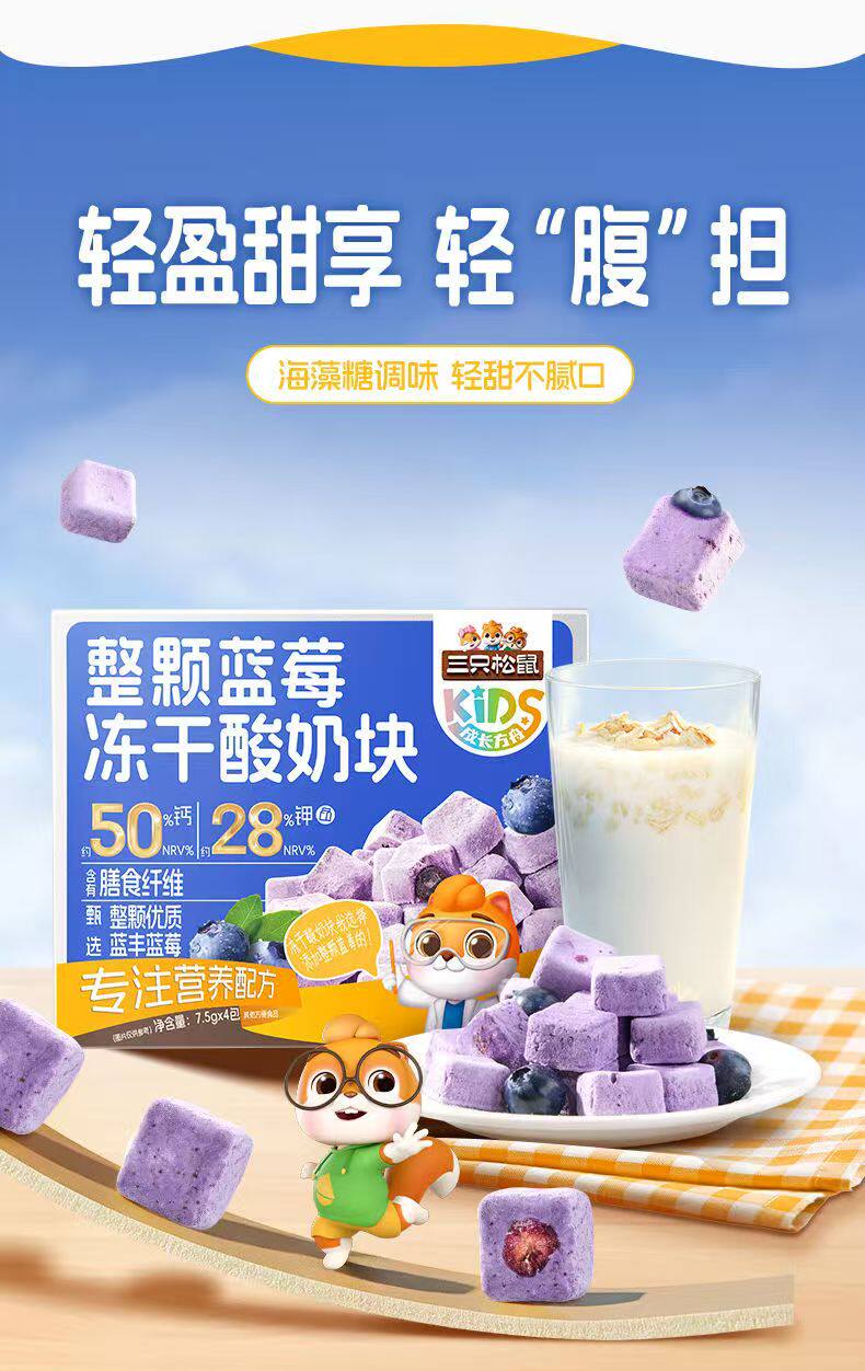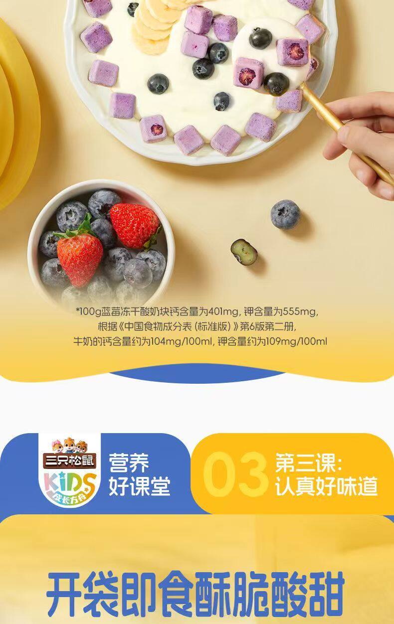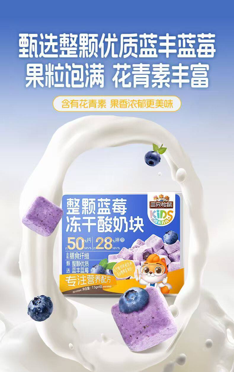 Three Squirrels Whole Blueberry Freeze-Dried Yogurt Cubes with Added Probiotics Freeze-Dried Milk Cubes Nutritious and Healthy Snacks Ready to Eat