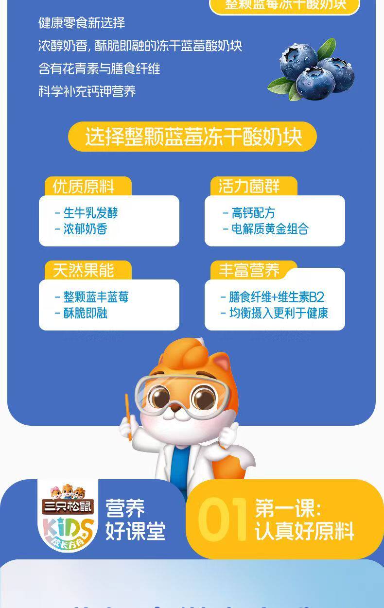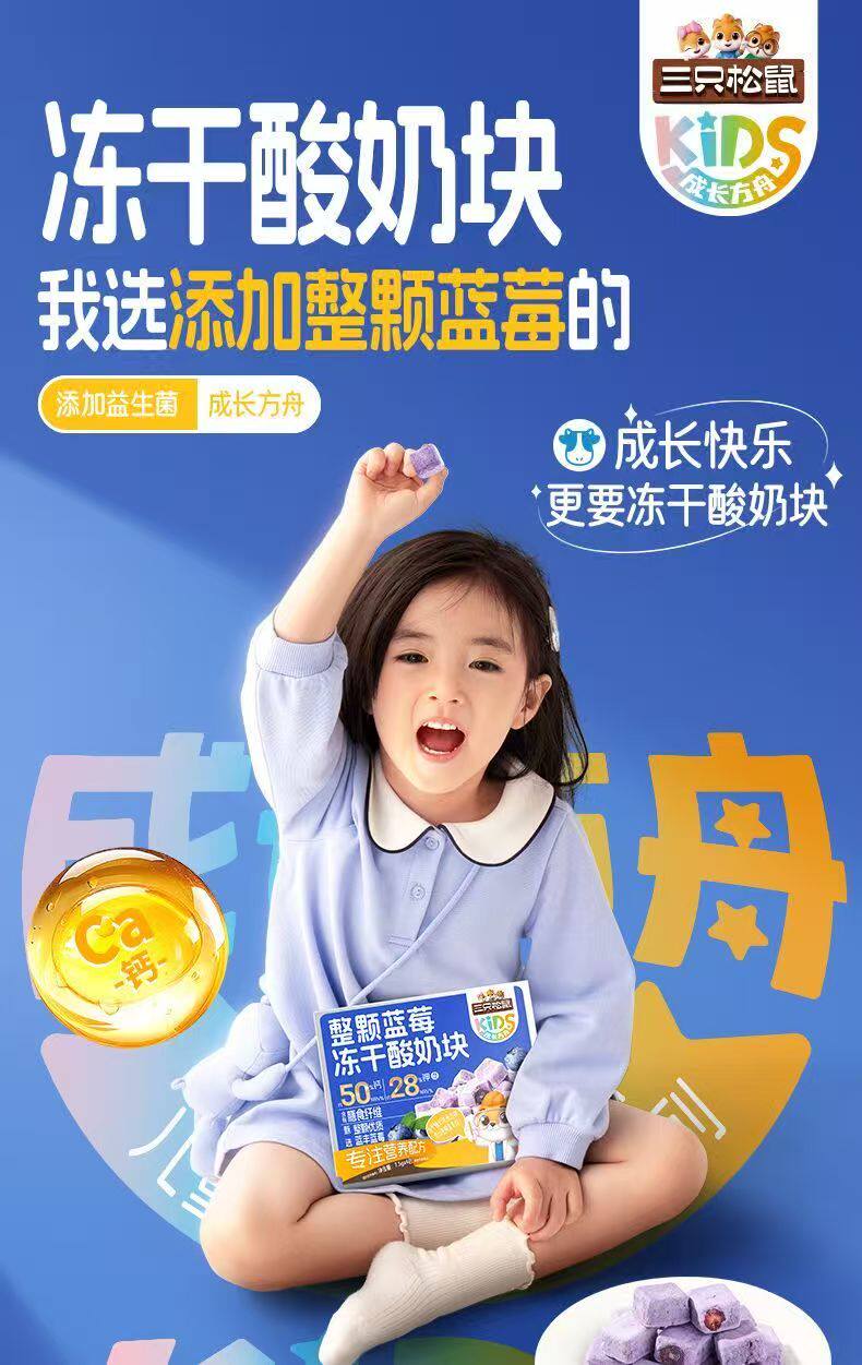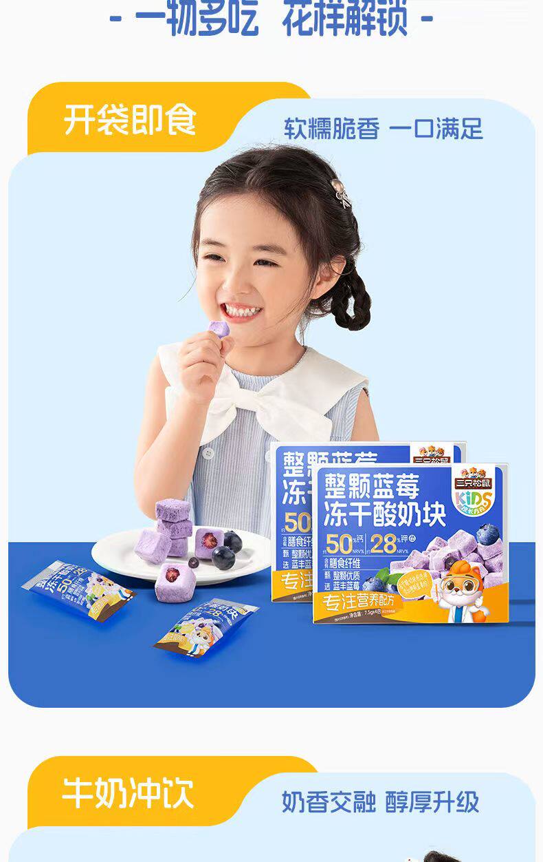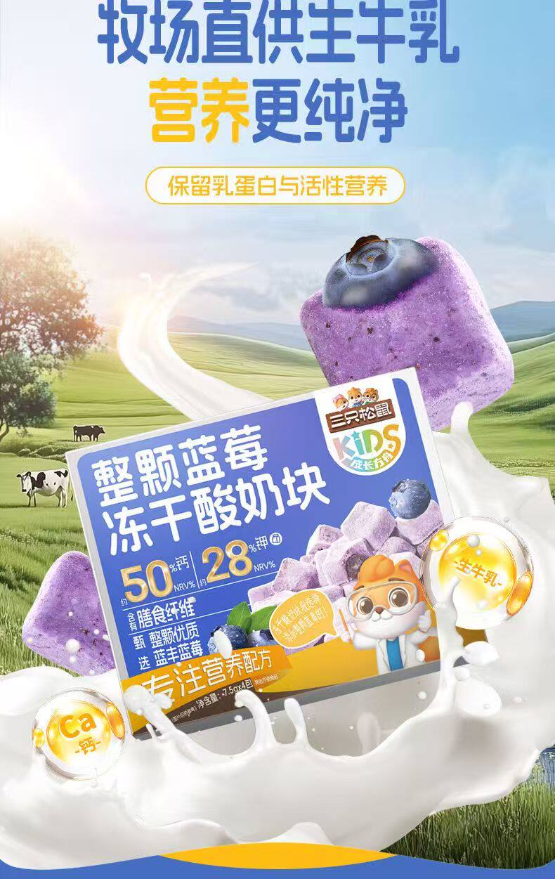 Three Squirrels Whole Blueberry Freeze-Dried Yogurt Cubes with Added Probiotics Freeze-Dried Milk Cubes Nutritious and Healthy Snacks Ready to Eat