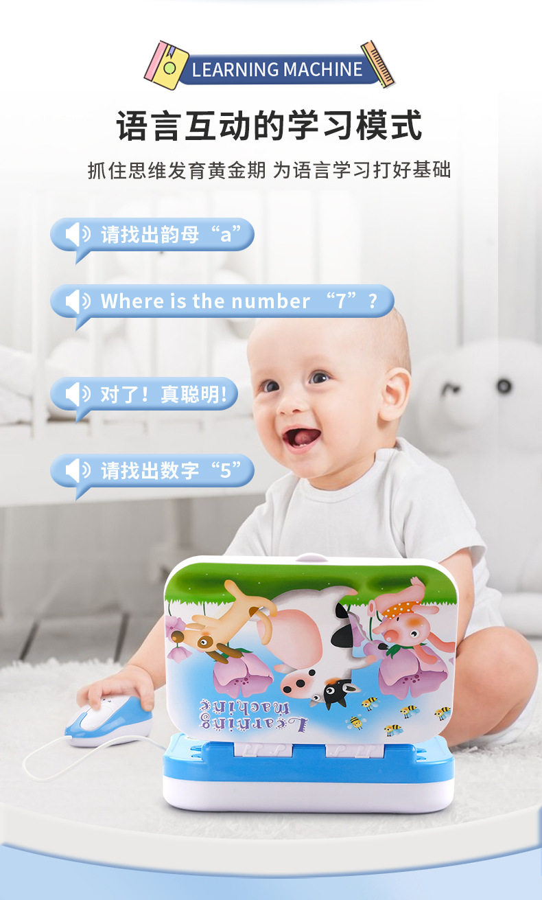 Children's Laptop Artificial Keyboard and Mouse Toy Music Cartoon Baby Enlightenment Early Education Educational Gift