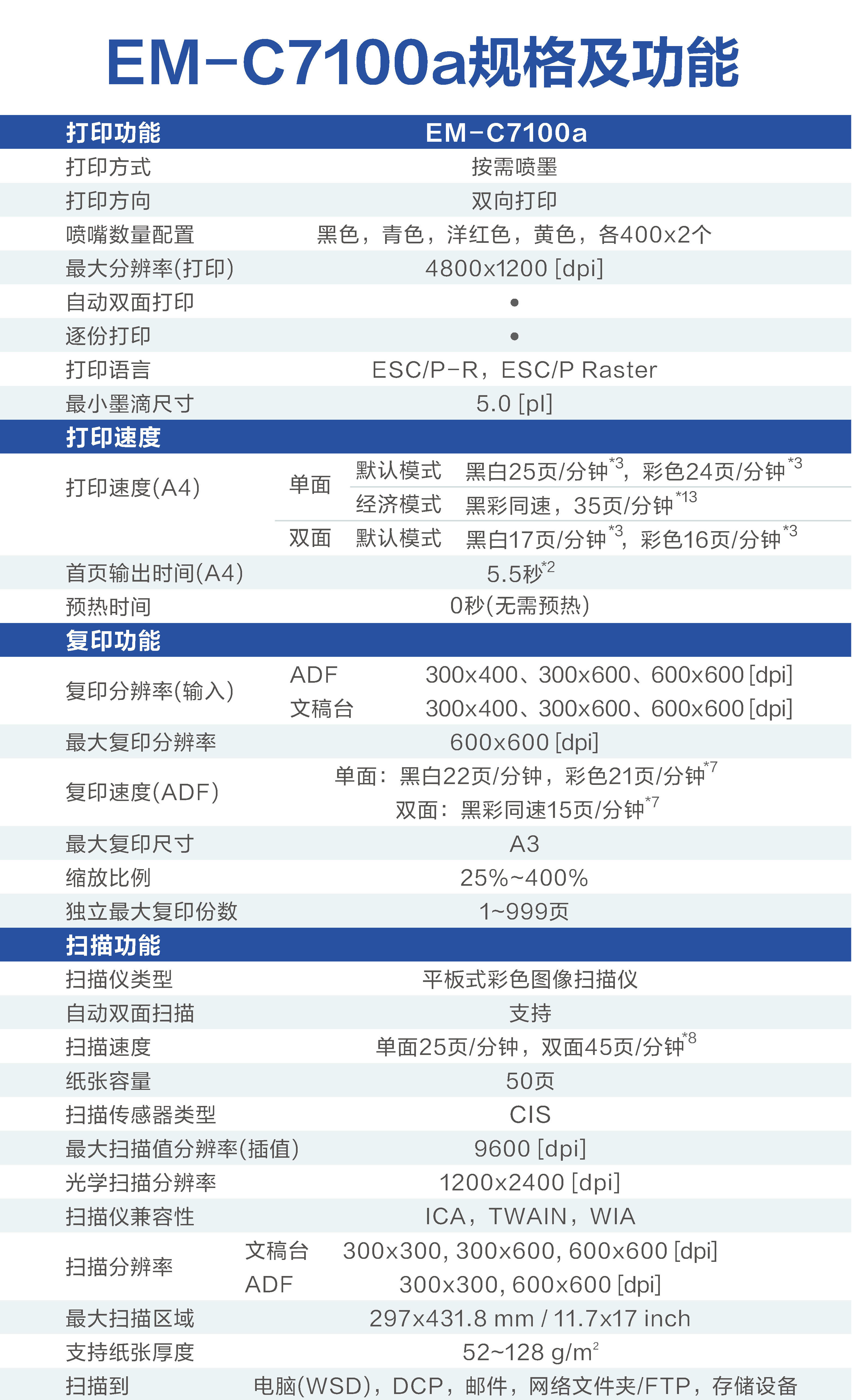 Epson Em-C7100A/C8100A High-Speed A3 Ink Tank Printing, Scanning, Copying and Faxing Commercial All-In-One Machine