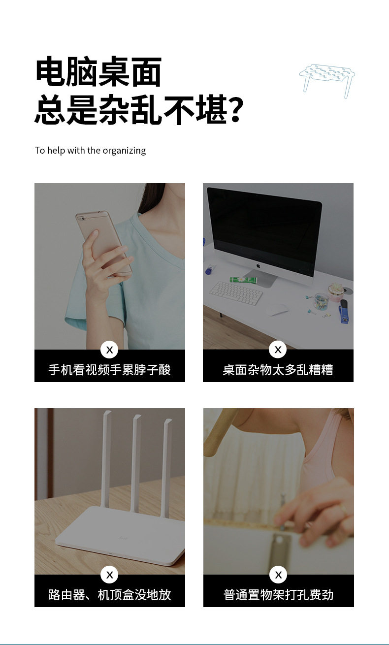 Hole-Free Tv Rack Home Monitor Storage Rack Remote Control Bracket Desktop Plastic Bracket