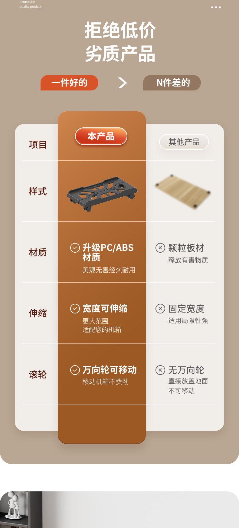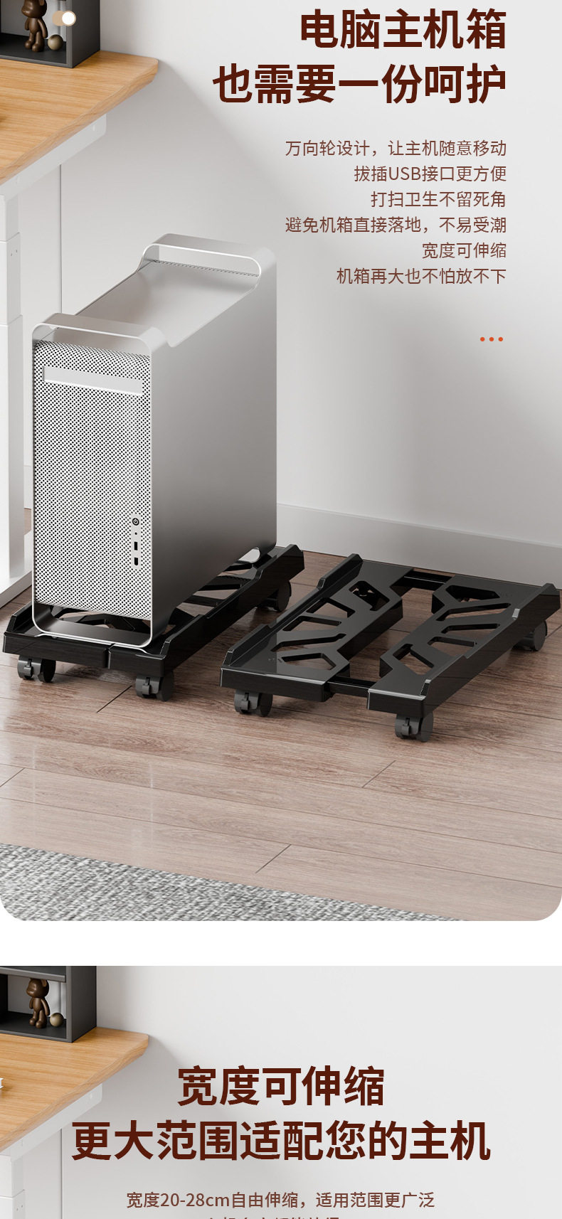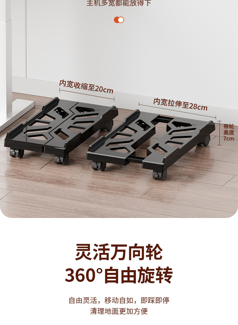 Computer Host Stand for Home Office, Movable Chassis with Wheeled Base, Telescopic Bracket, Simple Storage Rack
