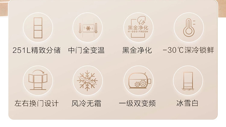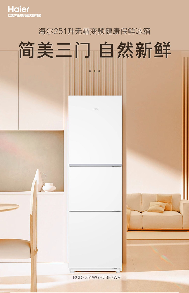 Haier Bcd-251Wghc3E7Wv Three-Door Household Refrigerator for Rental Use, Air-Cooled, First-Class Dual Inverter