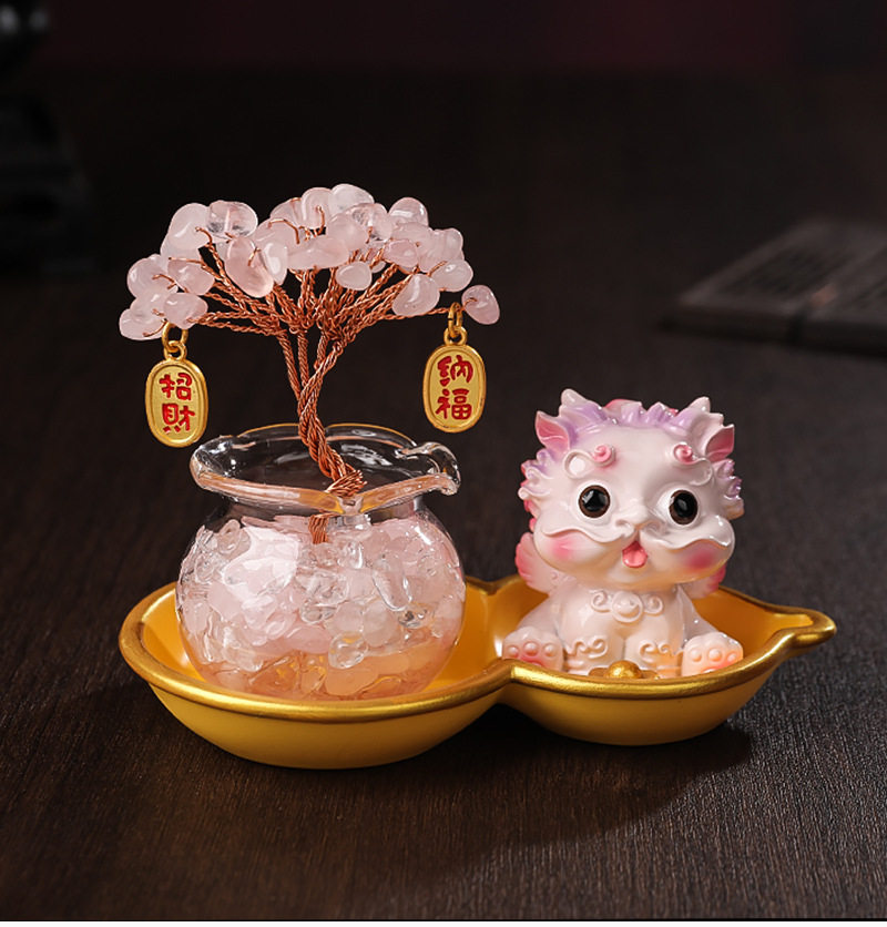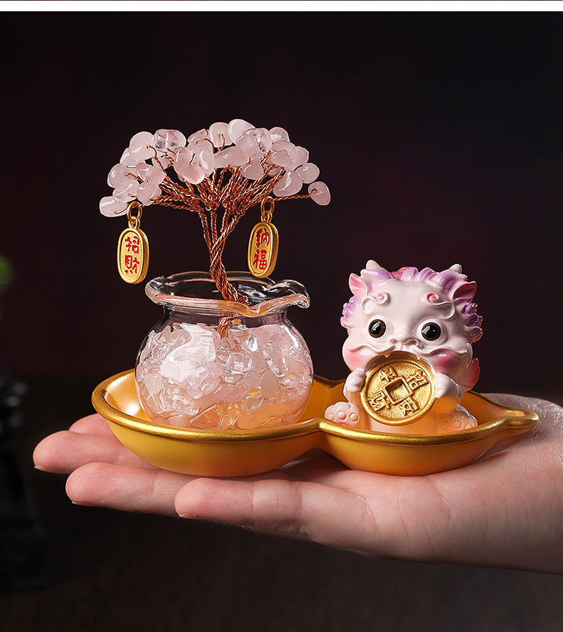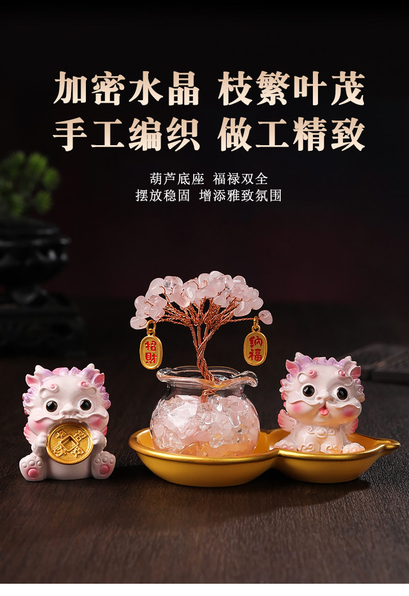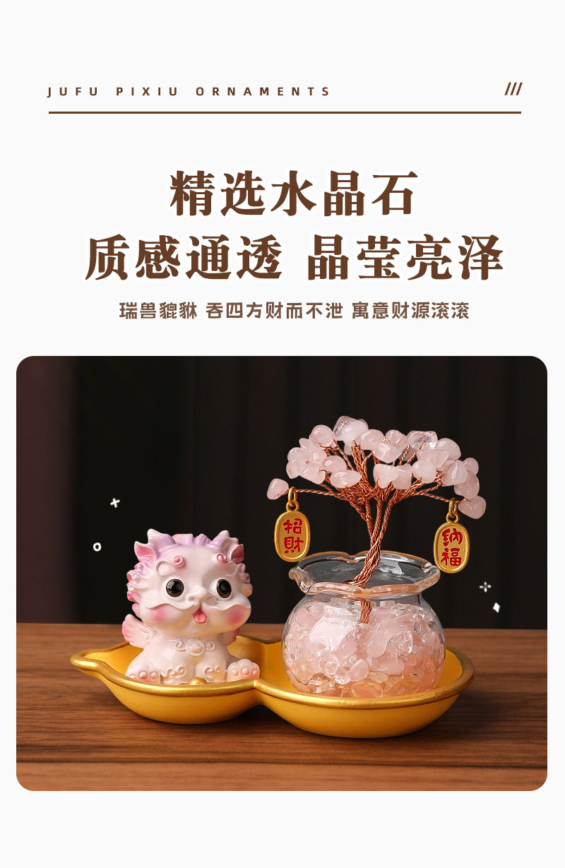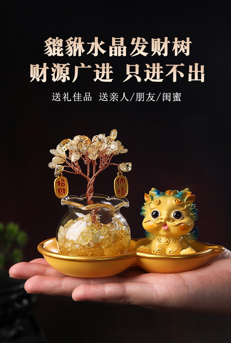 Light Luxury Ornaments: Crystal Money Tree, Wealth-Attracting Pixiu, Gourd Base Small Ornament, Exquisite and Auspicious, High-End Appearance at a Glance