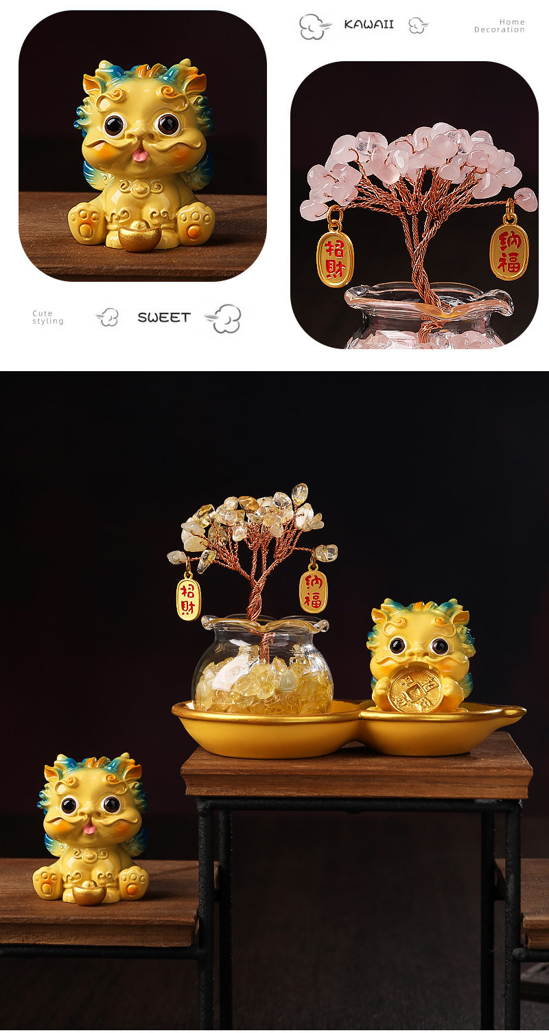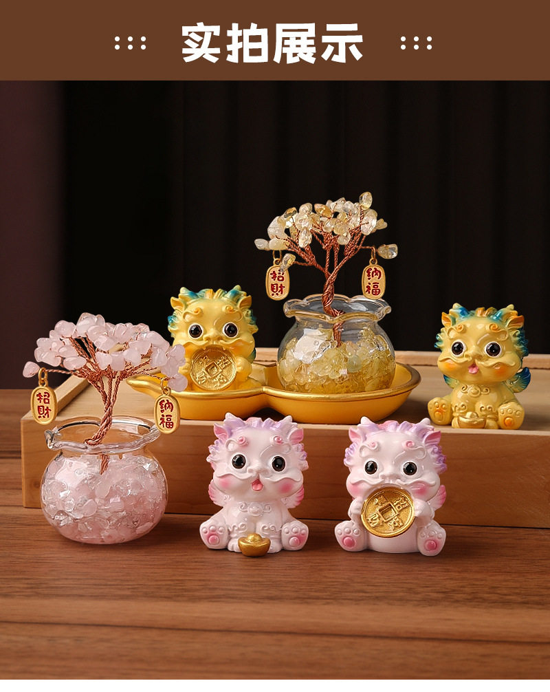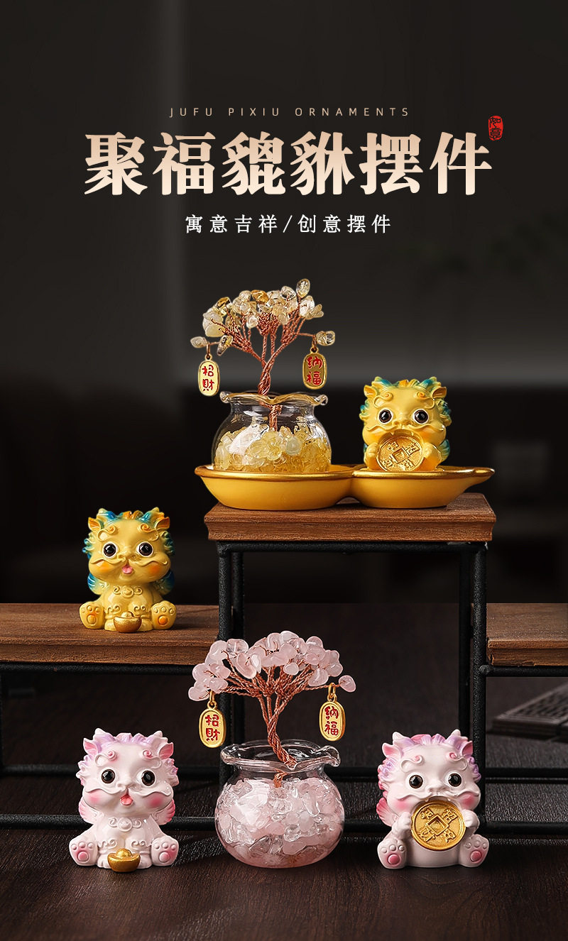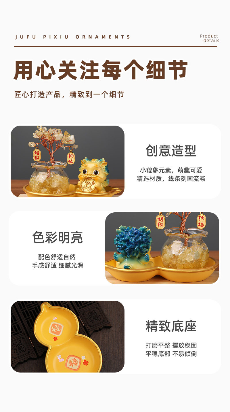Light Luxury Ornaments: Crystal Money Tree, Wealth-Attracting Pixiu, Gourd Base Small Ornament, Exquisite and Auspicious, High-End Appearance at a Glance