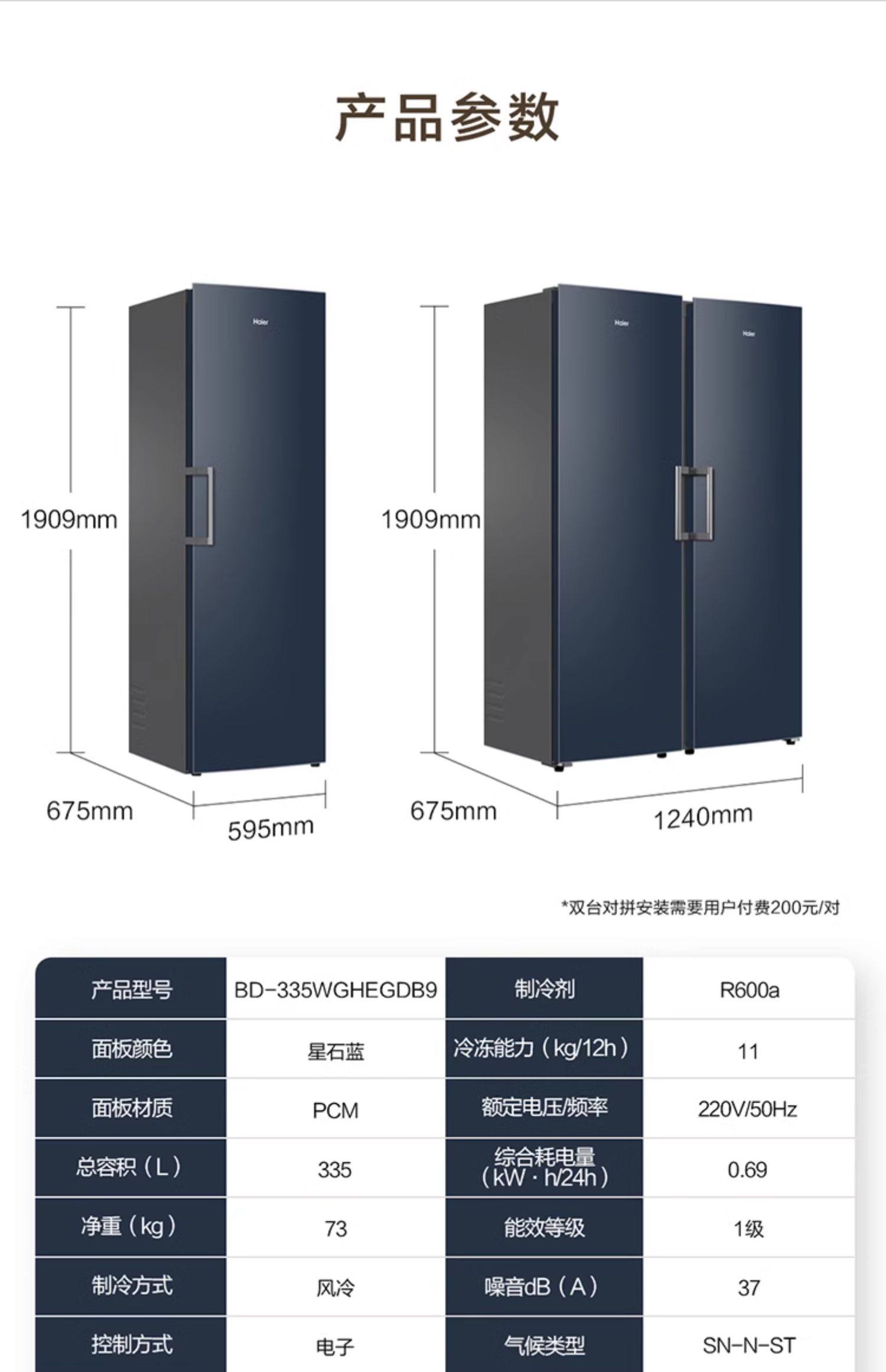Haier Bd-335Wghegdb9 Dual Frequency Conversion 335 Liters -30 ℃ Air-Cooled Frost-Free Vertical Freezer