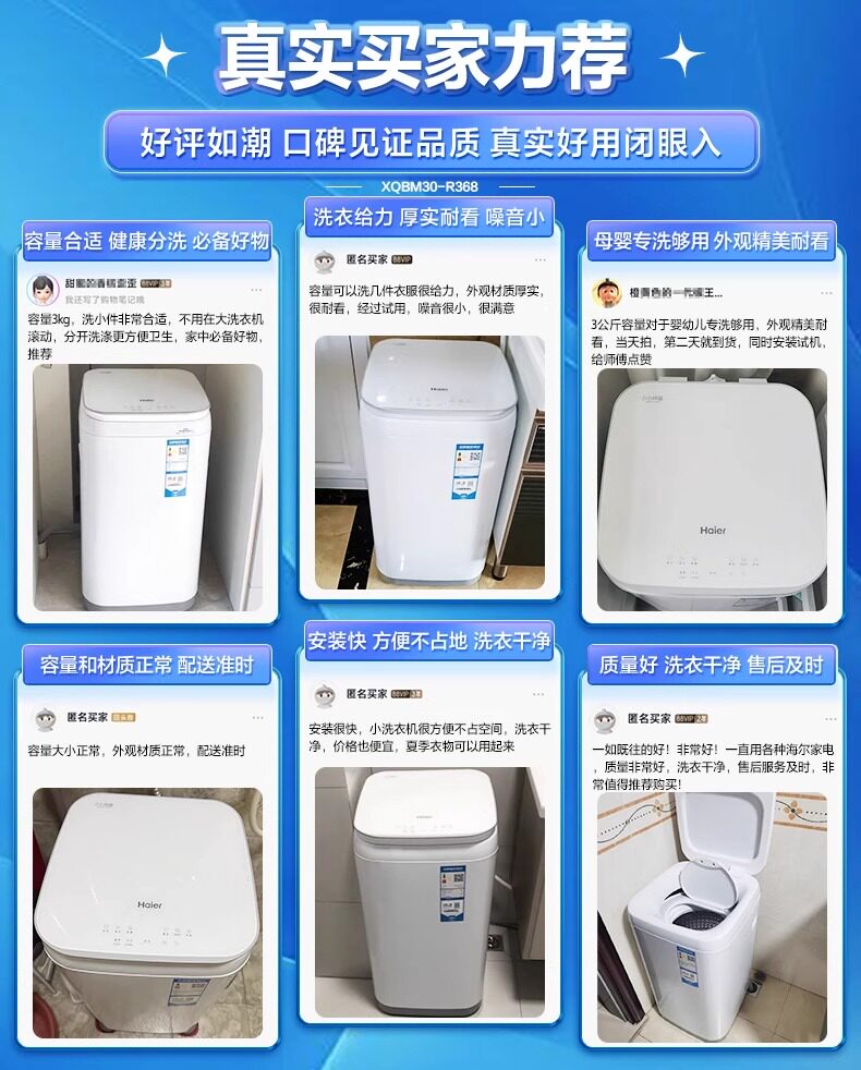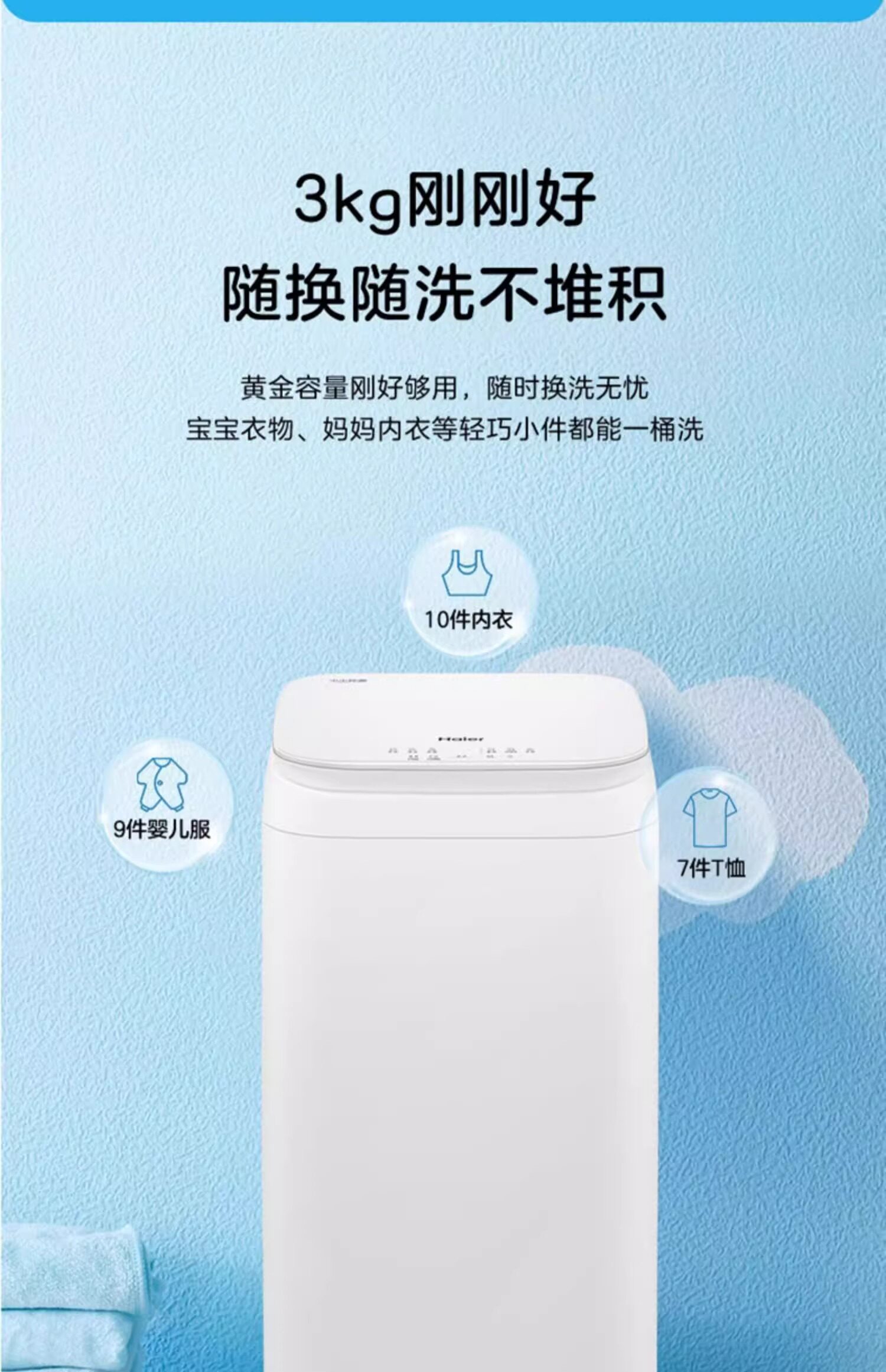 Haier/Haier Xqbm30-R368 Household 3kg Fully Automatic Mini Washing Machine for Underwear with Pulsator