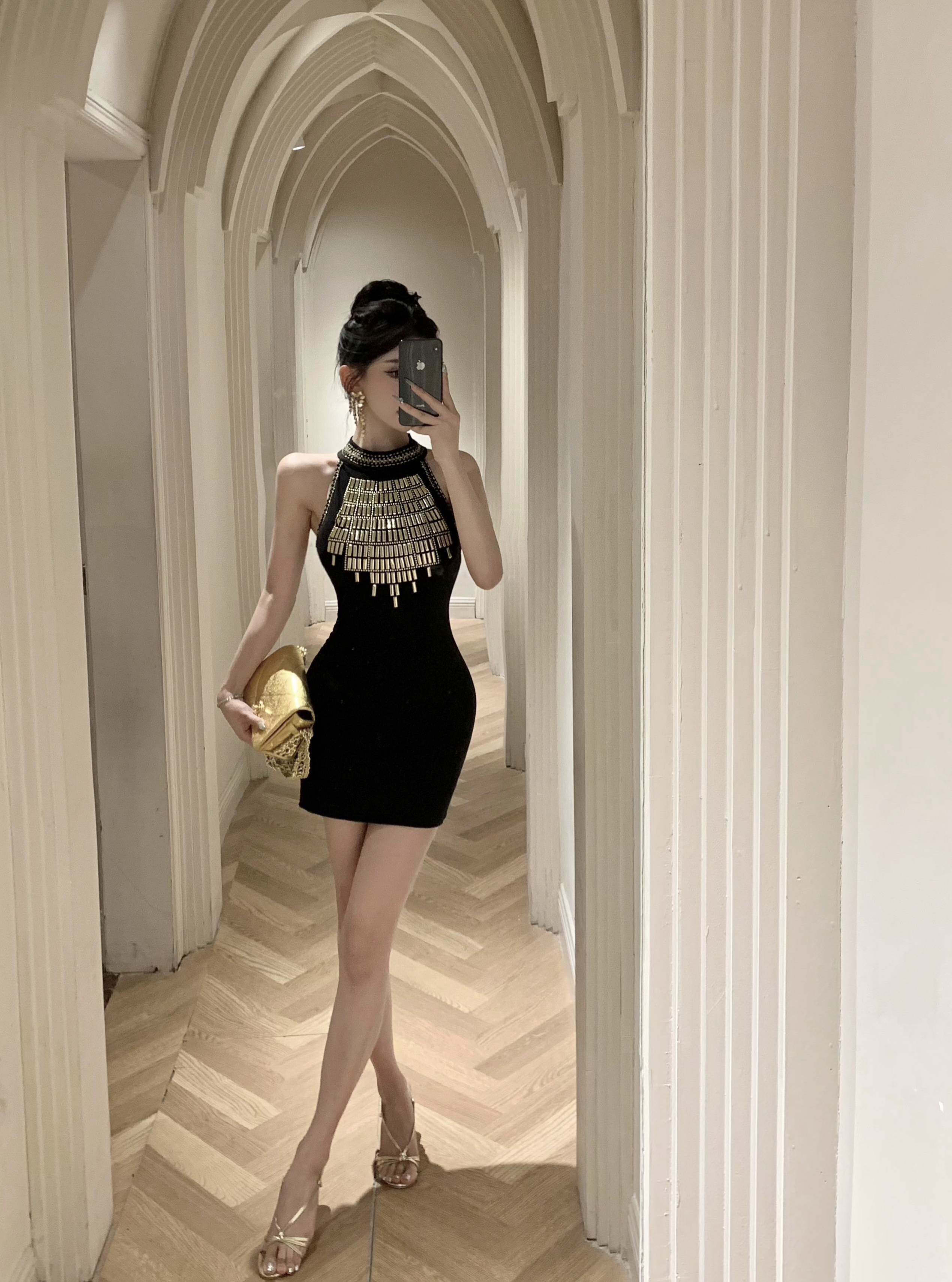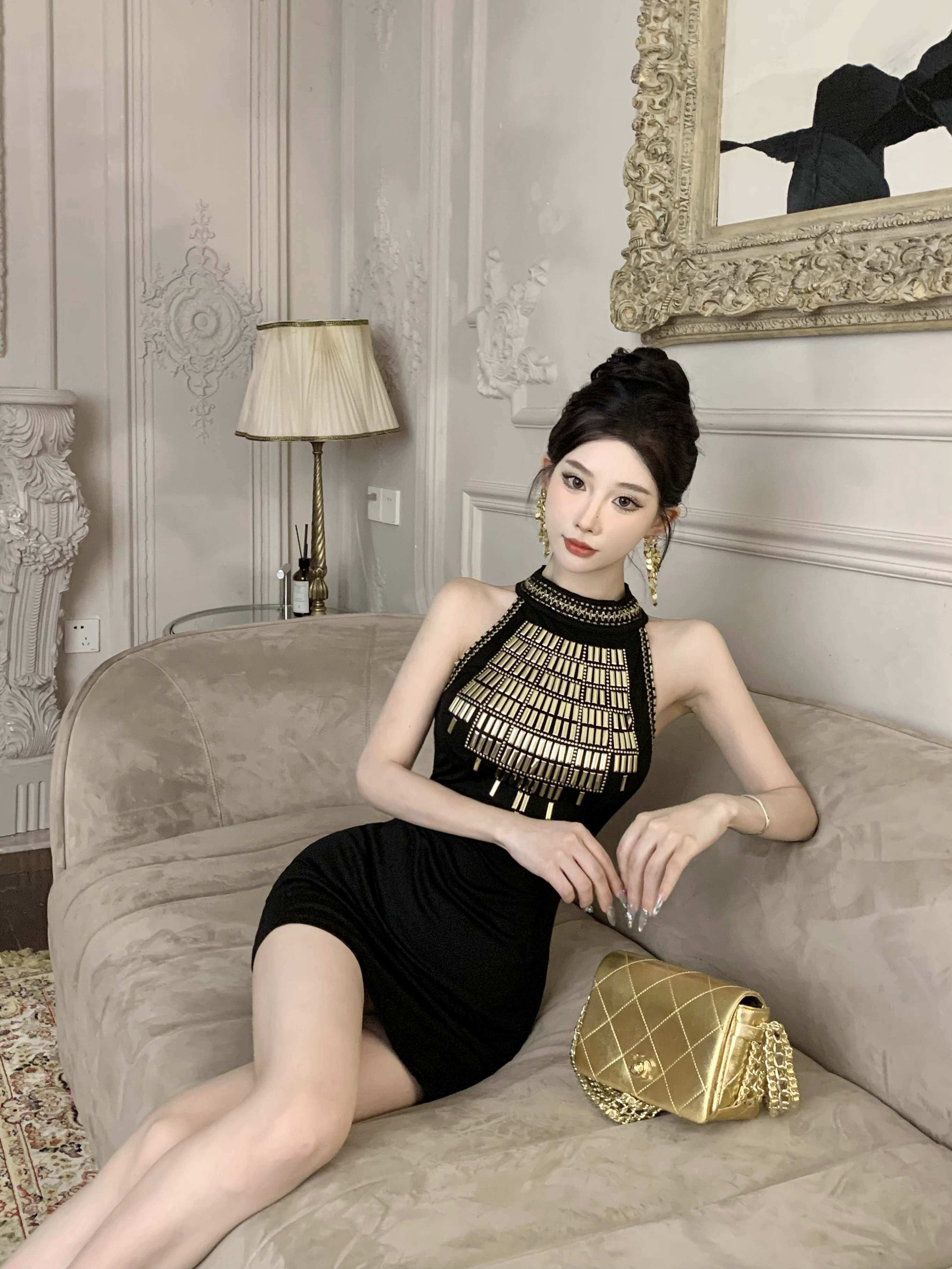 Pure Desire Hot Girl Hot Lady Design Halter Neck Hip Skirt Women's Sleeveless Waist Slim Vest Dress Autumn