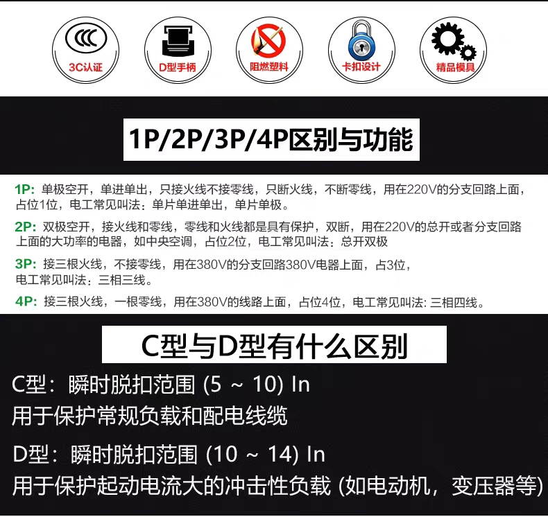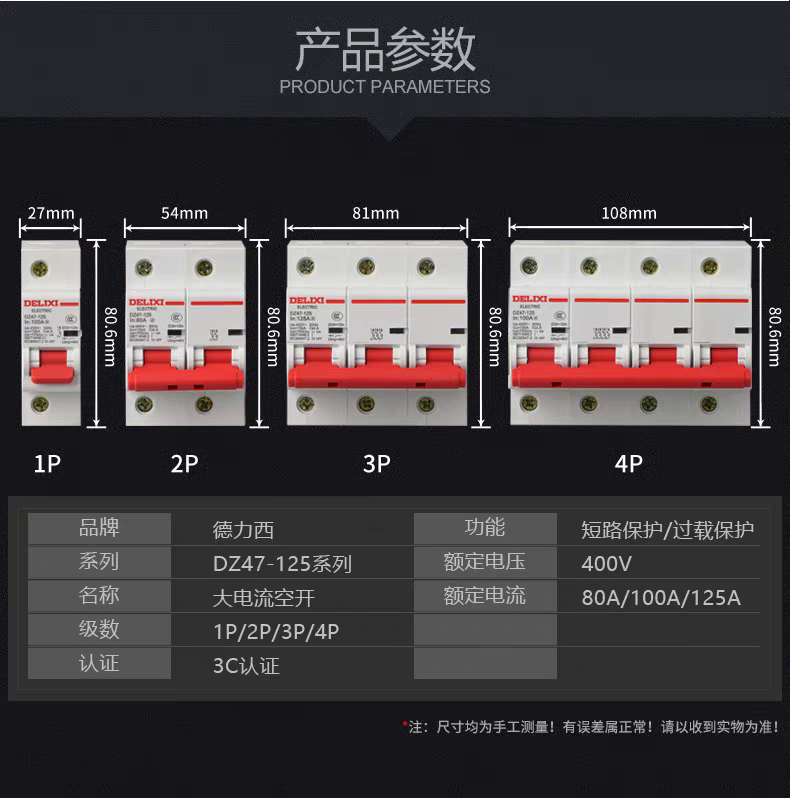 Delixi Dz47-125 High-Power Circuit Breaker Household Circuit Breaker 2P3P4P 80A100A125A Air Switch