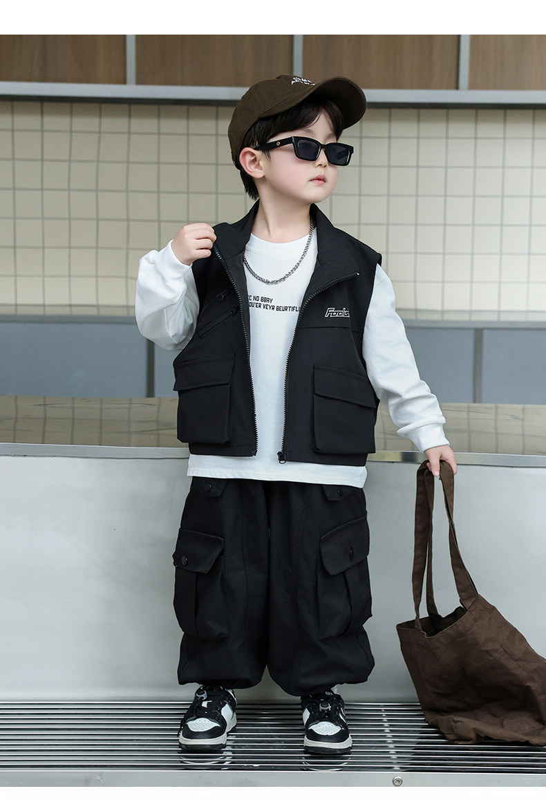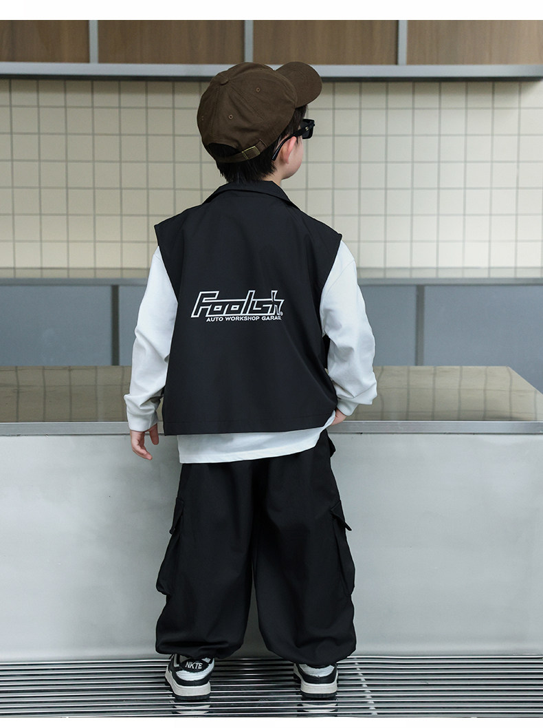 Color Classification Black,Front and Back Letters t White,Black Work Vest,Labeled m Overalls Black,Little Boy t White,Hooded Vest Green,Trendy Patchwork Pants Black,Minimalist Letter Tee - Black,Black Leather Vest