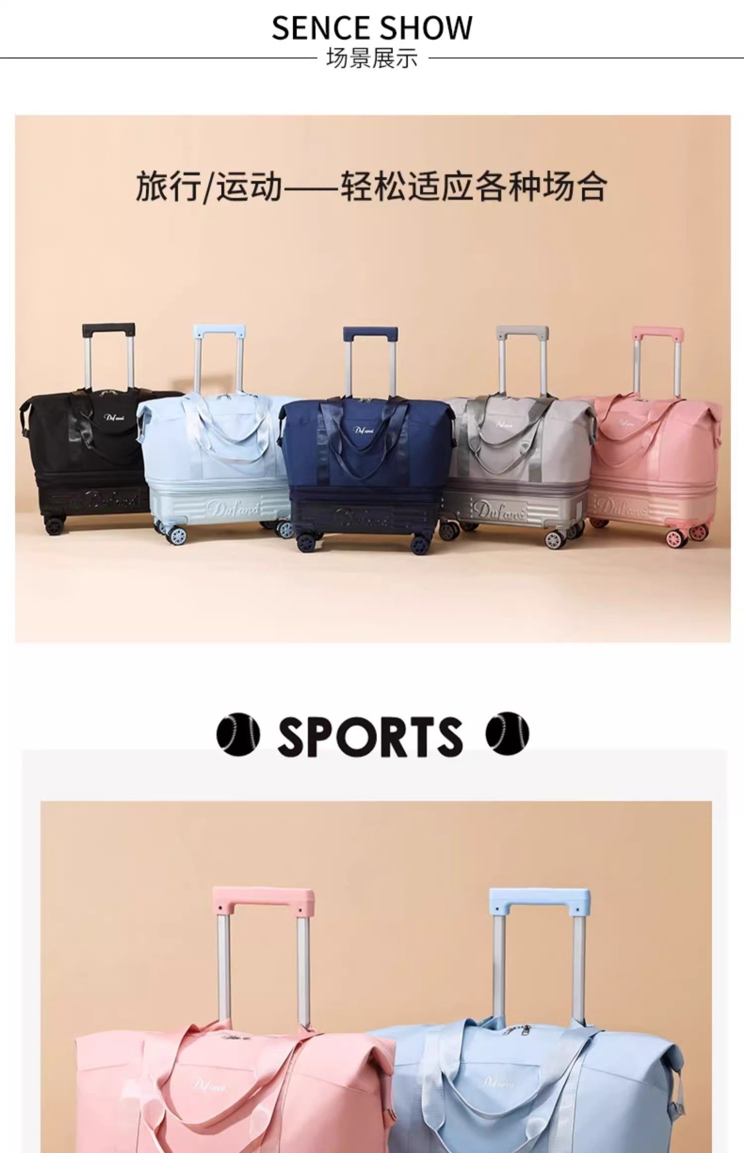 Color Classification Cherry Blossom Powder[Foldable Soft Trolley Case with Detachable Wheels and Detachable Pull Rod ],Sky Blue[Foldable Soft Trolley Case with Detachable Wheels and Detachable Pull Rod ],Neutral Gray[Foldable Soft Trolley Case with Detachable Wheels and Detachable Pull Rod ],Sapphire Blue[Foldable Soft Trolley Case with Detachable Wheels and Detachable Pull Rod ],Classic Black[Foldable Soft Trolley Case with Detachable Wheels and Detachable Pull Rod ],Black Square Mouth Style[Foldable Soft Trolley Case with Detachable Wheels and Detachable Pull Rod ],Deep Blue Square Mouth Style[Foldable Soft Trolley Case with Detachable Wheels and Detachable Pull Rod ],Green Square Mouth Style[Foldable Soft Trolley Case with Detachable Wheels and Detachable Pull Rod ],Pink Square Mouth Style[Foldable Soft Trolley Case with Detachable Wheels and Detachable Pull Rod ],Black Square-Neck Color Block Upgrade[Foldable Soft Trolley Case with Detachable Wheels and Detachable Pull Rod ],Deep Blue Square-Neck Color Block Upgrade[Foldable Soft Trolley Case with Detachable Wheels and Detachable Pull Rod ]