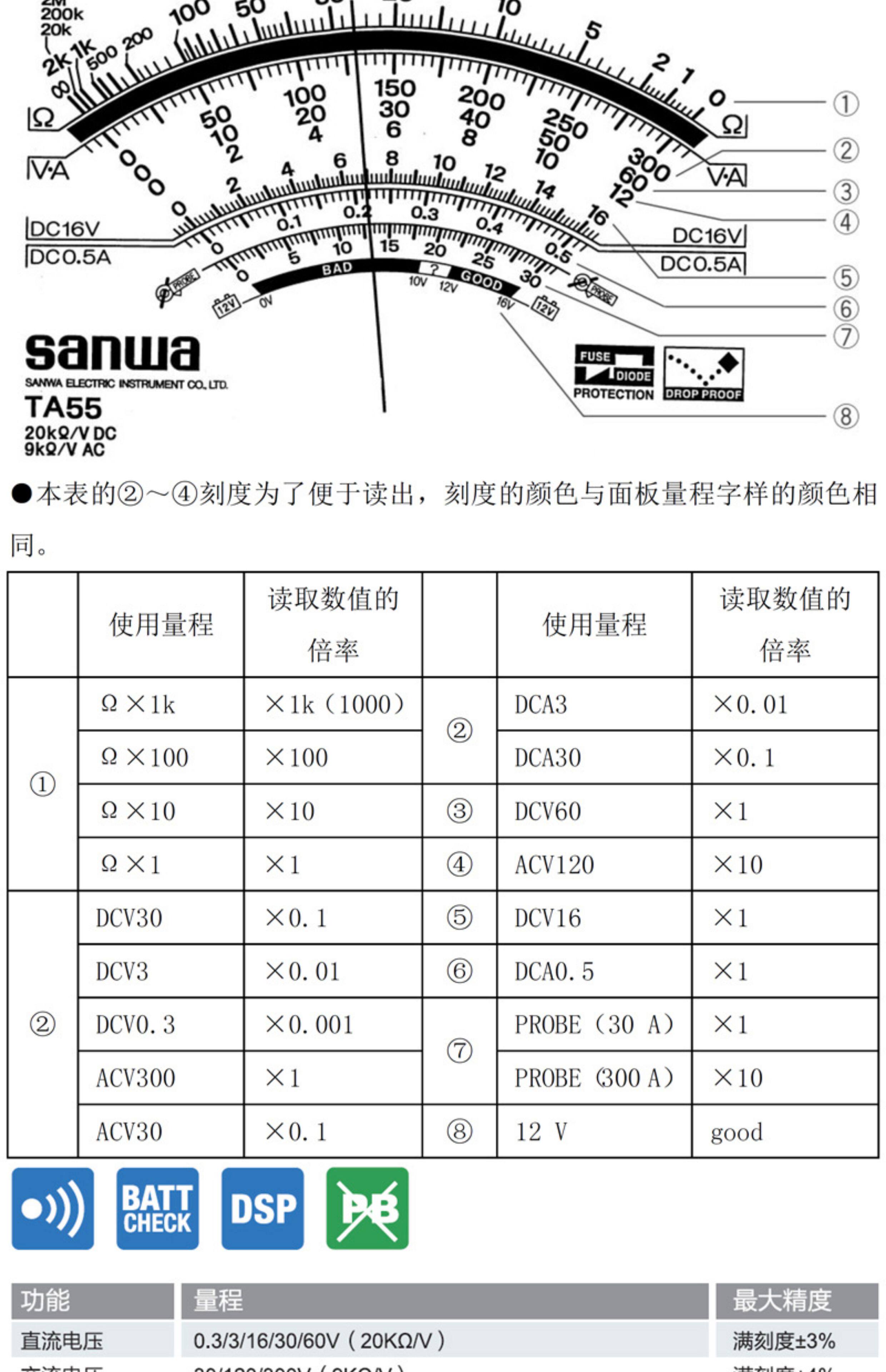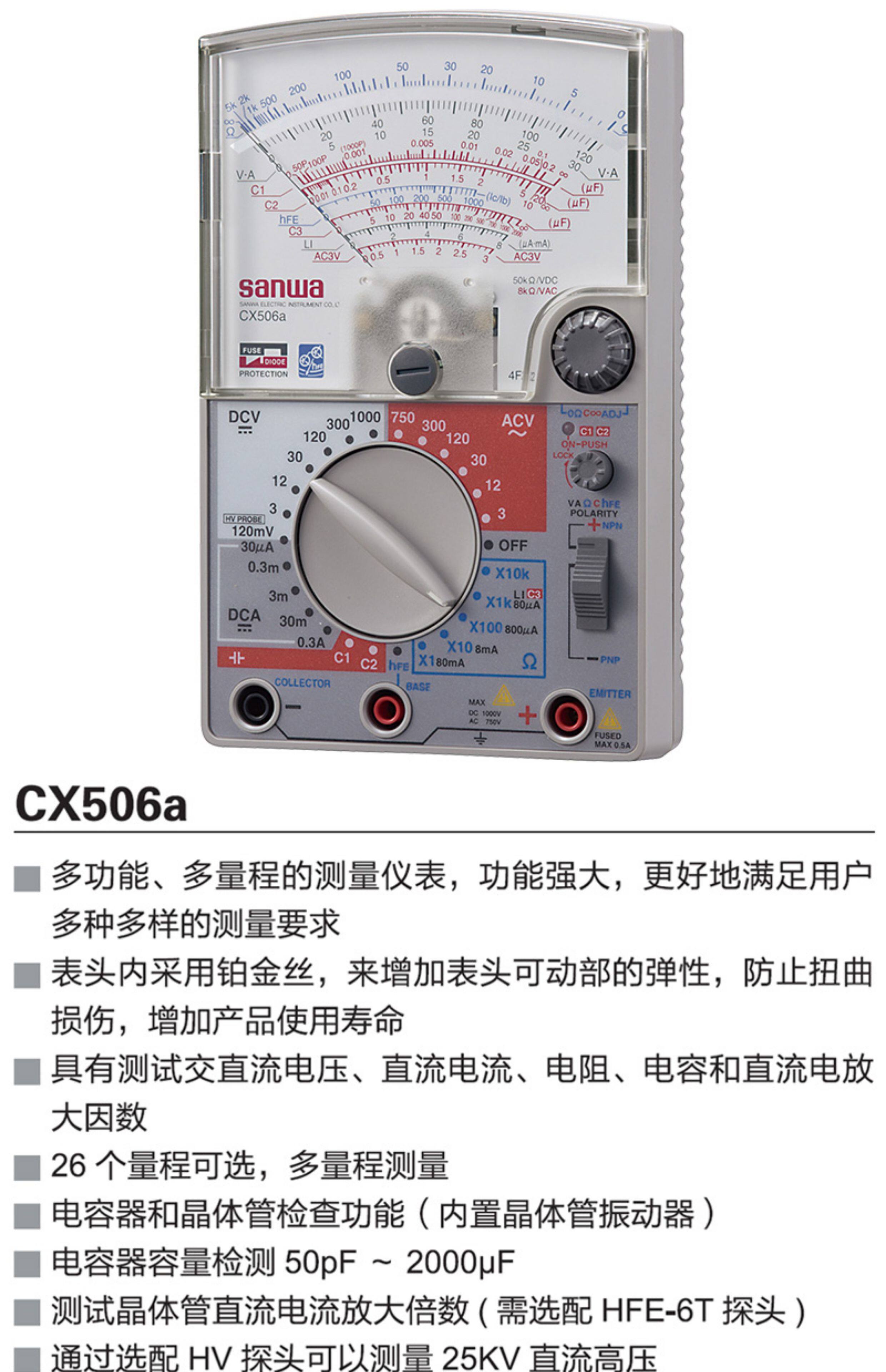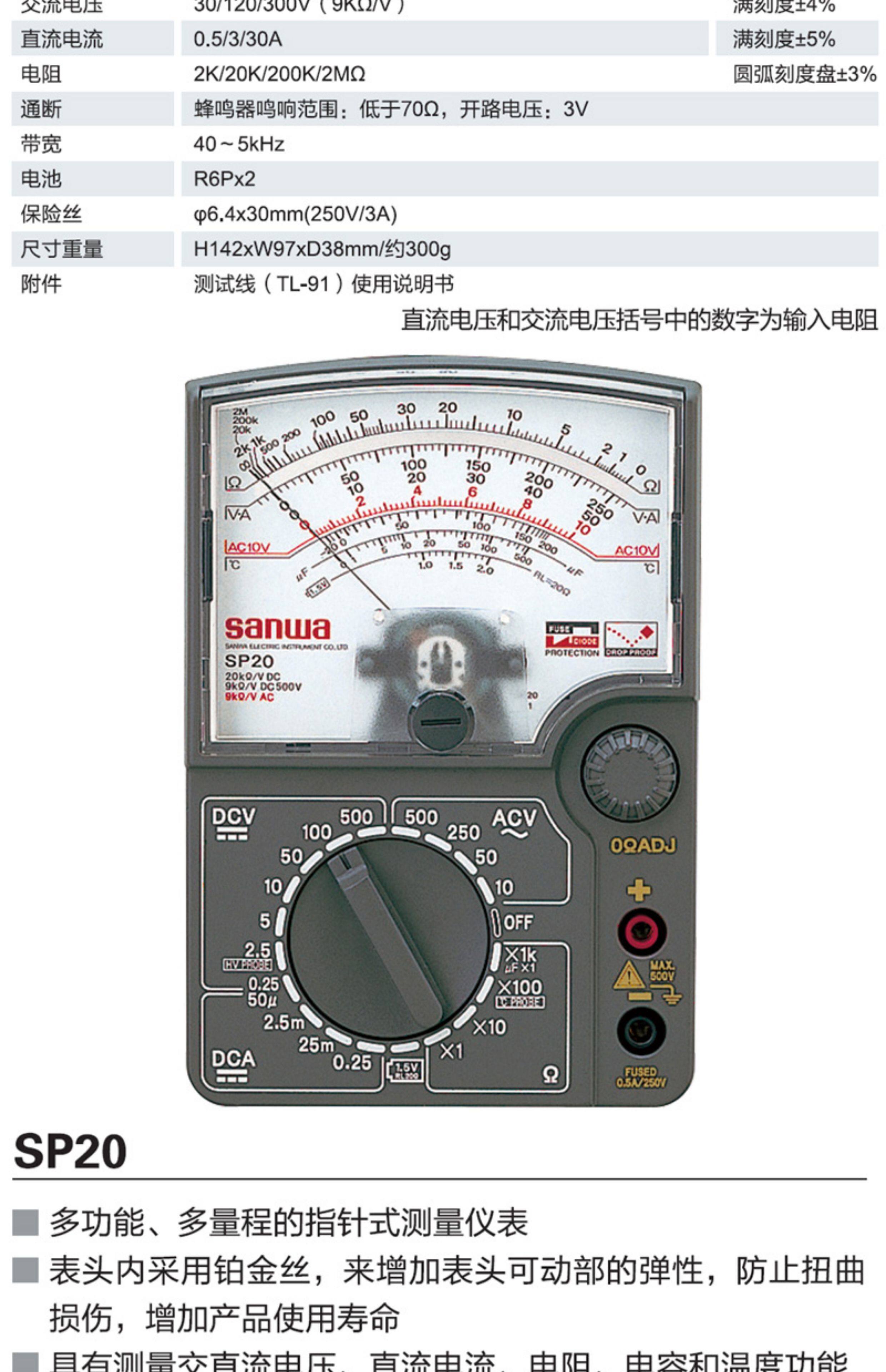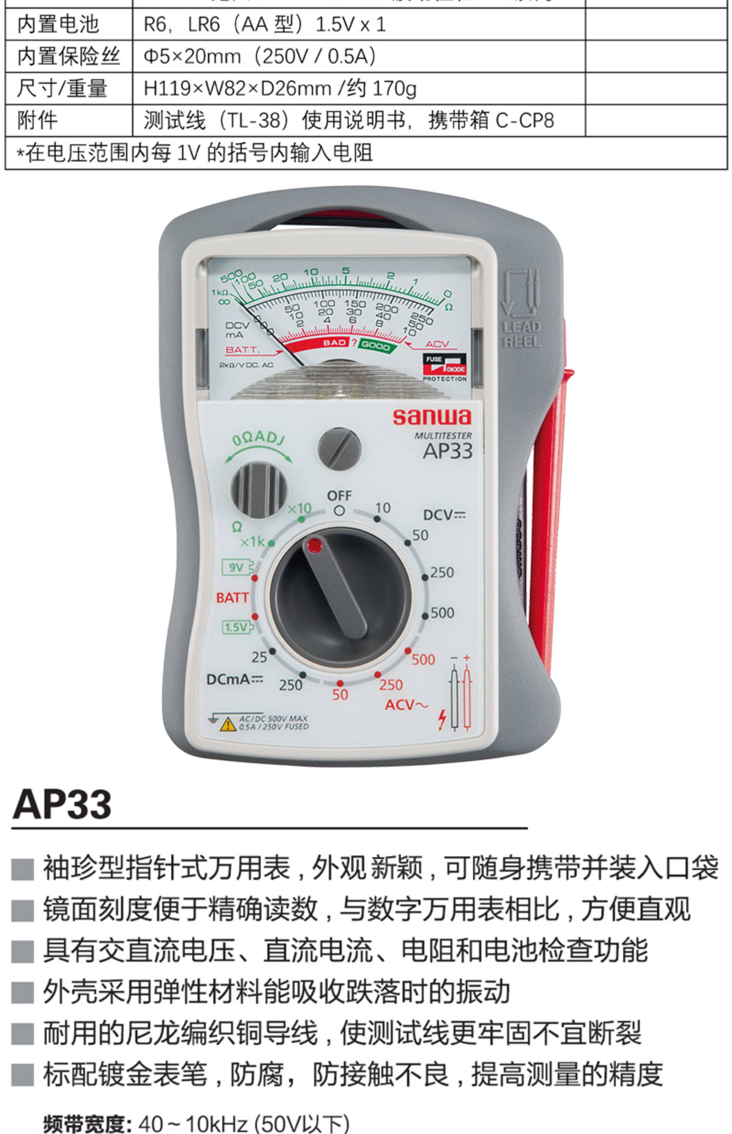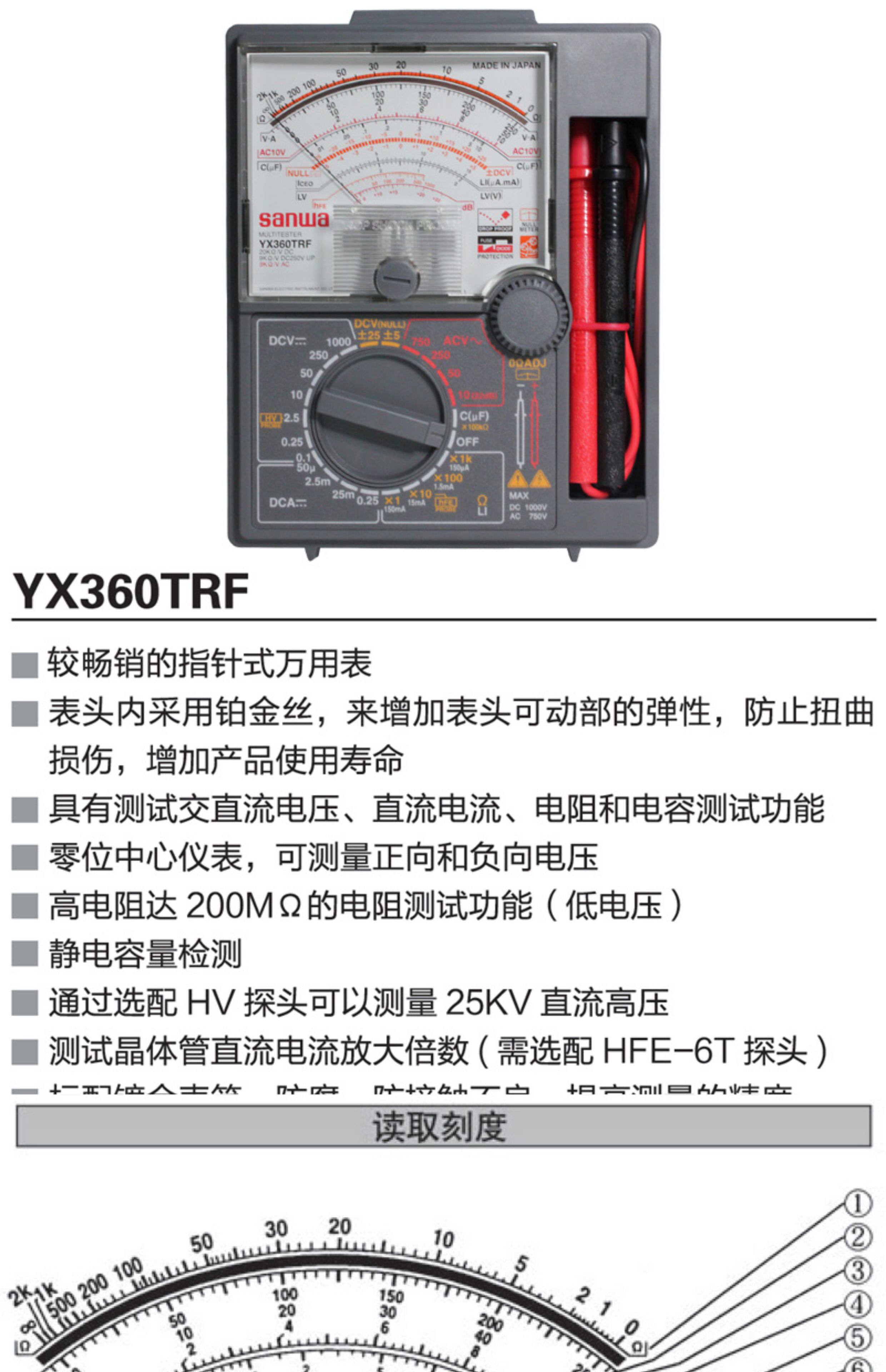Imported Japanese Sanwa High-Precision Analog Mechanical Electrician's Maintenance Multimeter with Fast Response