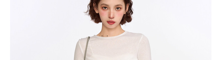 White Semi-Sheer Long-Sleeve T-Shirt for Women, Suitable for Summer, Spring, and Autumn, Thin Sunscreen Cover-Up, Slim Fit, Versatile Base Layer Top
