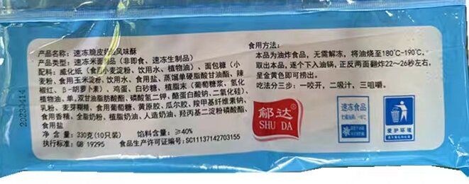 Shuda Crispy Cream Flavor Pastry 330g*12 Bags of Semi-Finished Fried Snacks