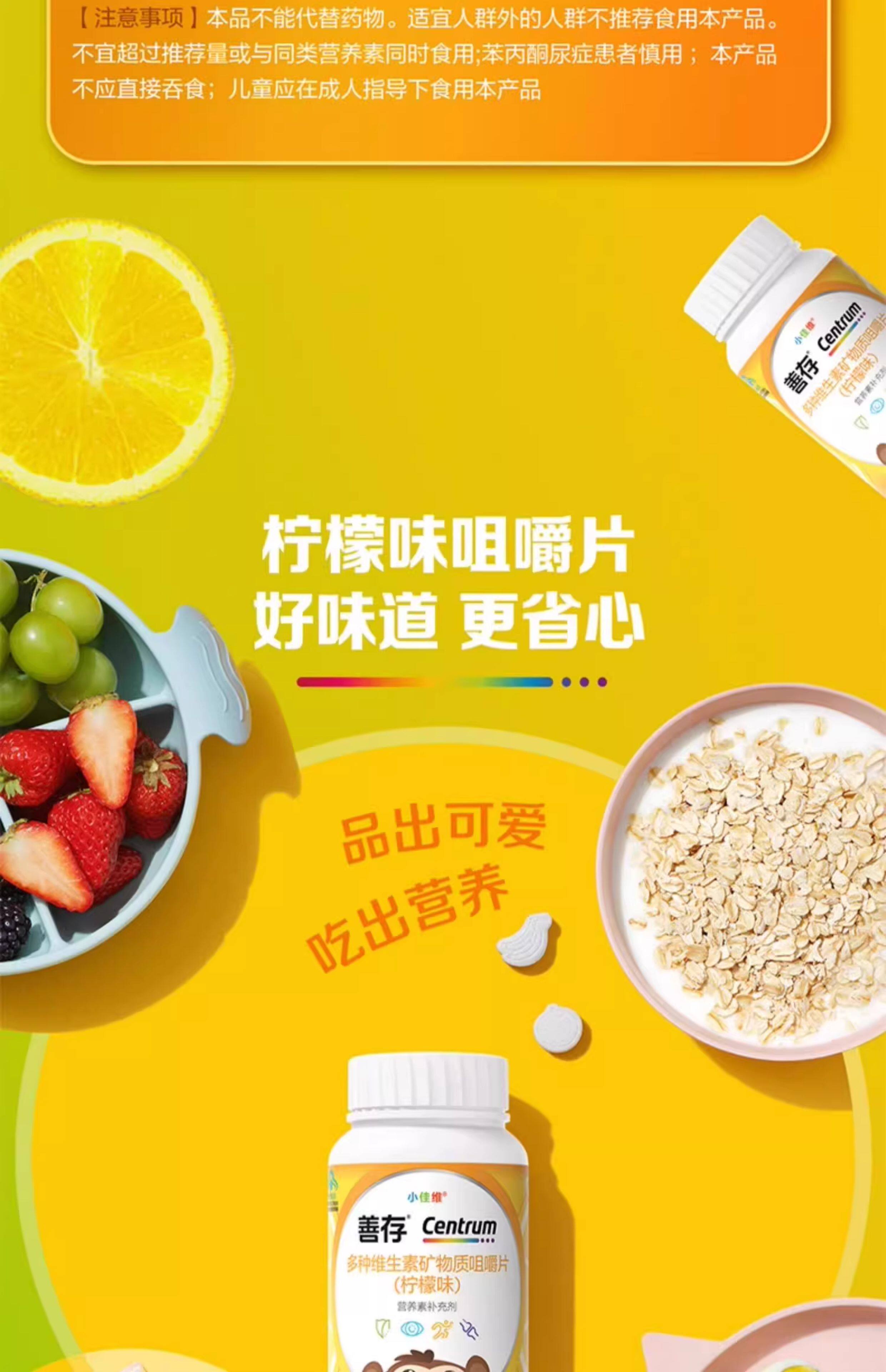 Sencun Xiaojiaowei Kidsren's Multivitamin and Mineral Complex for Kidsren, Students, Vcb Family, Calcium, Iron, Zinc, Lemon Flavor