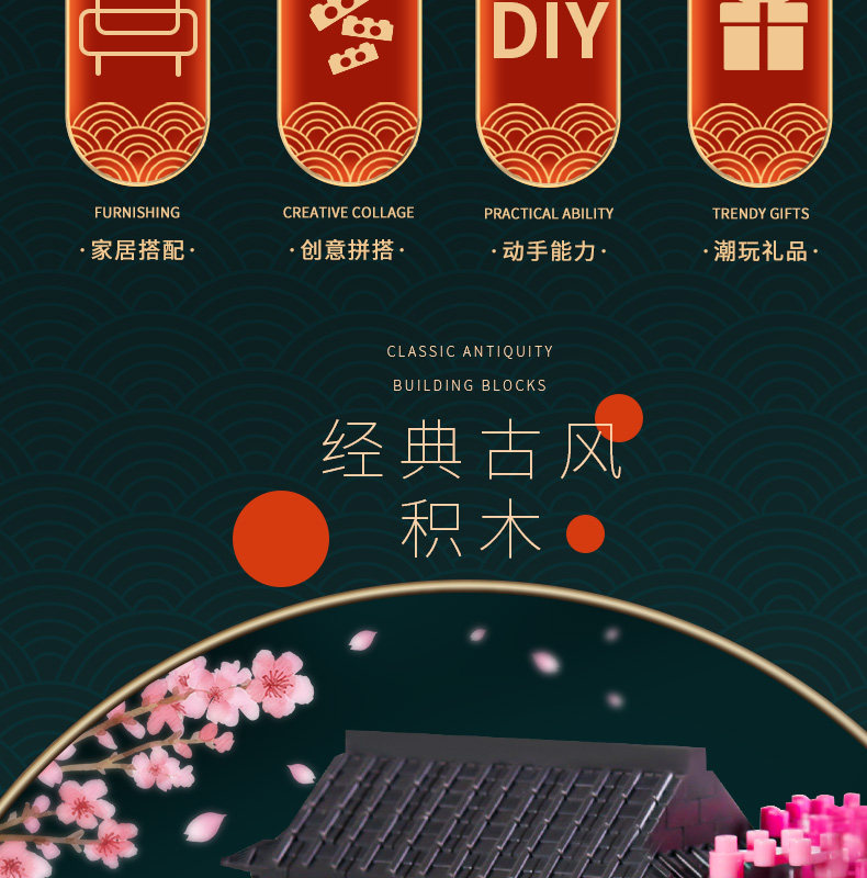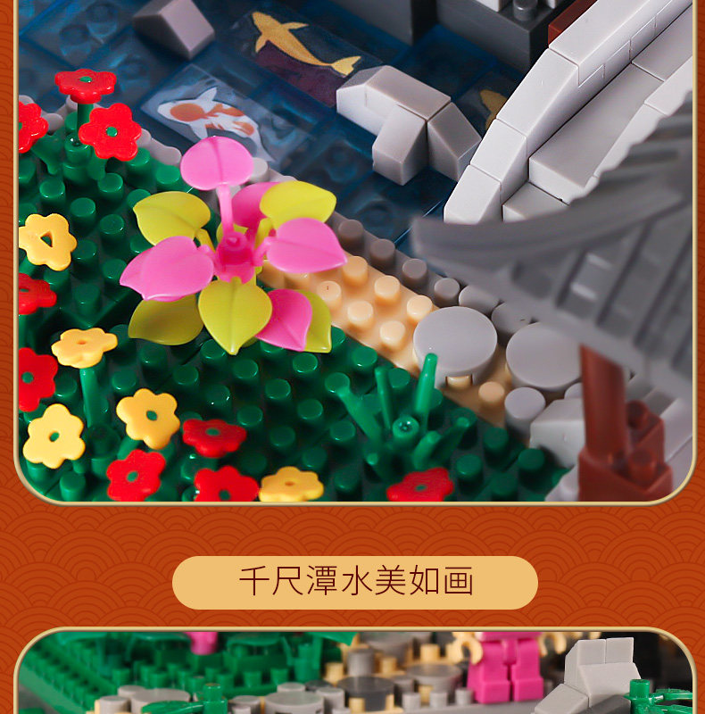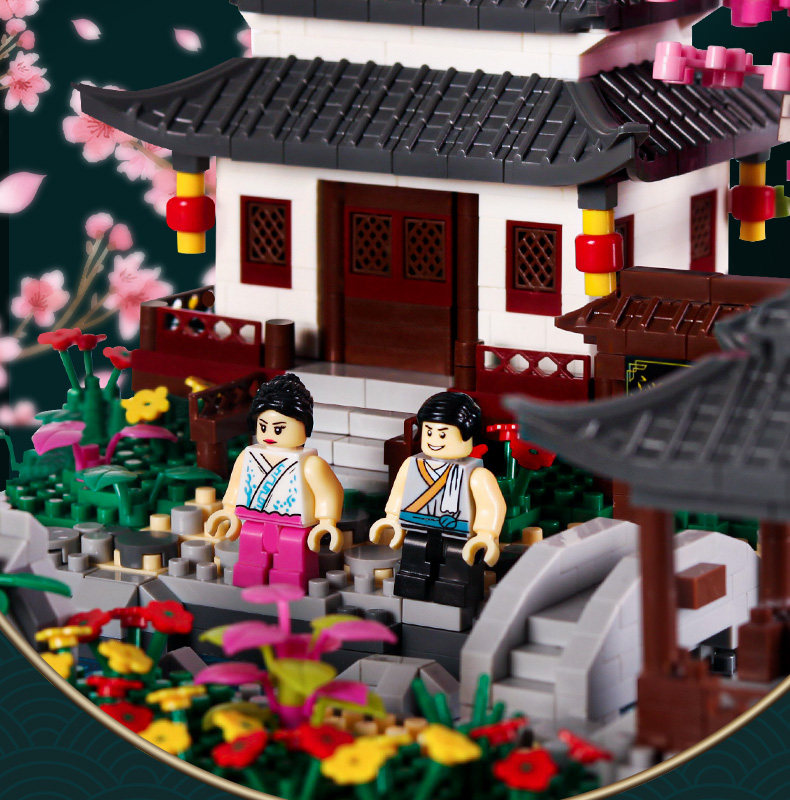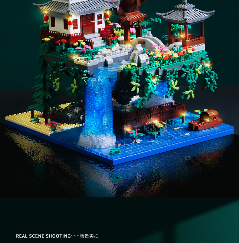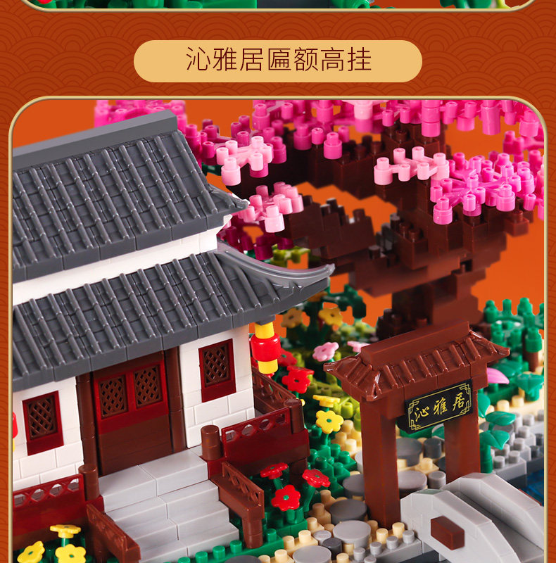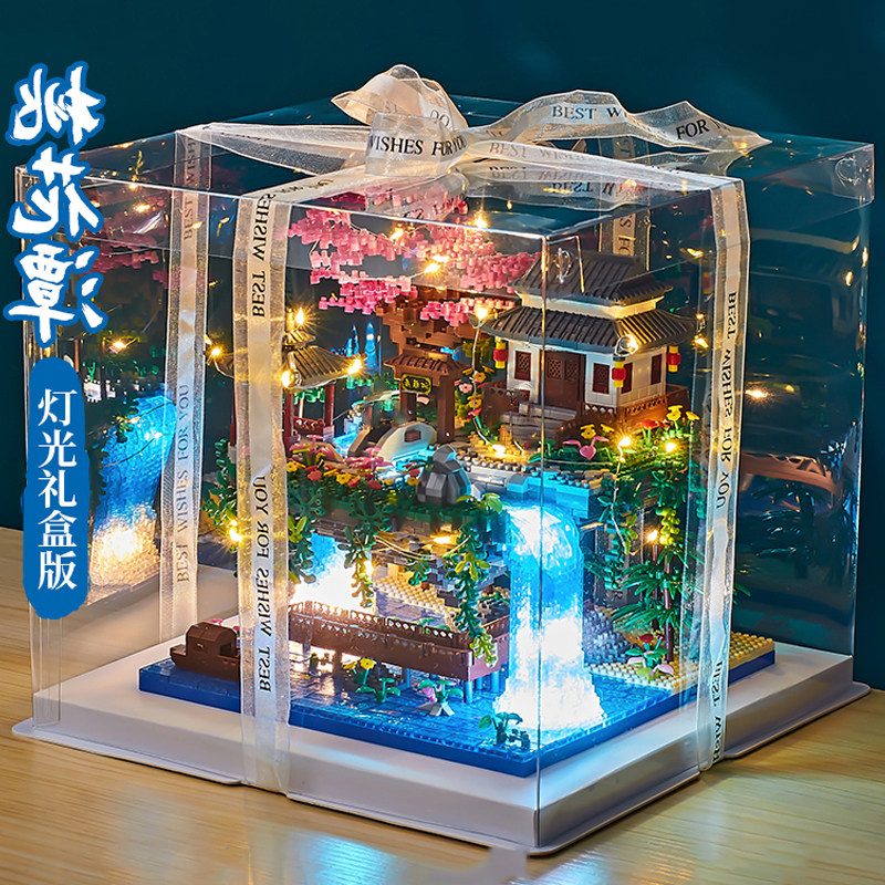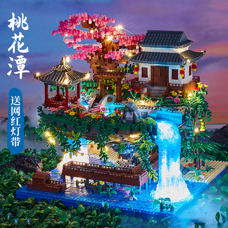 Peach blossom pond tree house building blocks girl series jigsaw puzzle high difficulty construction 10,000 pieces assembling toys for ages over 18