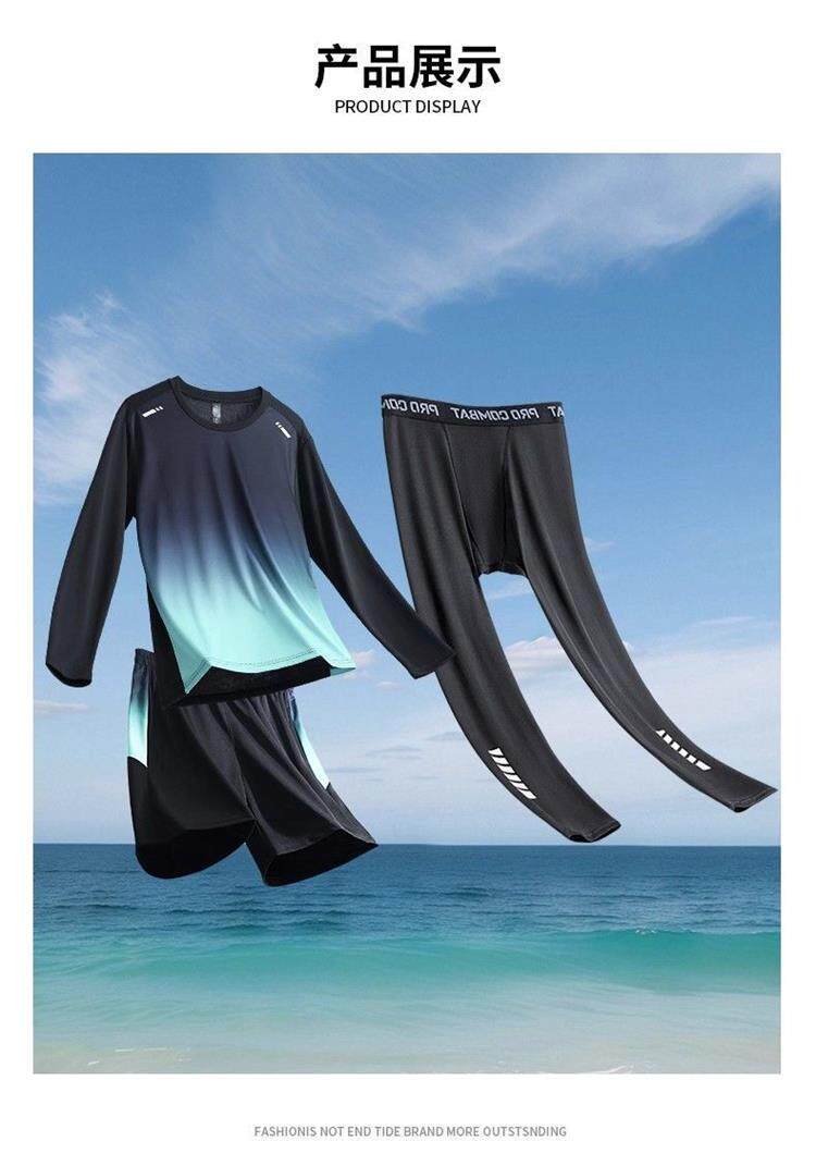 Swimsuit Set for Men, Sun Protection, Long Sleeves, Long Pants, Rafting, Youth Swimming Equipment, Complete Set, Adult New Quick-Drying Swimming Trunks