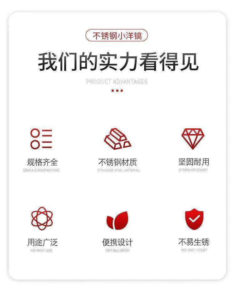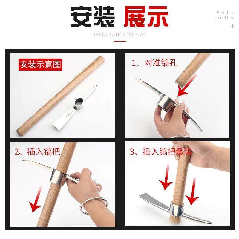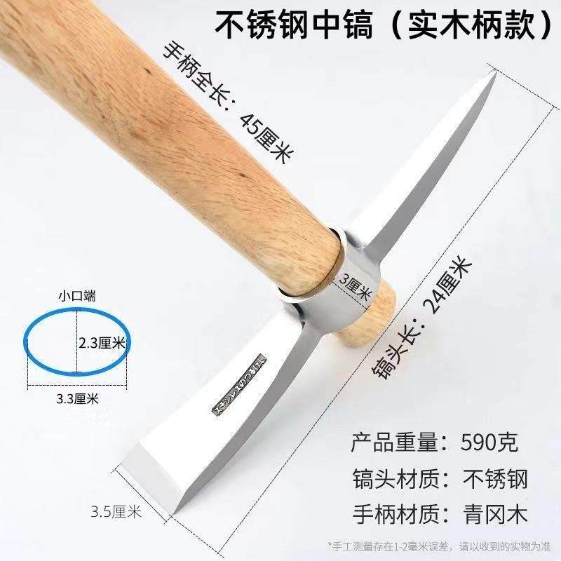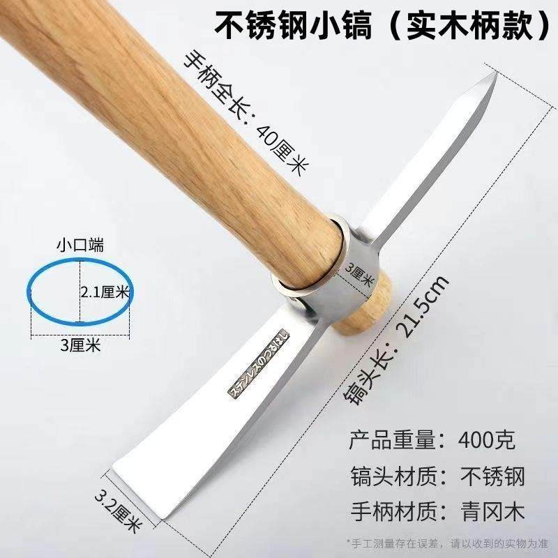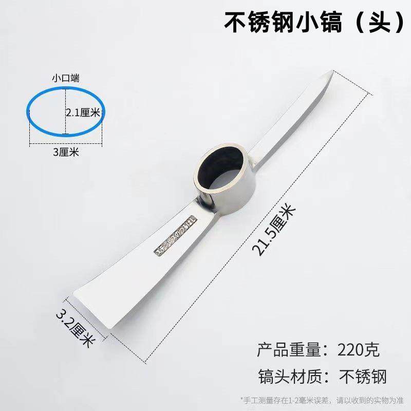 Sort by color High hardness stainless steel pickaxe (solid wood handle),High hardness stainless steel small pick (handleless model),Small iron pickaxe (wooden handle type),Large iron pickaxe (wooden handle),Extra Large Pickaxe (Wooden Handle Model),Large iron pick (fiber handle),Thin forged pick (wooden handle),Small pickaxe (without handle)