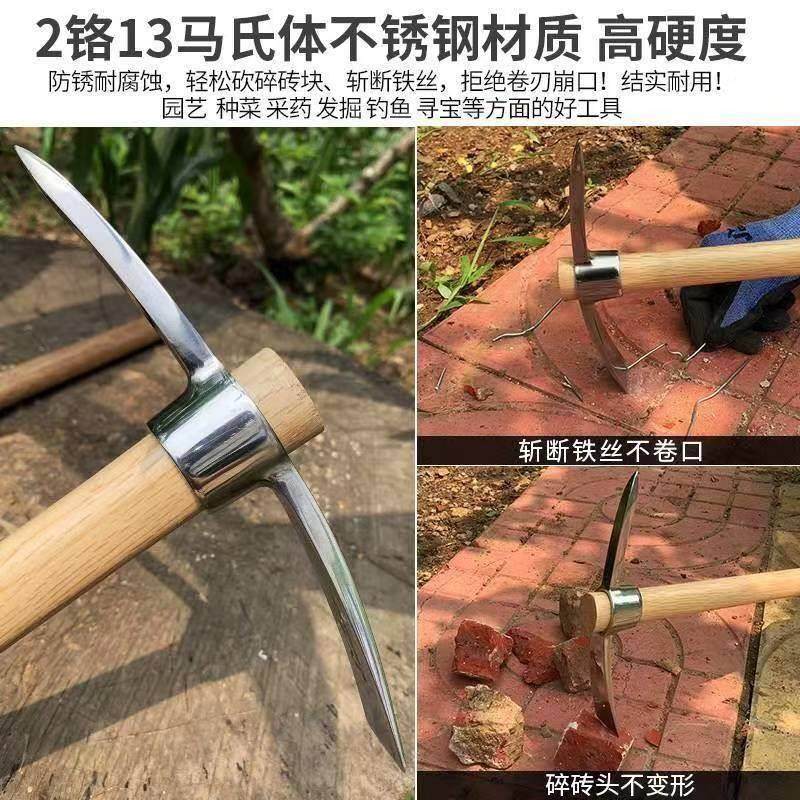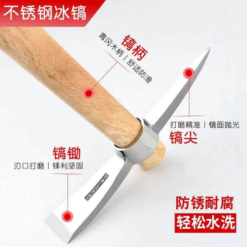 Stainless steel pick, outdoor small foreign pick, mountaineering pick, ice pick, thickened cross pick, pure steel bamboo shoot hoe, multi-functional agricultural use
