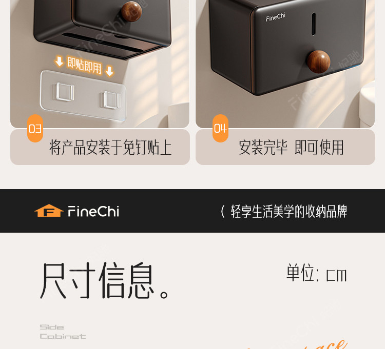 Finechi Vintage-Style Bathroom Toilet Paper Holder, Bathroom Tissue Box, Punch-Free Storage Rack, Waterproof Toilet Tissue Holder