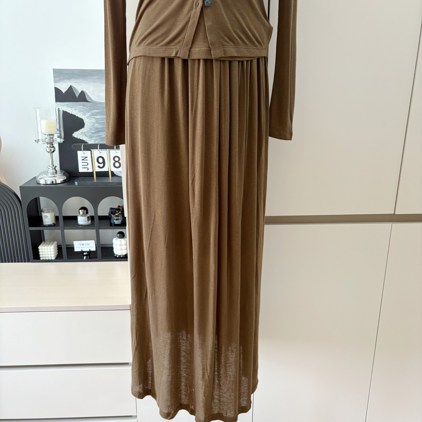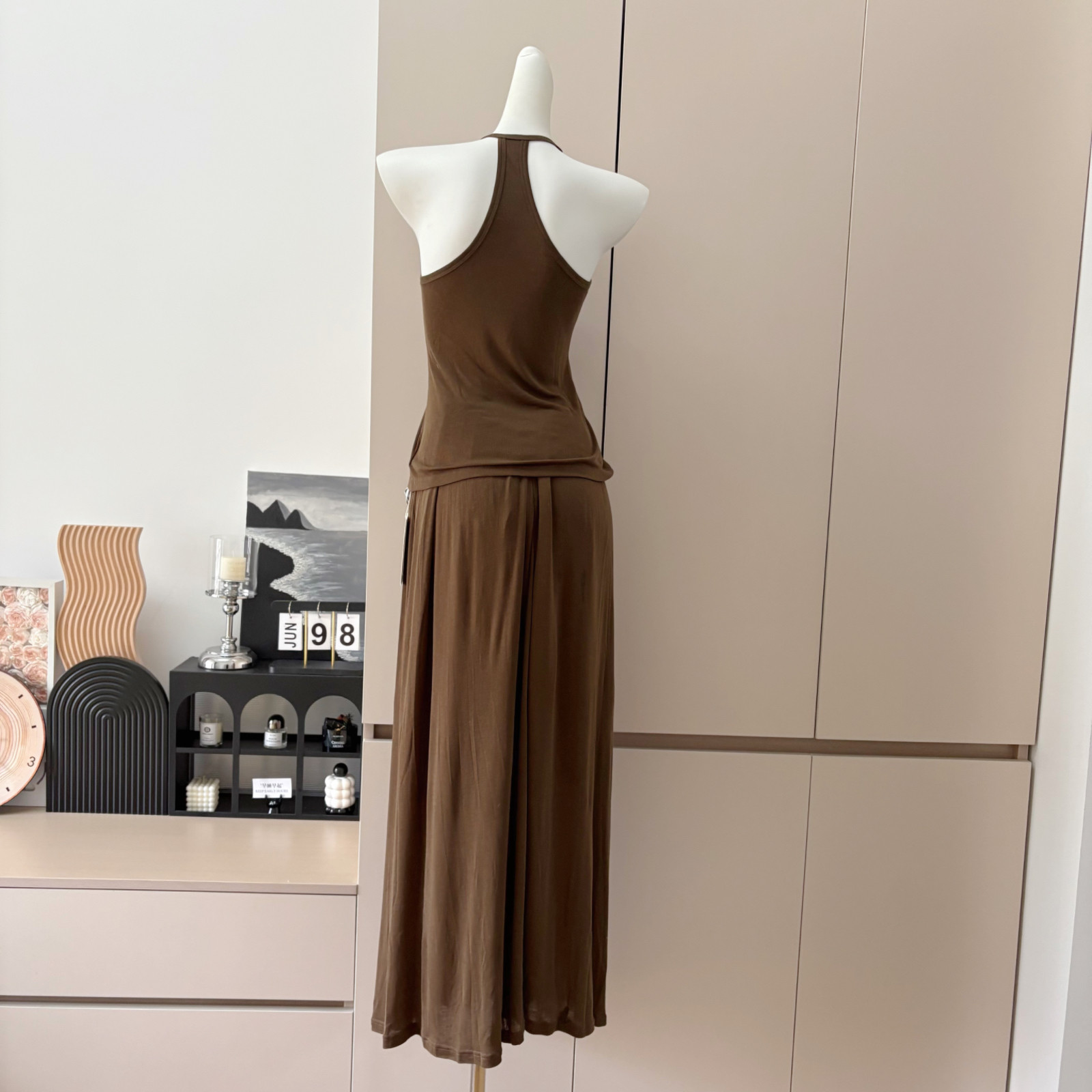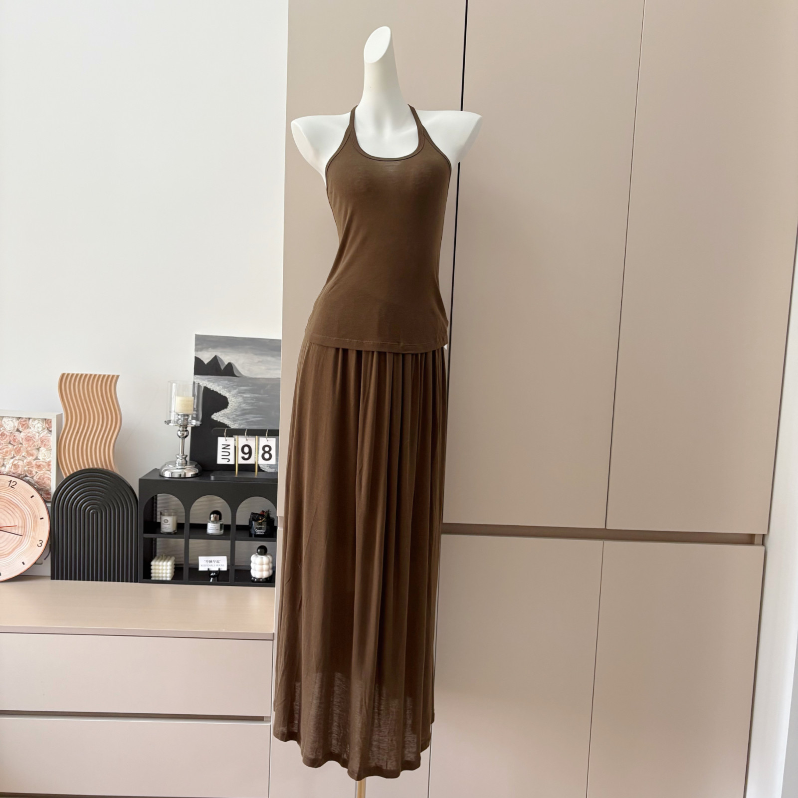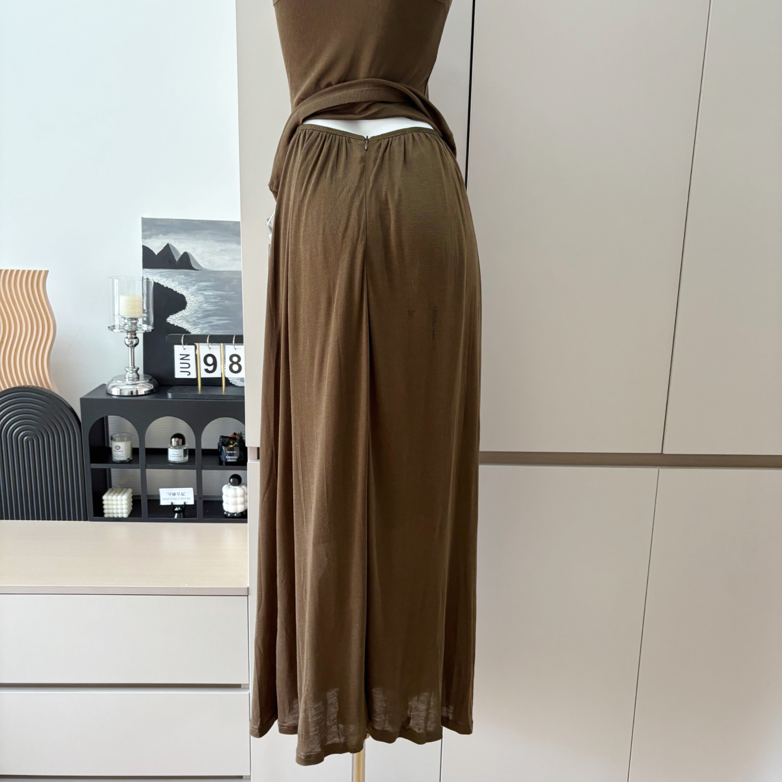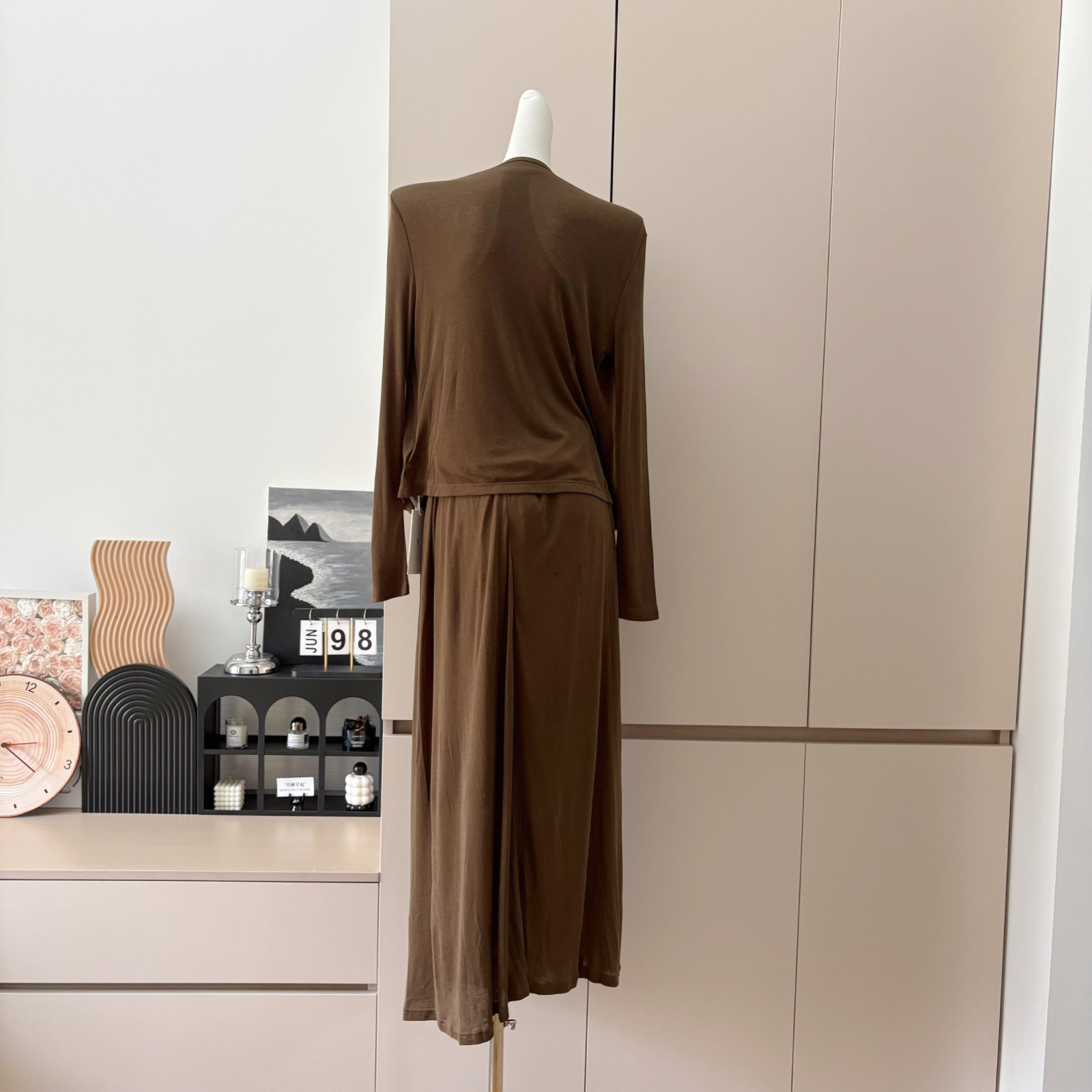 Popw Chestnut Autumn Tencel Knitted Cardigan Set Women's Early Autumn Vest Skirt Three-Piece Set
