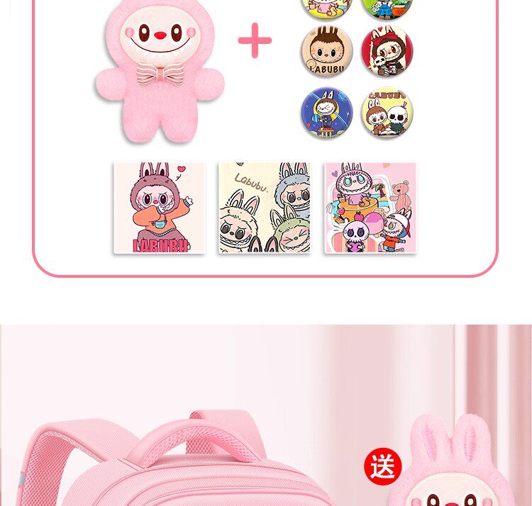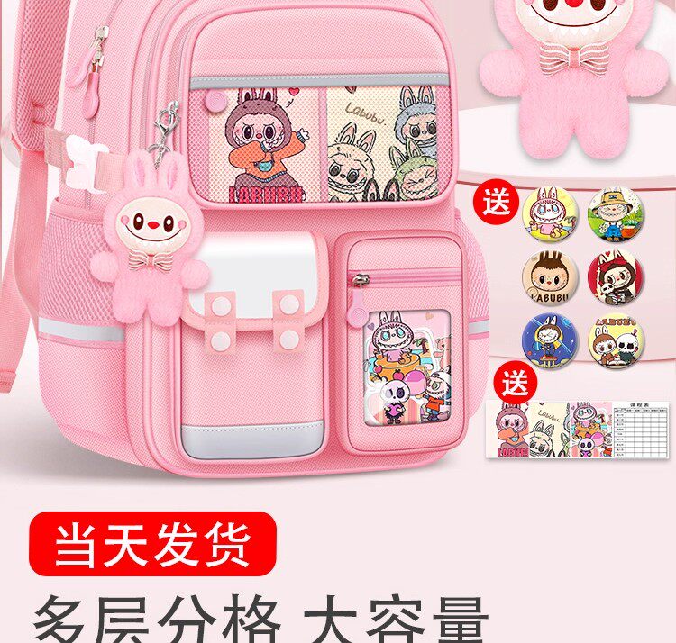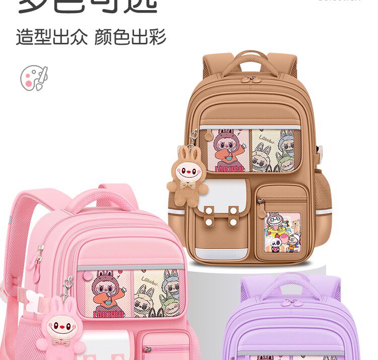 Labubu schoolbag for girls primary school students 2026 new style first, second, third to sixth grade girls large capacity spine protection and burden reduction