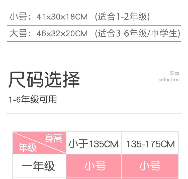Sort by color Lightweight Kindergarten Pink (Suitable for Kindergarten),Lightweight Kindergarten Brown (Suitable for Kindergarten),3-layer upgraded model, small purple (grades 1-2),Upgraded back pad, small purple (grades 1-2),3-layer upgraded model, small brown (grades 1-2),Upgraded back pad, small brown (grades 1-2),3-layer upgraded model, small pink (grades 1-2),Upgraded back pad, small pink (grades 1-2),3-layer upgraded model, large purple (grades 3-6),Upgraded back pad, large purple (grades 3-6),3-layer upgraded model, large brown (grades 3-6),Upgraded back pad, large brown (grades 3-6),3-layer upgraded model, large pink (grades 3-6),Upgraded back pad, large pink (grades 3-6),3-layer upgraded model, small purple + pencil case (grades 1-2),Upgraded back pad, small purple + pencil case (grades 1-2),3-layer upgraded model, small brown + pencil case (grades 1-2),Upgraded back pad, small brown + pencil case (grades 1-2),3-layer upgraded model, small pink + pencil case (grades 1-2),Upgraded back pad, small pink + pencil case (grades 1-2),3-layer upgraded model, large purple + pencil case (grades 3-6),Upgraded back pad, large purple + pencil case (grades 3-6),3-layer upgraded model, large brown + pencil case (grades 3-6),Upgraded back pad, large brown + pencil case (grades 3-6),3-layer upgraded model large pink + pencil case (grades 3-6),Upgraded back pad, large pink + pencil case (grades 3-6),3-layer upgraded model, small purple + tutoring bag (grades 1-2),Back Pad Upgraded Small Purple + Tuition Bag (Grade 1-2),3-layer upgraded model, small brown + tutoring bag (grades 1-2),Back Pad Upgraded Small Brown + Tuition Bag (Grades 1-2),3-layer upgraded model, small pink + tutoring bag (grades 1-2),Back Pad Upgraded Small Pink + Tuition Bag (Grade 1-2),3-layer upgraded model, large purple + tutoring bag (grades 3-6),Upgraded back pad, large purple + tutoring bag (grades 3-6),3-layer upgraded model, large brown + tutoring bag (grades 3-6),Upgraded Back Pad Large Brown + Tuition Bag (Grades 3-6),3-layer upgraded model, large pink + tutoring bag (grades 3-6),Upgraded back pad, large pink + tutoring bag (grades 3-6),3-layer upgraded model, small purple + tutoring bag + pencil case (grades 1-2),Upgraded back pad, small purple + tutoring bag + pencil case (grades 1-2),3-layer upgraded model, small brown + tutoring bag + pencil case (grades 1-2),Upgraded back pad, small brown + tutoring bag + pencil case (grades 1-2),3-layer upgraded model, small pink + tutoring bag + pencil case (grades 1-2),Upgraded back pad, small pink + tutoring bag + pencil case (grades 1-2),3-layer upgraded model, large purple + tutoring bag + pencil case (grades 3-6),Upgraded back pad, large purple + tutoring bag + pencil case (grades 3-6),3-layer upgraded model, large brown + tutoring bag + pencil case (grades 3-6),Upgraded back pad, large brown + tutoring bag + pencil case (grades 3-6),3-layer upgraded model, large pink + tutoring bag + pencil case (grades 3-6),Upgraded back pad, large pink + tutoring bag + pencil case (grades 3-6),pink