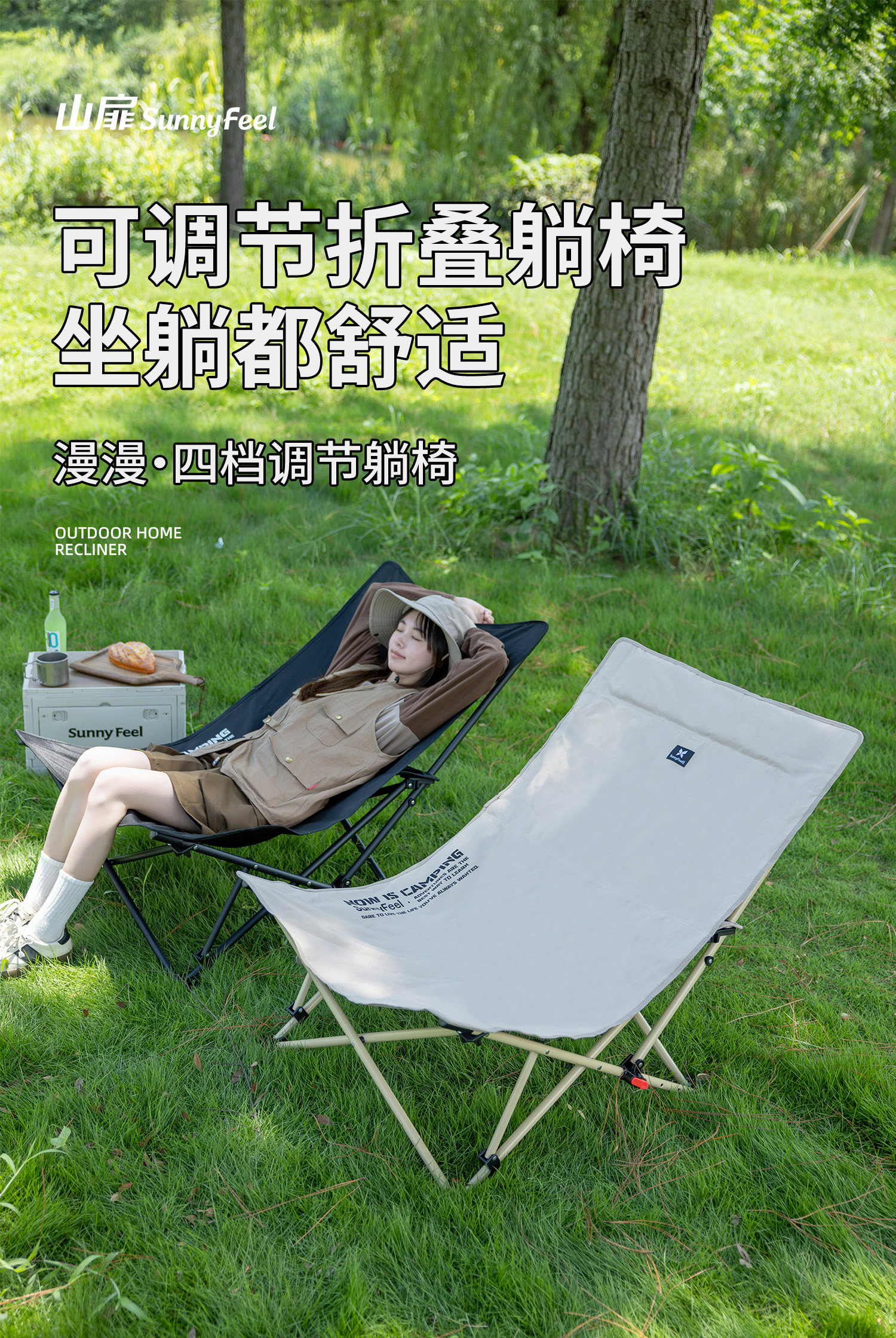 Shanfei Outdoor Four-Position Adjustable Reclining Chair, Beach Chair, Leisure Chair, Portable, Spacious, Comfortable, Dual-Use for Sitting and Lying, Easy to Travel with