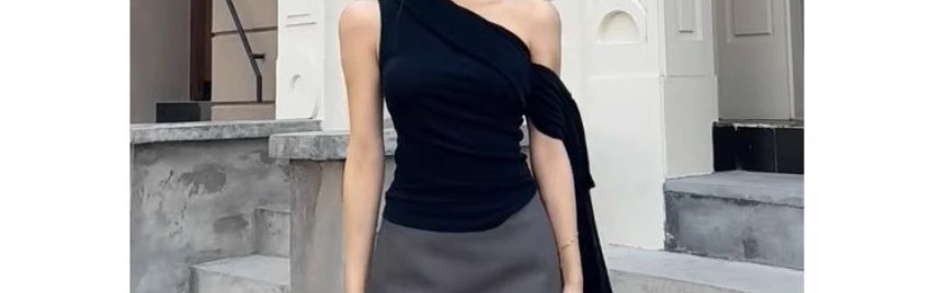One-Shoulder Slanted Neckline T-Shirt for Women, Summer Style, Sexy and Trendy, Stylish and Age-Reducing, Strapless Tie-Up Off-Shoulder Top