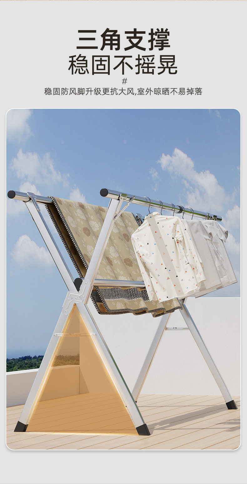 Thickened Stainless Steel Floor-Standing Folding Clothes Drying Rack, Indoor Double-Rod Clothes Rack, Outdoor Balcony Retractable Clothes Rack