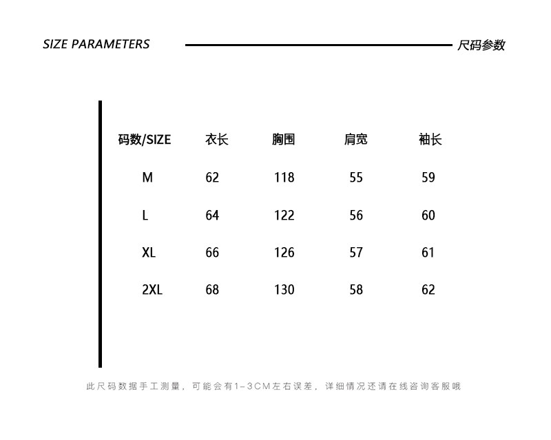 China (cm) 165 / 88-90 170 / 96-98 175 / 108-110 180 / 118-122 185 / 126-130