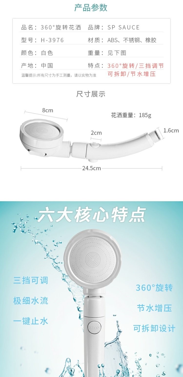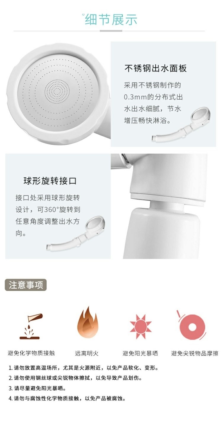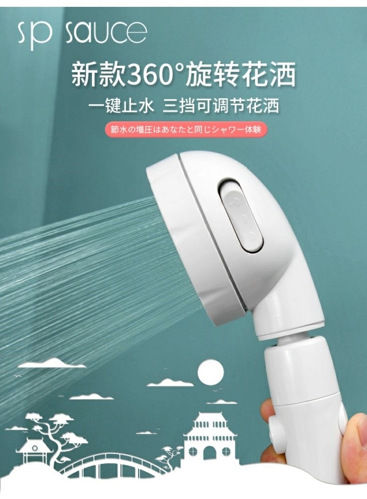 Japanese Bathroom Shower Head with Three-Speed Adjustable Handheld Booster Shower Head, Splash-Proof Shower Head