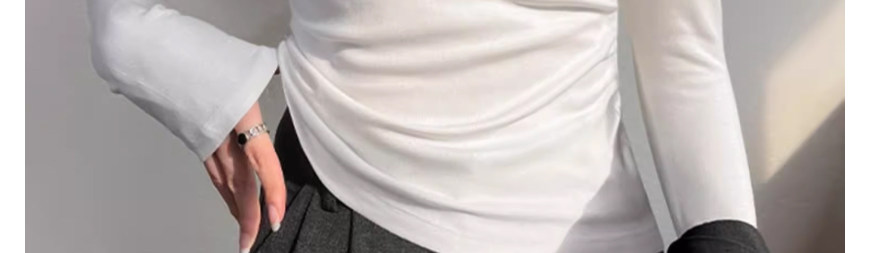 Solid Color Half-High Collar Long-Sleeve T-Shirt for Women, New Spring and Autumn Stylish Versatile Slim-Fit Base Layer Top