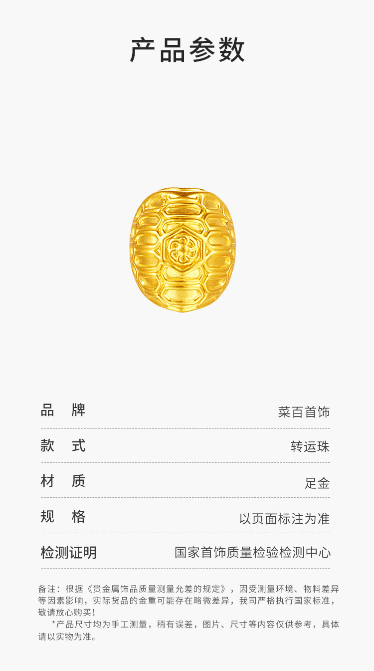 Cai Bai X Jingshan Park Pure Gold Fortune Beads in Chinese Style "Rising to the Sun" Turtle Shell Fortune Beads DIY Beading