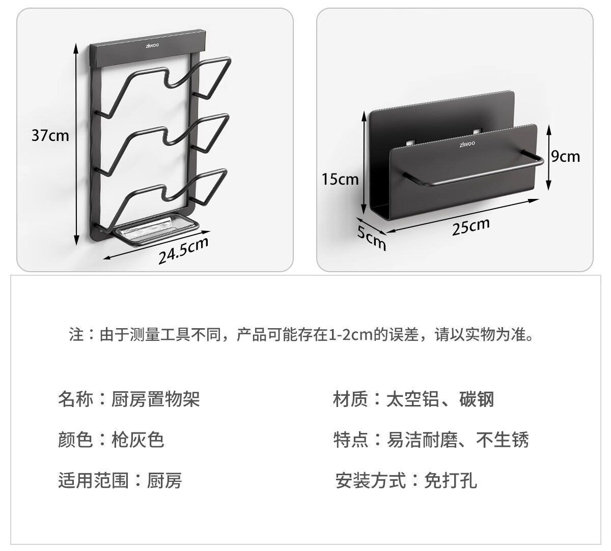 Color Classification [Ziwoo]4-Piece Set a (Seasoning Rack*2+Pot Lid Rack+Chopping Board Rack),[Ziwoo]4-Piece Set B (Seasoning Rack*2+Chopstick Holder+Knife Holder),[Ziwoo]4-Piece Set C (Knife Holder + Chopstick Holder + Pot Lid Holder + Chopping Board Holder),[Ziwoo]5-Piece Set a (Seasoning Rack*2+Chopstick Holder+Knife Holder+Pot Lid Holder),[Ziwoo]5-Piece Set B (Seasoning Rack*2+Chopstick Holder+Knife Holder+Chopping Board Holder),[Ziwoo]6-Piece Set (Seasoning Rack*2+Pot Lid Rack+Chopping Board Rack+Knife Holder+Chopstick Barrel),[Ziwoo]7-Piece Set (Seasoning Rack*2+Pot Lid Rack+Chopping Board Rack+Knife Holder+Chopstick Barrel+Hook Row),[Ziwoo]Single Layer Seasoning Rack 30cm,[Ziwoo]Single Layer Seasoning Rack 40cm,[Ziwoo]Single Layer Seasoning Rack 50cm,[Ziwoo]Single Layer Seasoning Rack 60cm,[Ziwoo]Single-Tier Seasoning Rack with Bar and Hooks - 30cm,[Ziwoo]Single-Tier Seasoning Rack with Bar and Hooks, 40cm,[Ziwoo]Single-Tier Seasoning Rack with Bar and Hooks - 50cm,[Ziwoo]Single-Tier Seasoning Rack with Bar and Hooks, 60cm,[Ziwoo]Double Layer Seasoning Rack with Rod and Hook 30cm,[Ziwoo]Double Layer Seasoning Rack with Rod and Hook 40cm,[Ziwoo]Double Layer Spice Rack with Rod 50cm,[Ziwoo]Double Layer Spice Rack with Rod 60cm,[Ziwoo-Kitchen Series]Knife Holder [Removable],[Ziwoo-Kitchen Series]Chopstick Holder [Removable],[Ziwoo-Kitchen Series]Pot Lid Holder [Removable],[Ziwoo-Kitchen Series]Chopping Board Rack [Removable],[Ziwoo-Kitchen Series]Row Hook [Removable],[Ziwoo-Kitchen Series]Rotating Hook (Wall-Mounted Version)