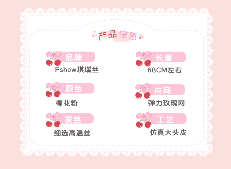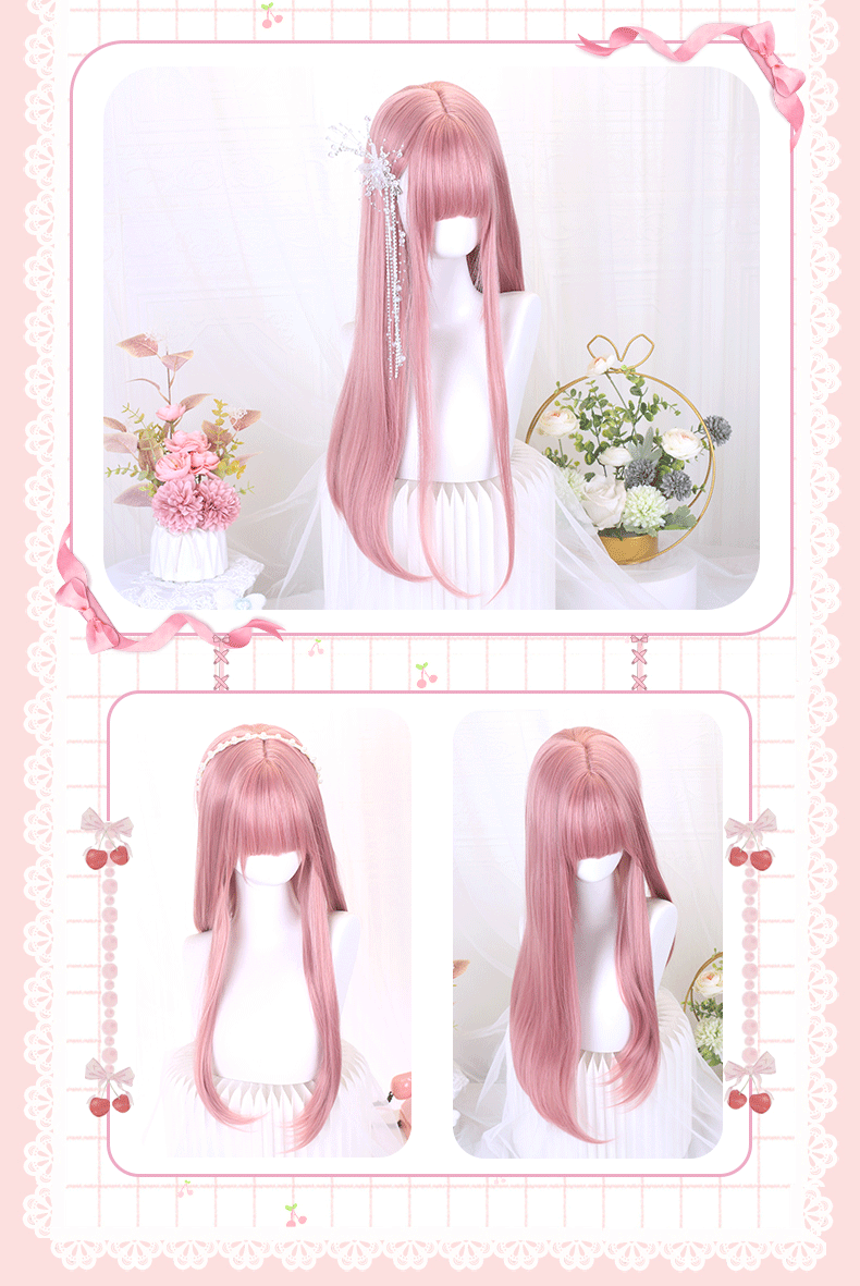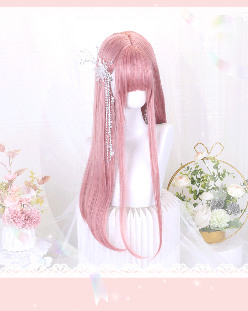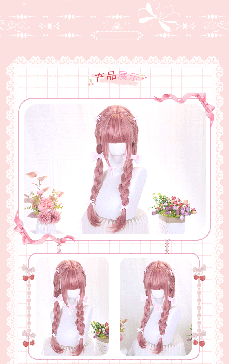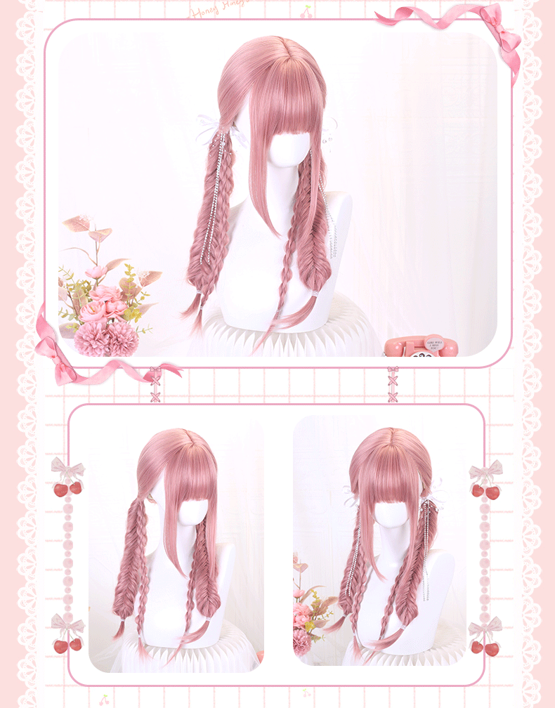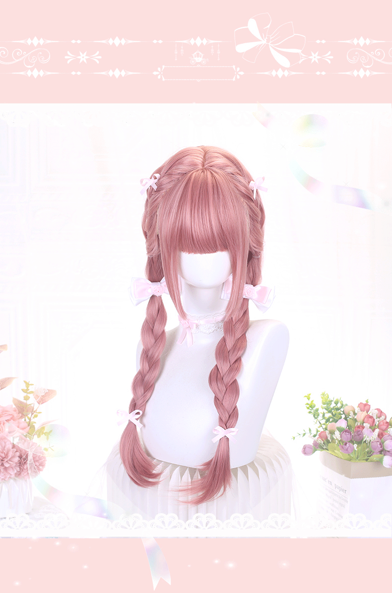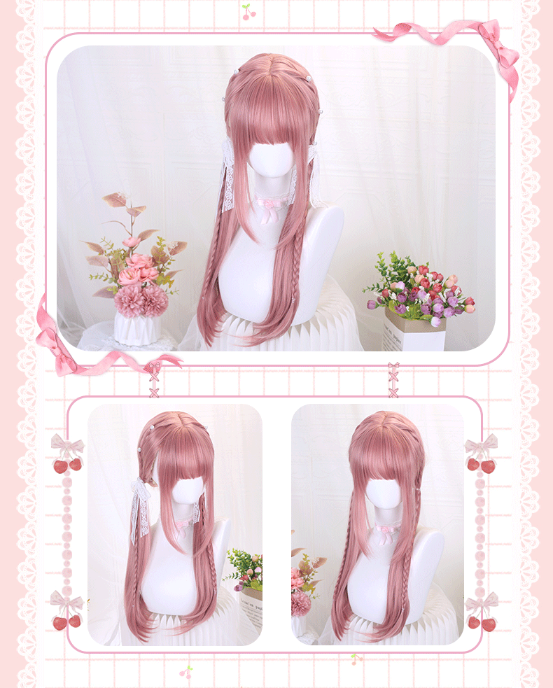 Fshow Kiris pink wig female long hair lolita braided style two dimensional bangs jk full headgear