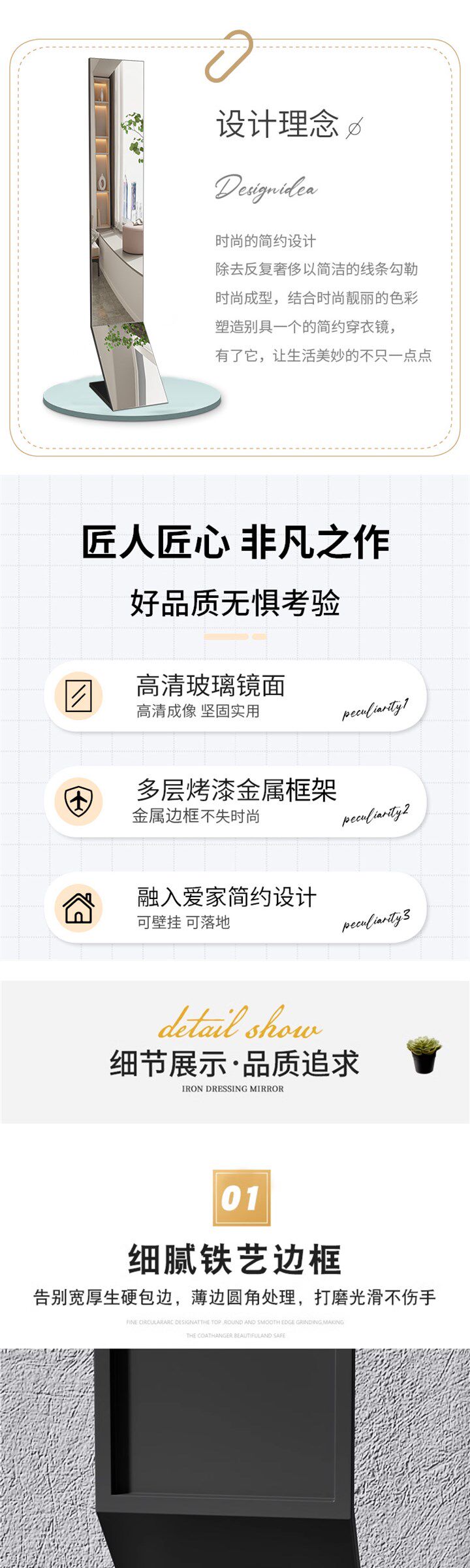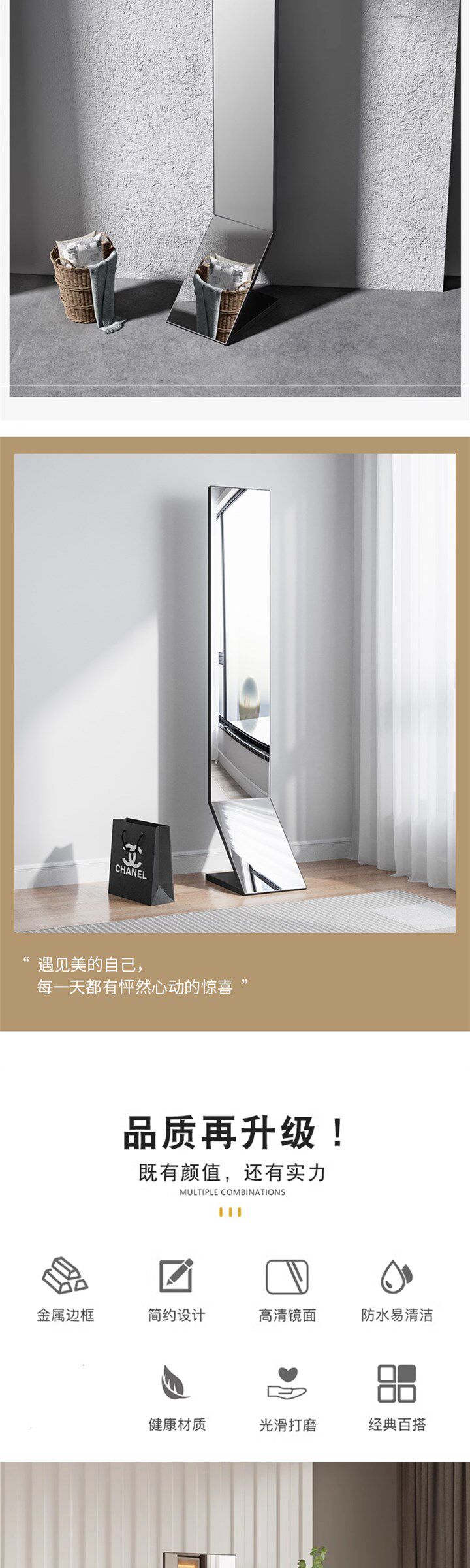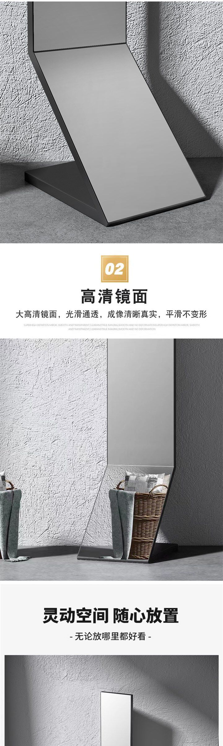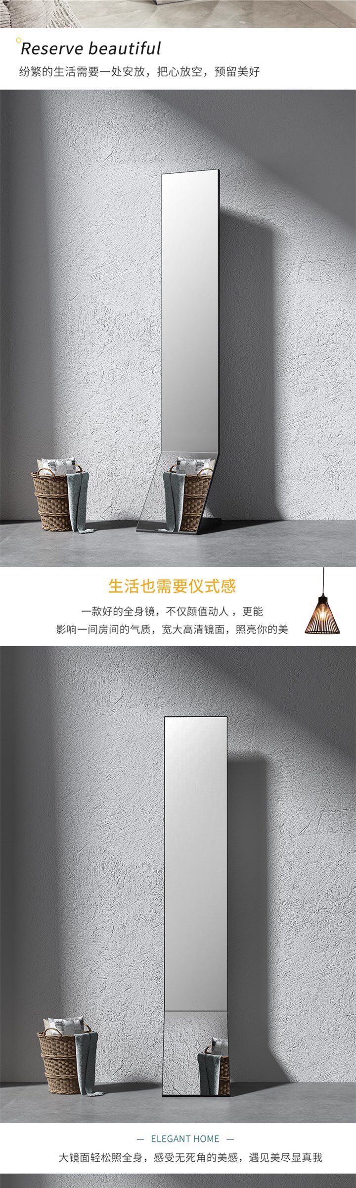 Popular Original Full-Length Mirror for Dressing, Floor-Standing, Home Use, Ins-Style, Ultra-Narrow Standing Mirror, Minimalist Design for Living Room, Fitting Mirror for Bedroom, Popular among Influencers