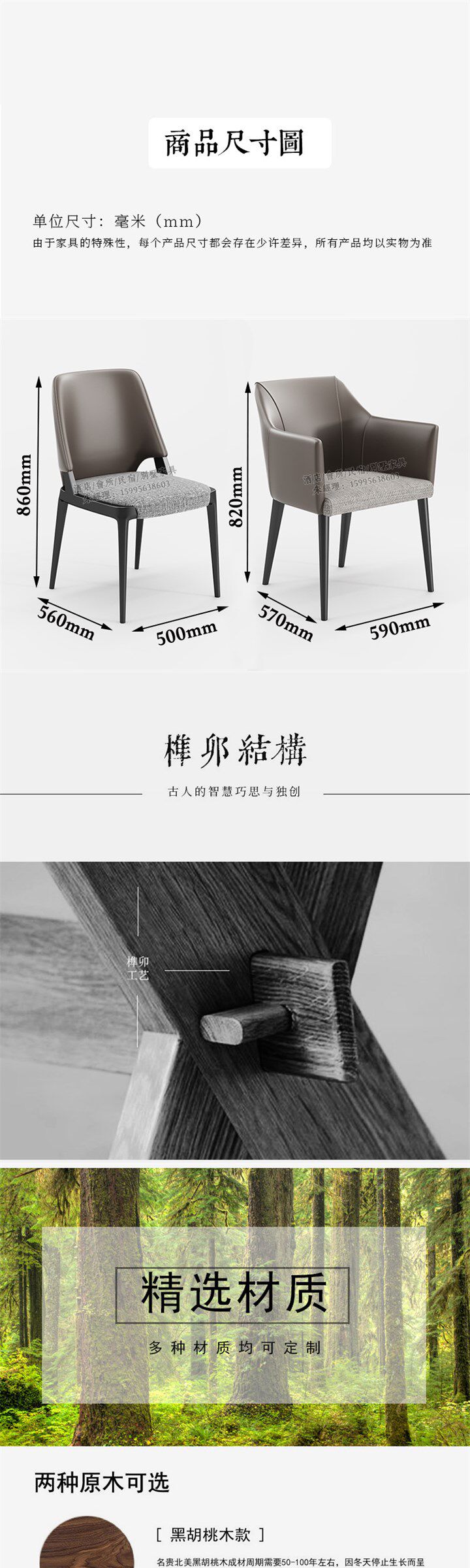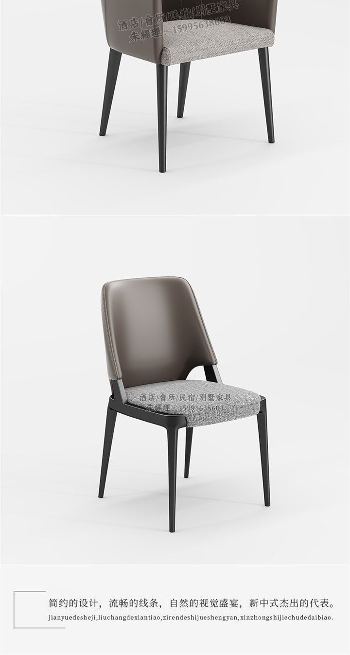 Popular New Chinese-Style High-End Solid Wood Dining Chair, Modern Minimalist Leather Light Luxury Meeting Chair for Hotel, Club, and Restaurant