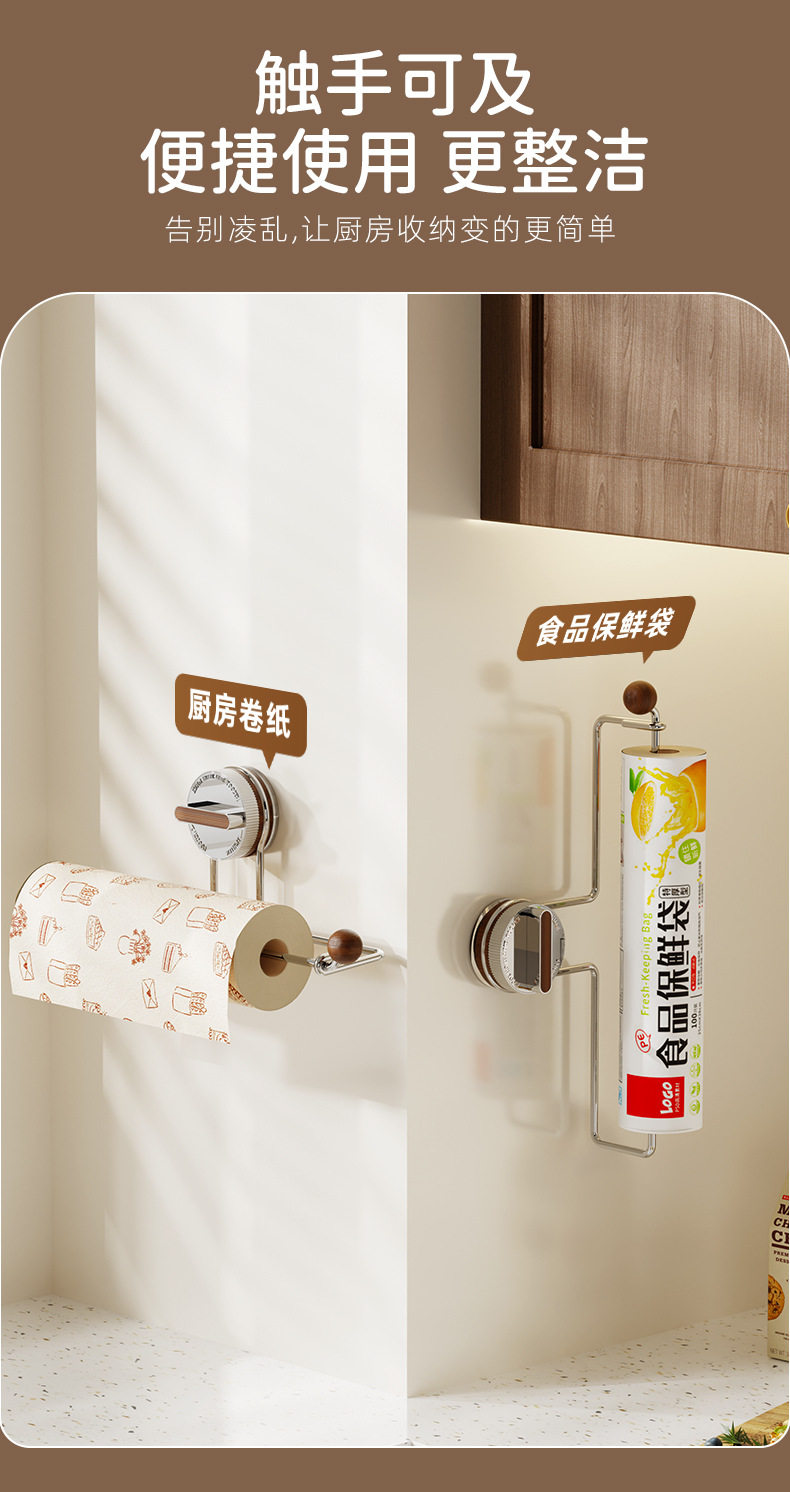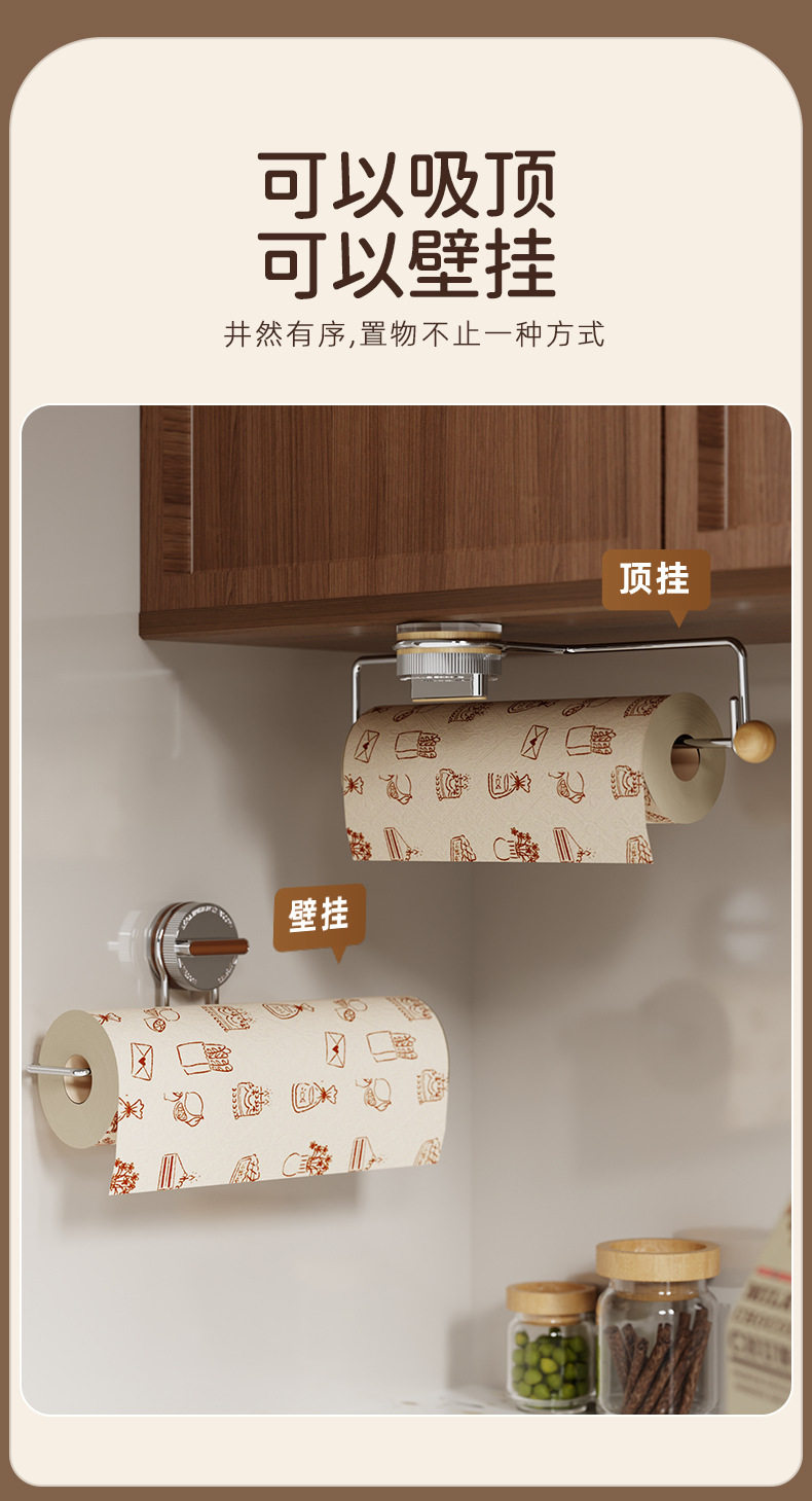 Suction Cup Kitchen Paper Towel Holder, No-Drill Cabinet Paper Hanger, Tissue Roll Holder, Lazy Rag and Cling Film Holder