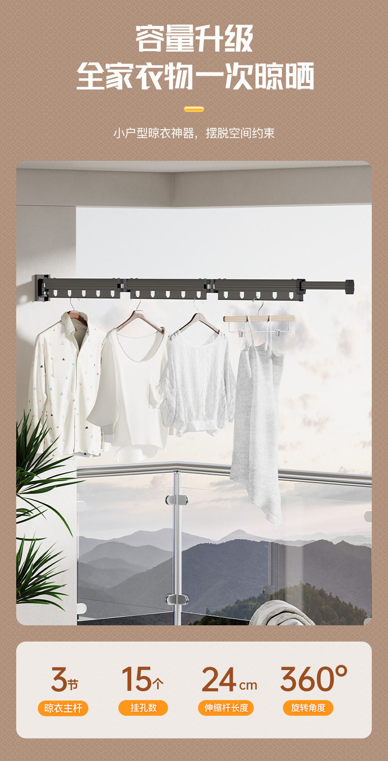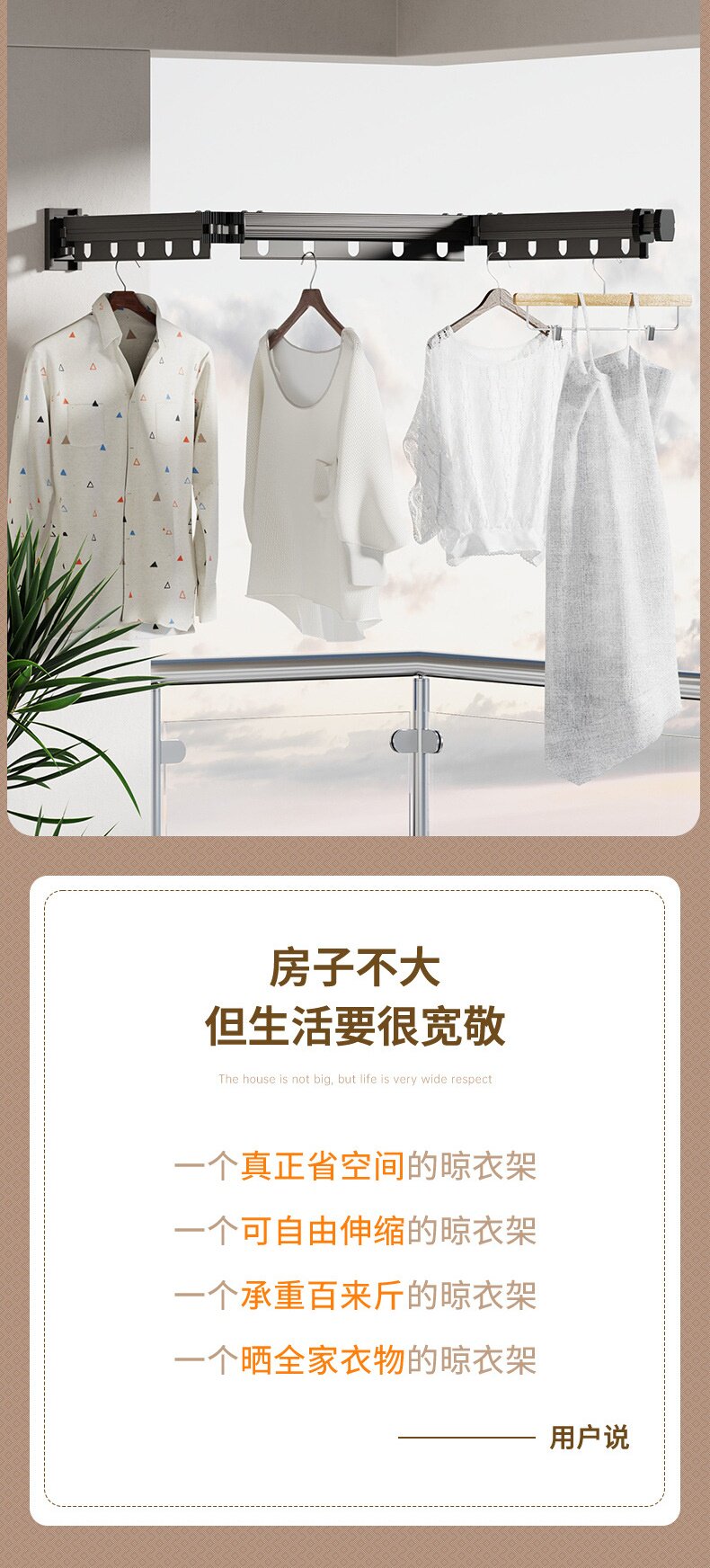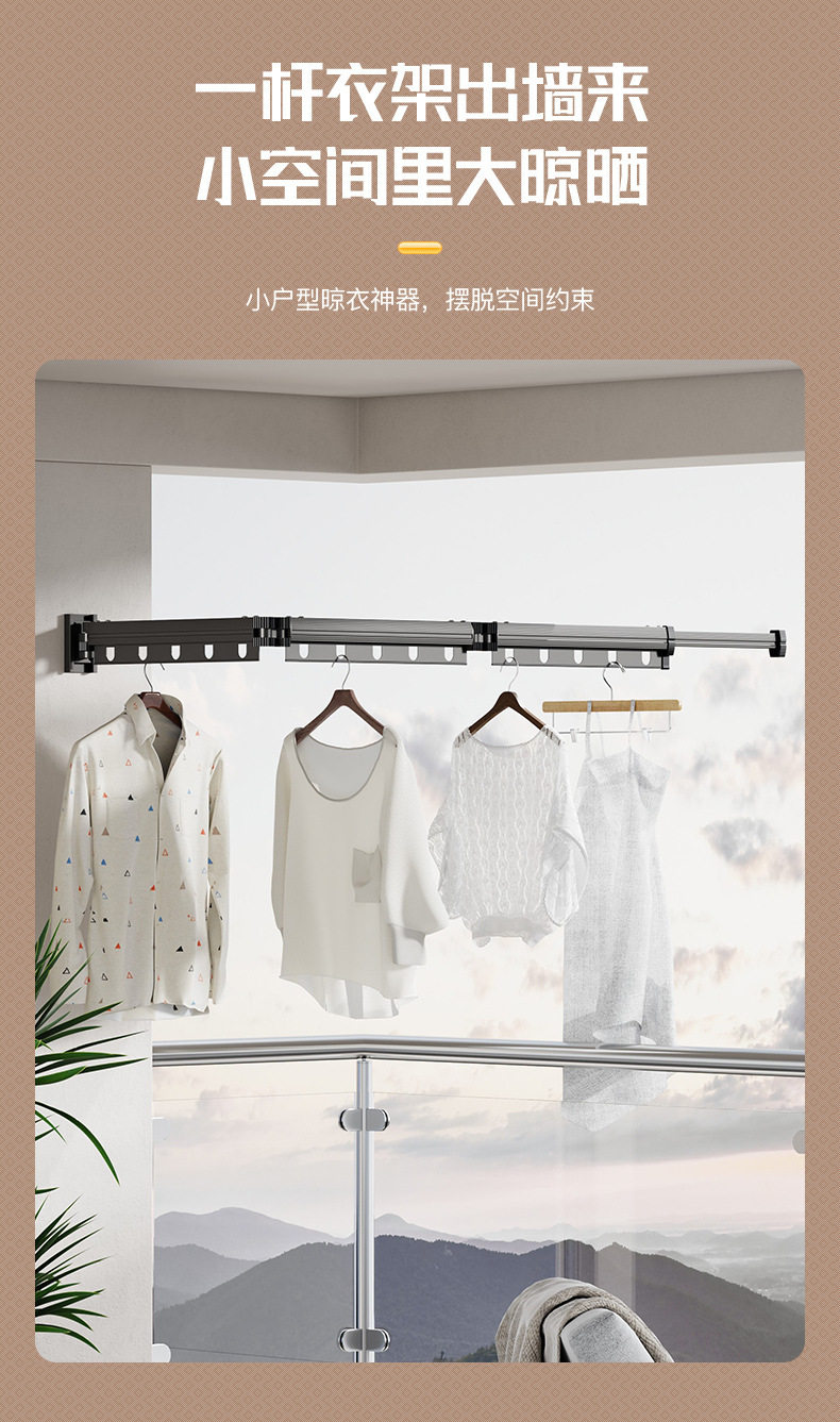 No-Drill Retractable Clothes Drying Rack, Foldable Clothes Rod for Home Use, Hidden Balcony Hanger, Indoor Fixed Wall-Mounted Single Rod