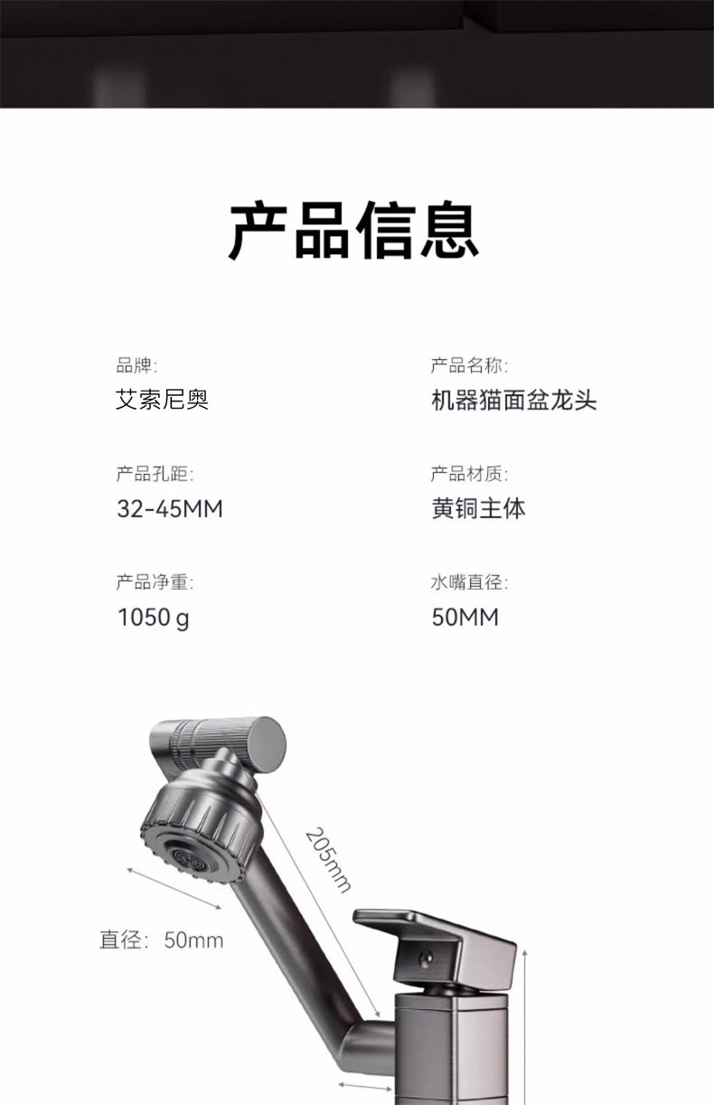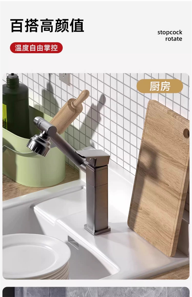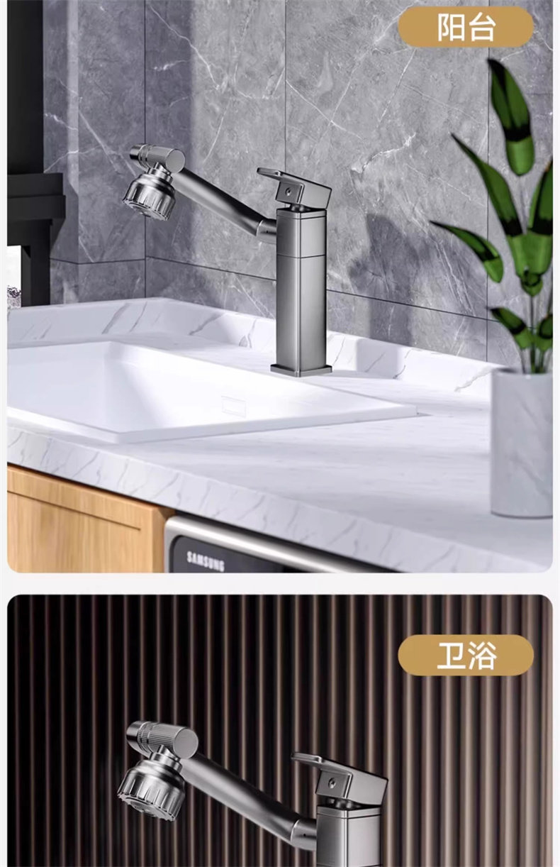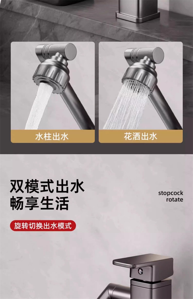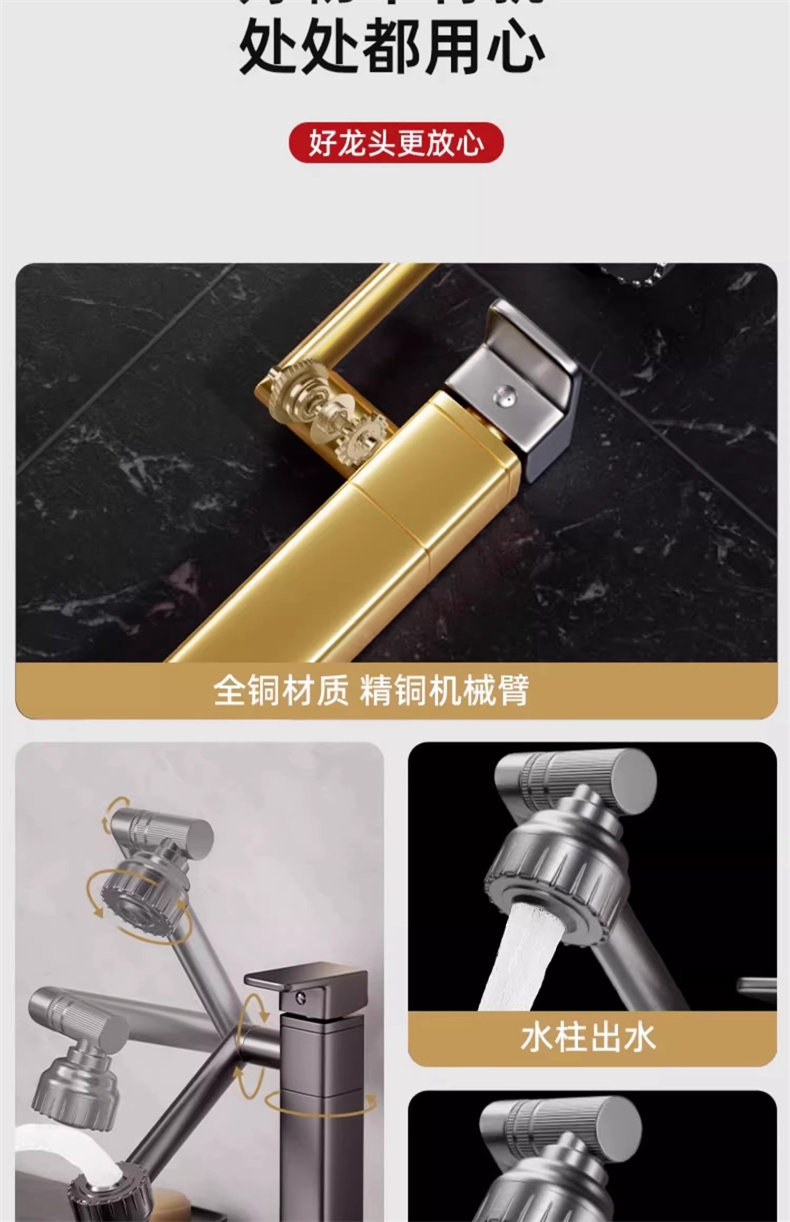 Italian Aisino All-Copper Washbasin Faucet with Hot and Cold Water, Universal Mechanical Arm, Bathroom Washbasin