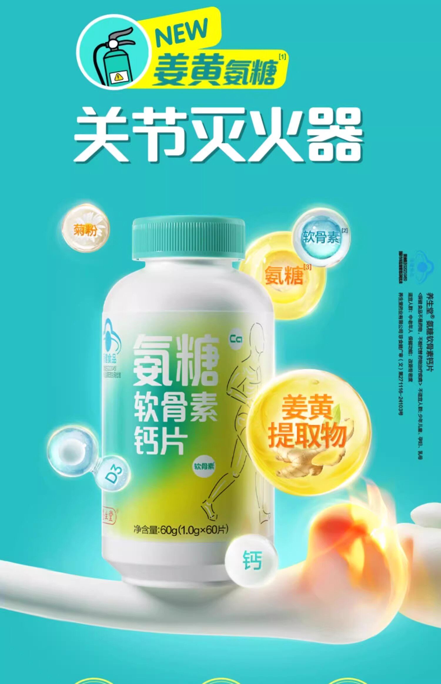 Yangshengtang Glucosamine Chondroitin Calcium Tablets 60 Tablets for Middle-Aged and Elderly People, Calcium Tablets Specially Containing 15 Times the Amount of Turmeric Glucosamine, Official Genuine Product
