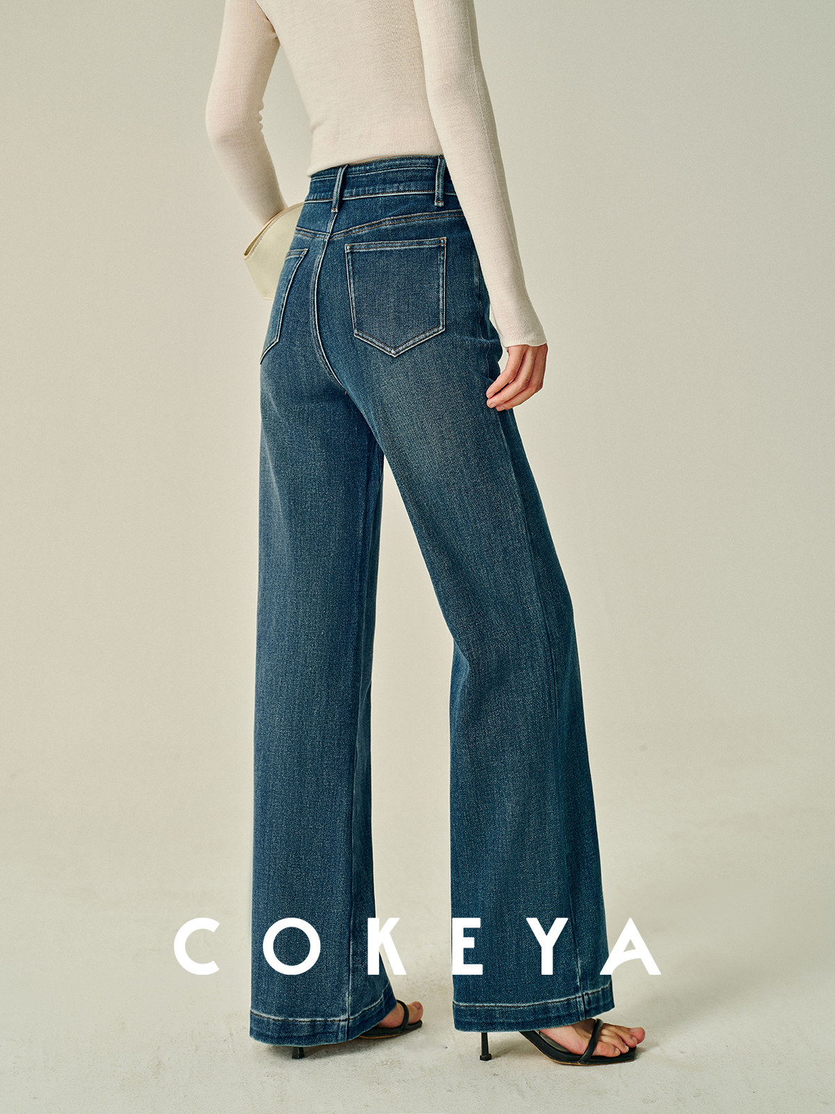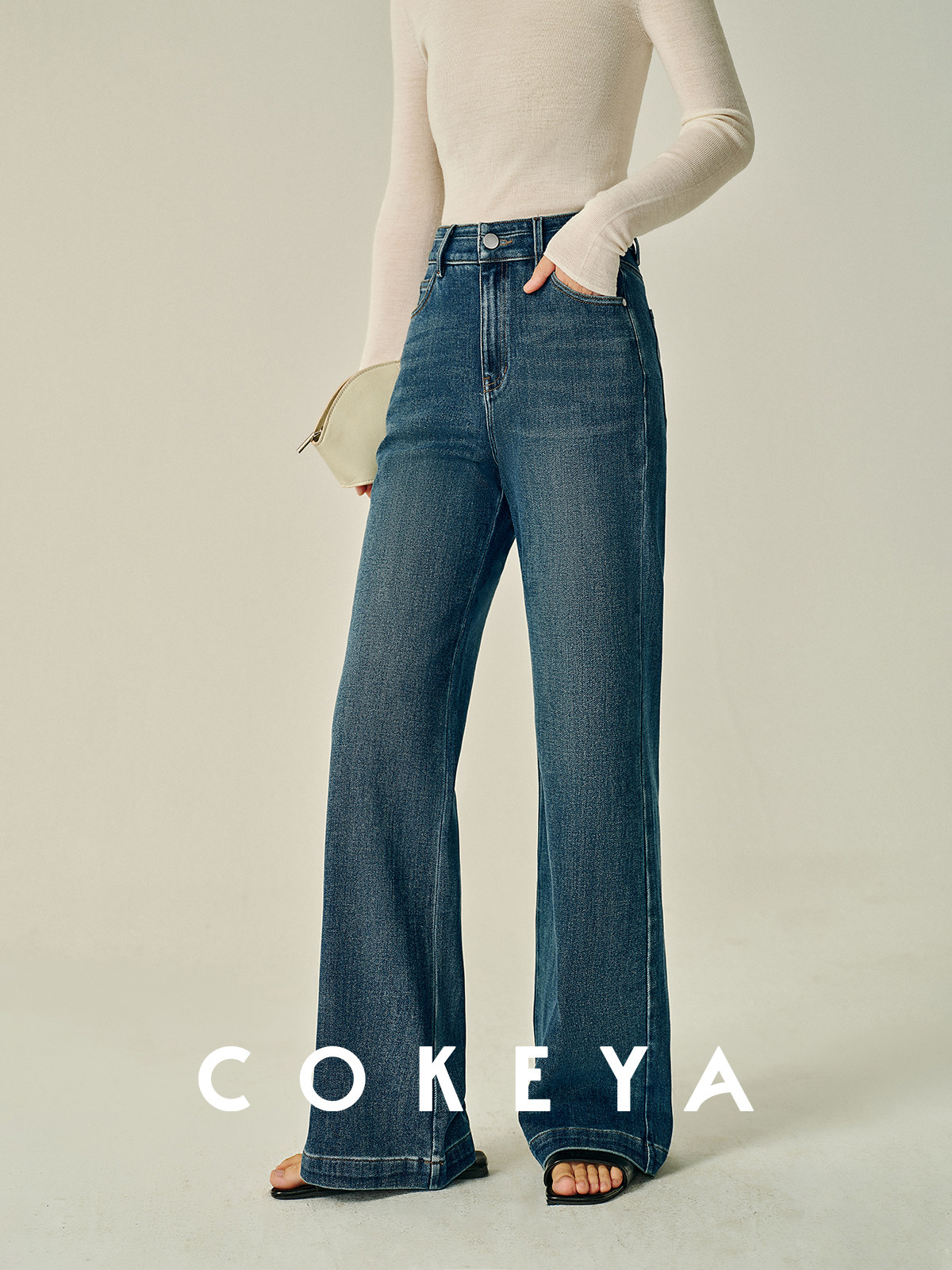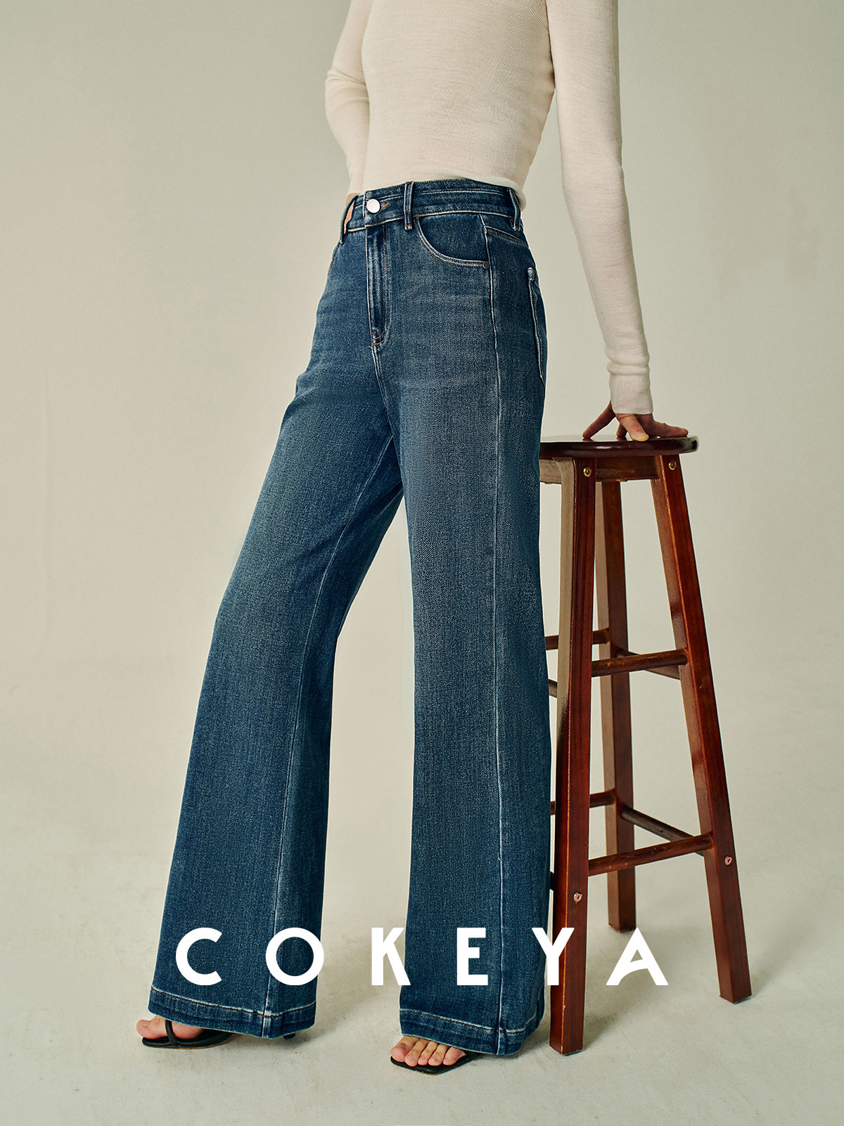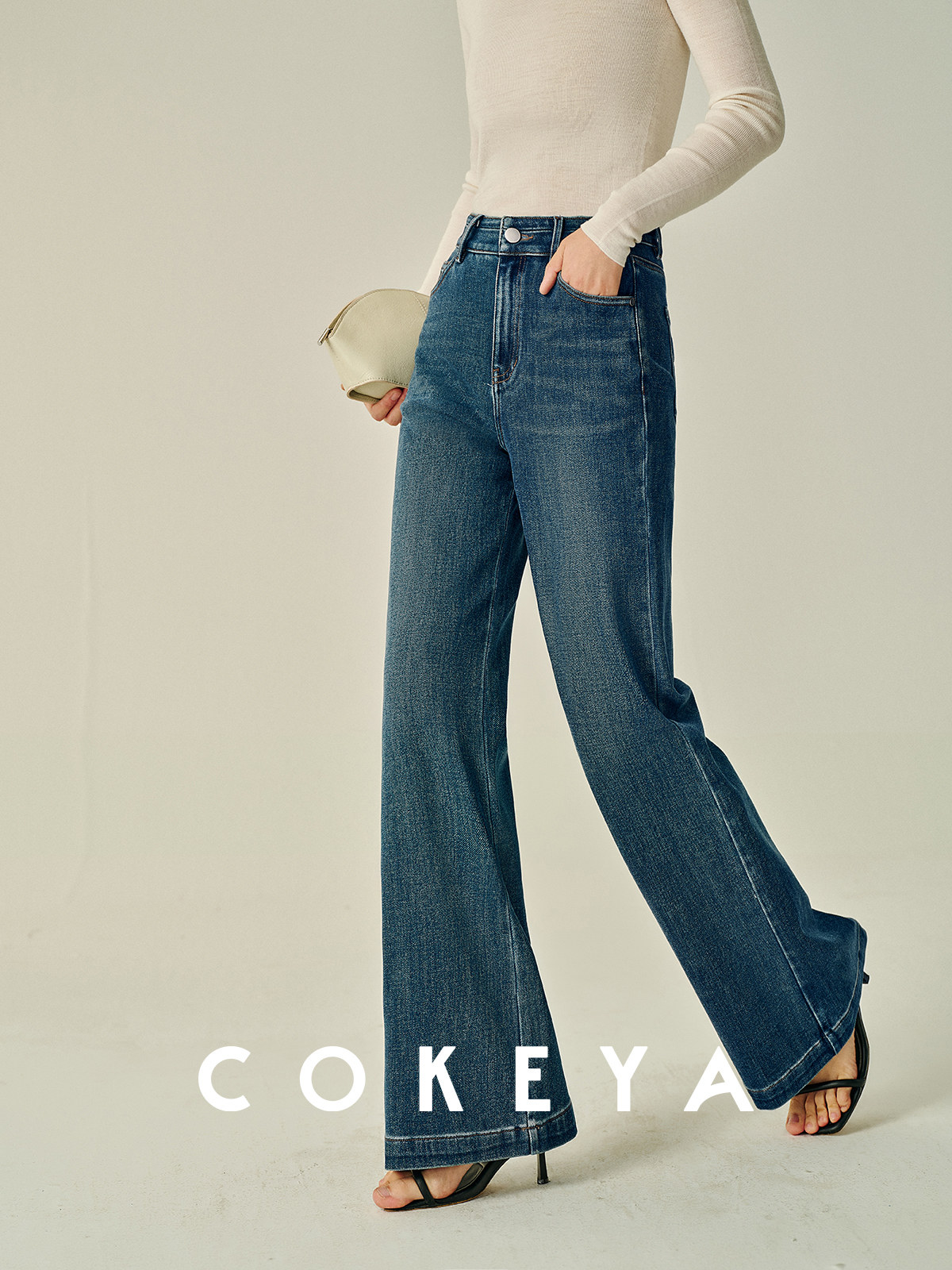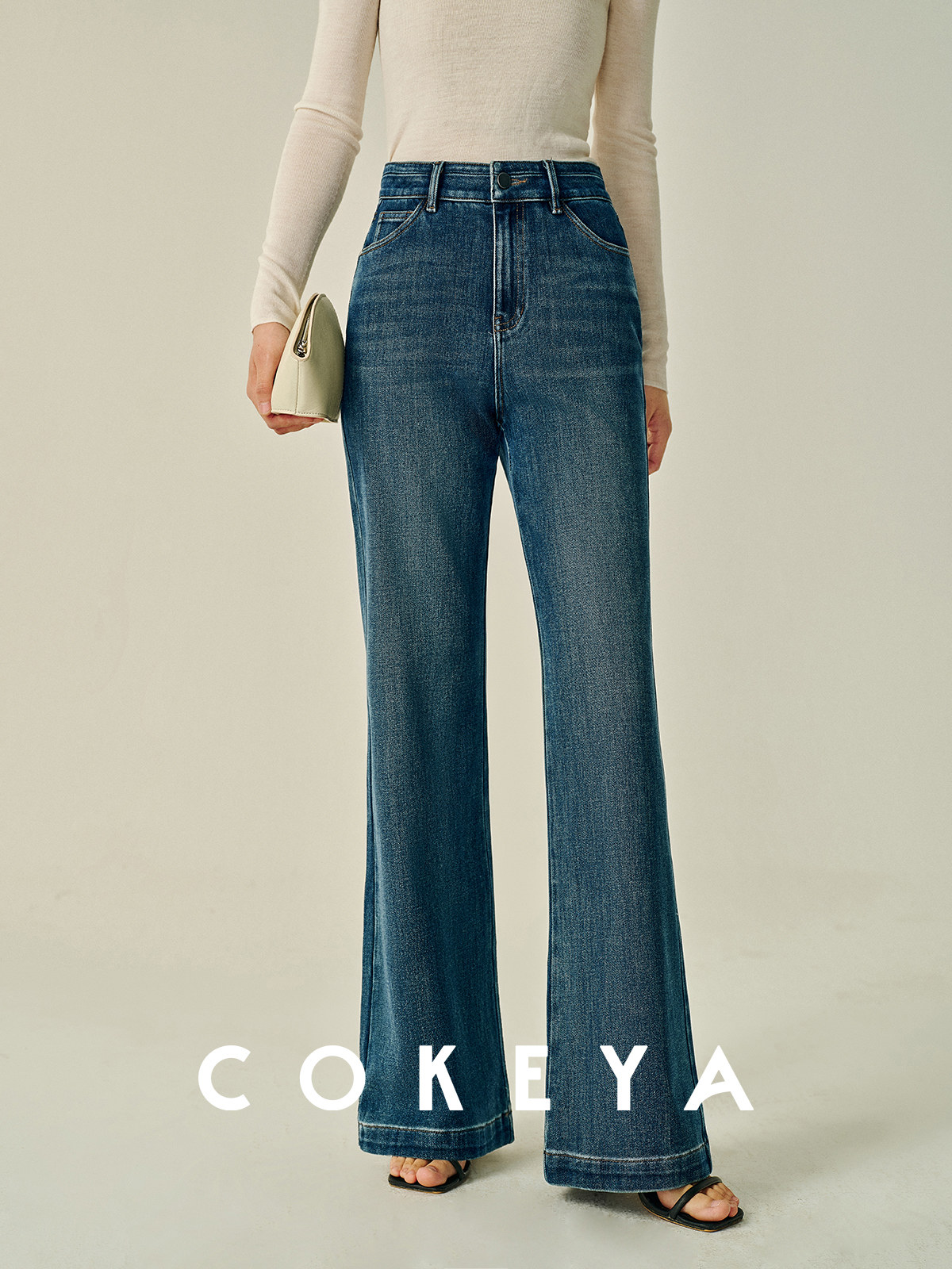 Cokeya/Four-Way Stretch Straight-Leg Jeans~Lyocell Narrow Straight-Leg Flared Jeans for Women, Spring Bell-Bottom Pants