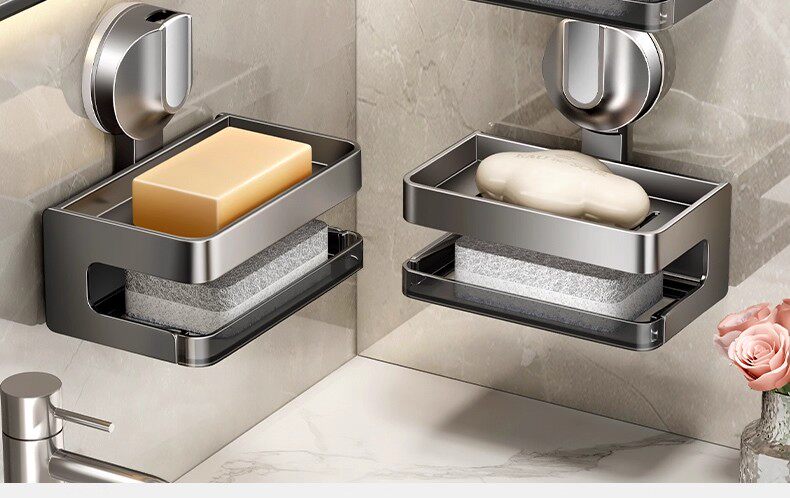 German Precision Suction Cup Soap Dish Bathroom Soap Holder Wall-Mounted Toilet Storage Rack Soap Draining Box Soap Holder