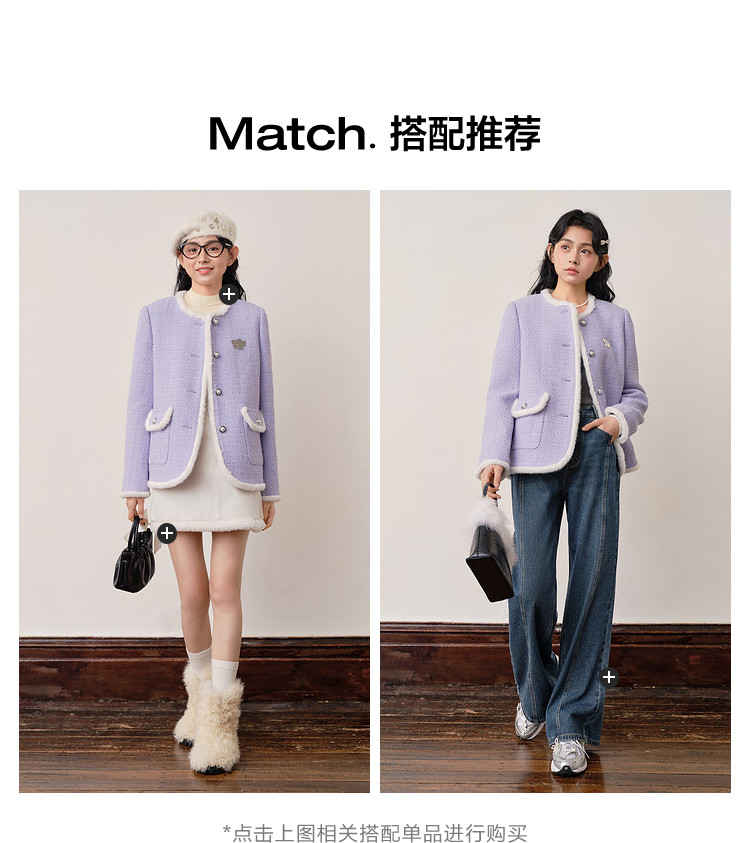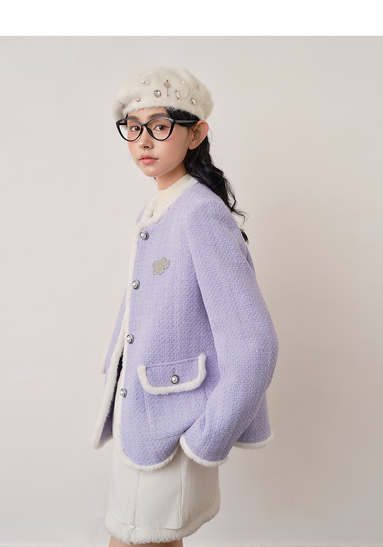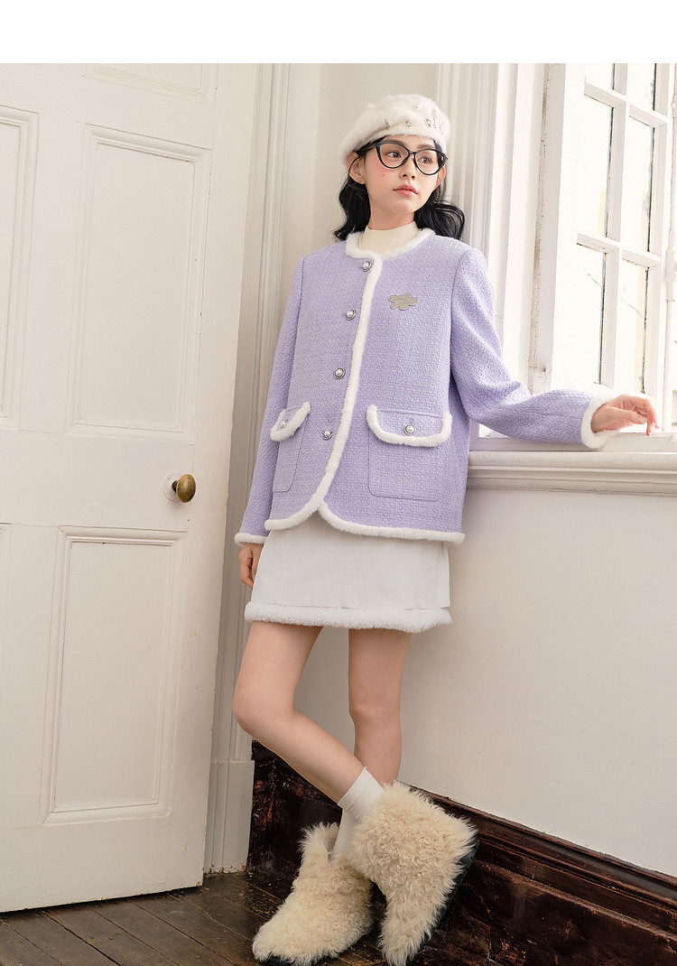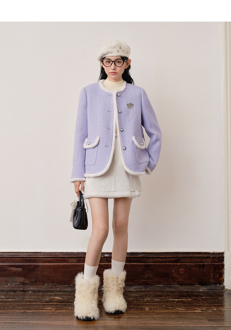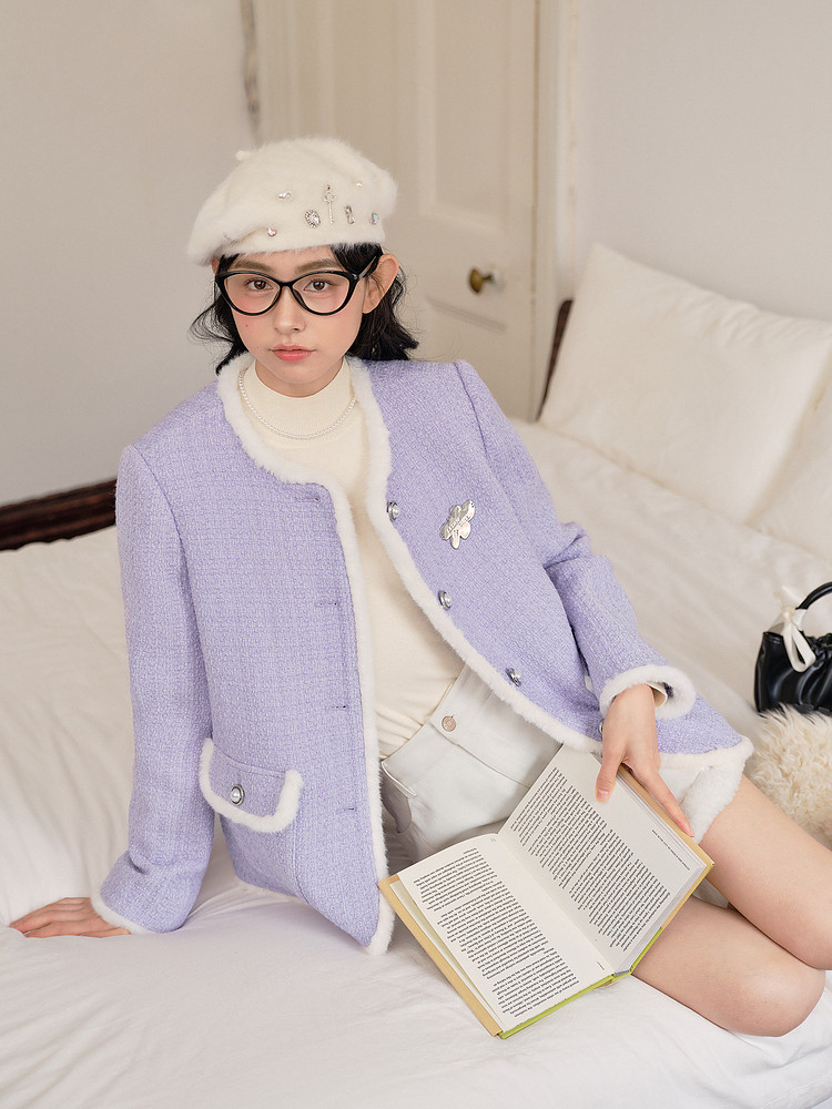 [Off-Season Clearance] Leding Lilac Tweed Jacket for Women, Autumn and Winter, Elegant Style, Petite Size