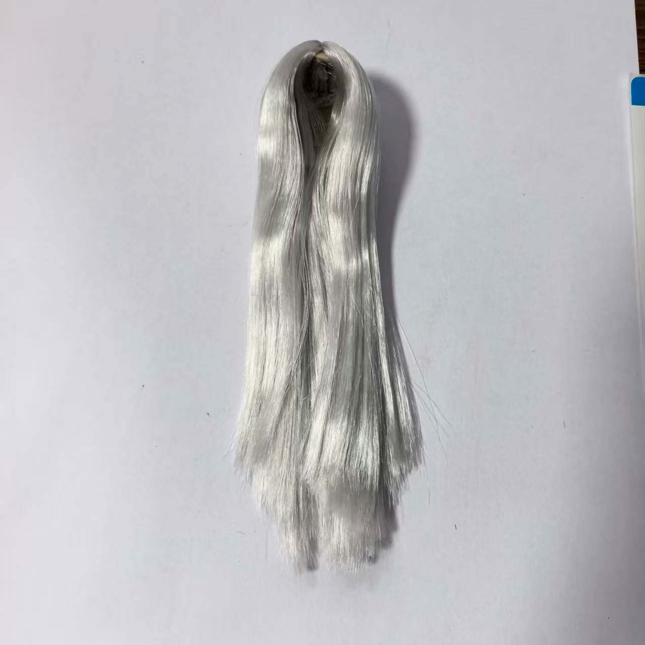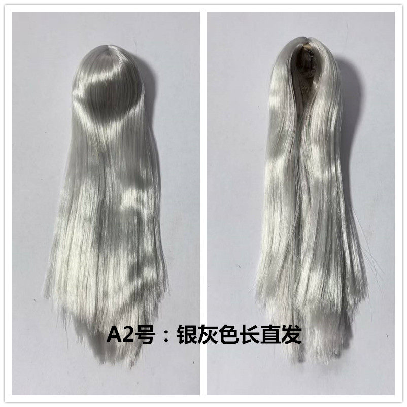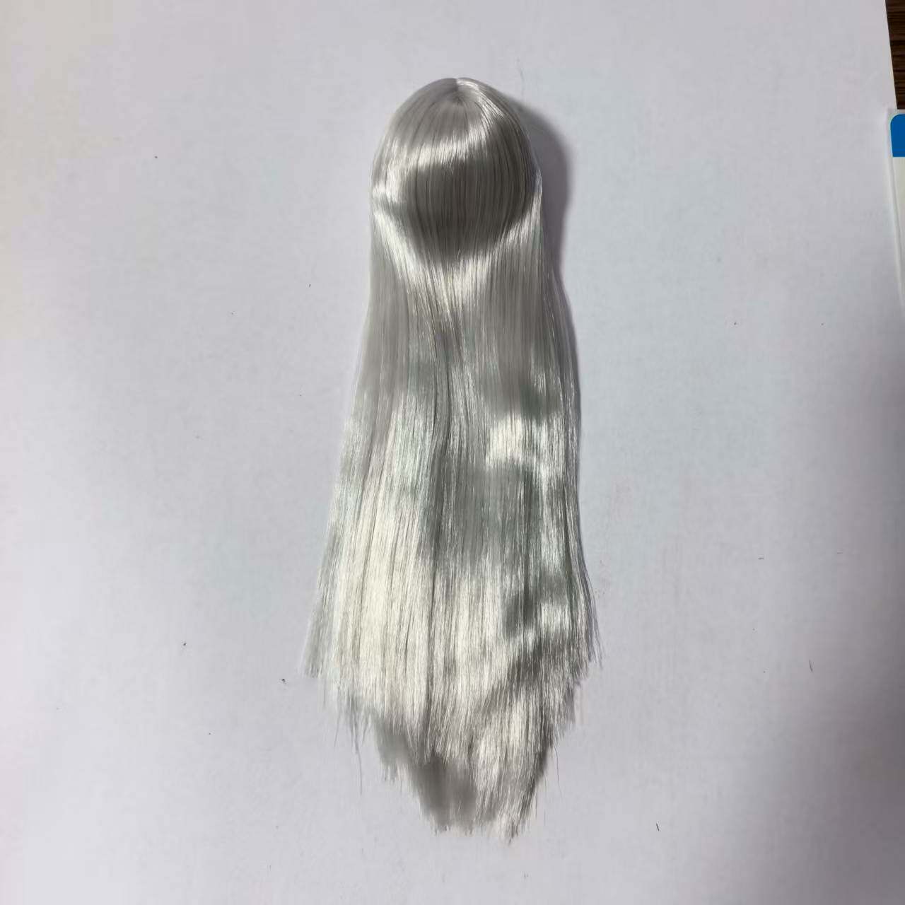 1/6 Female Soldier Head Sculpt Wig Set for Hair Modification A2: Silver-Gray Long Straight Hair