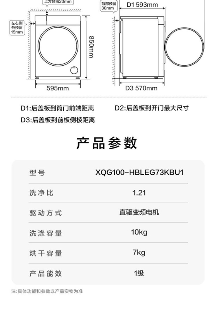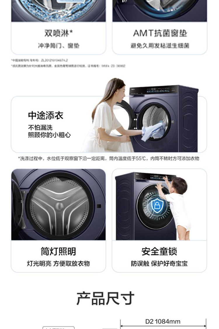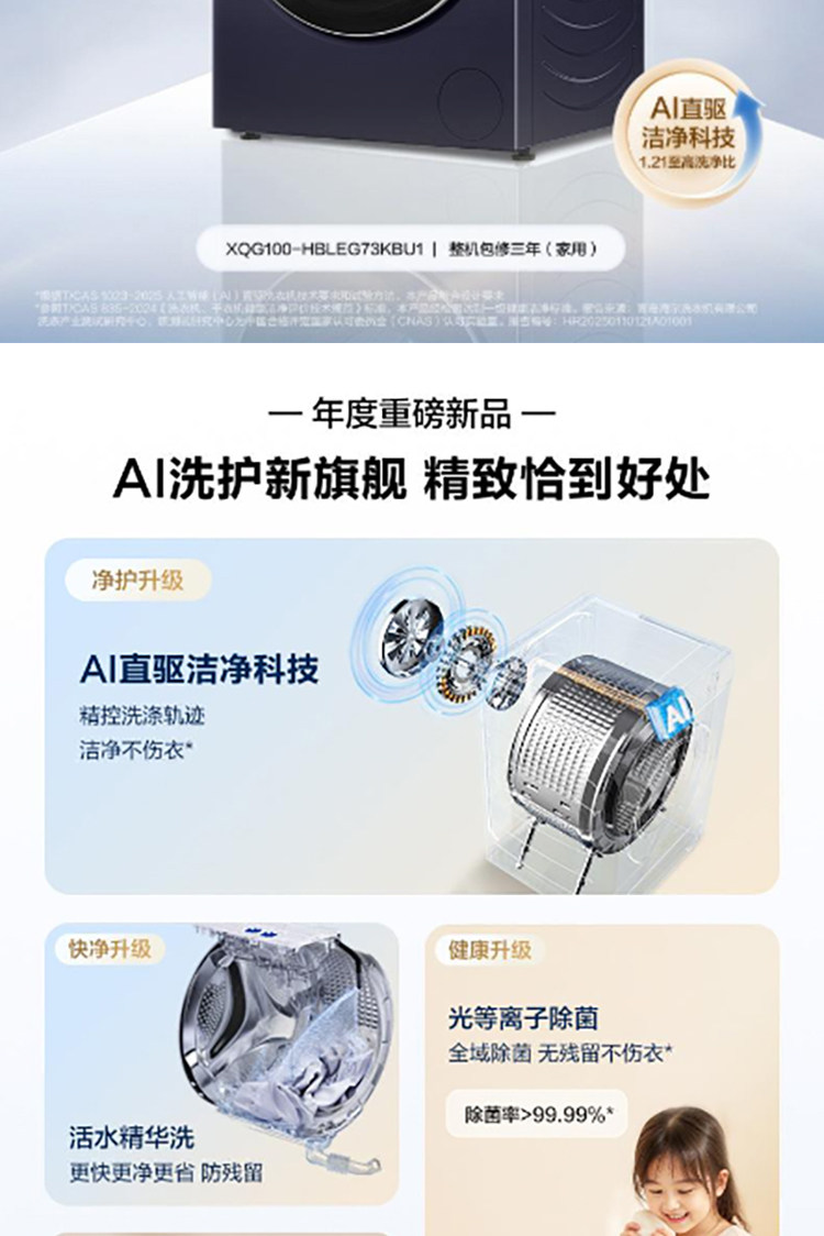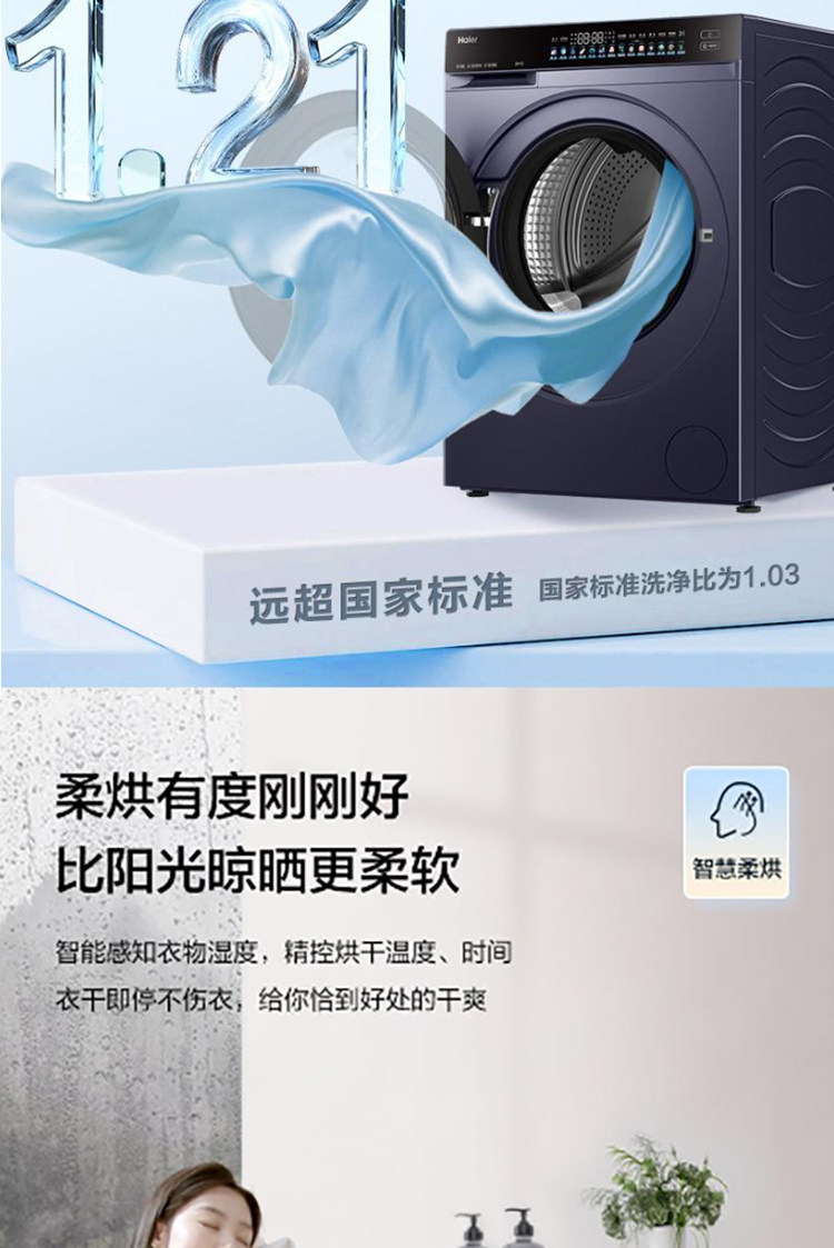 Haier Yunxi 4.0 XQG100-HBLEG73KBU1 direct drive 1.21 washing ratio drum washing and drying integrated